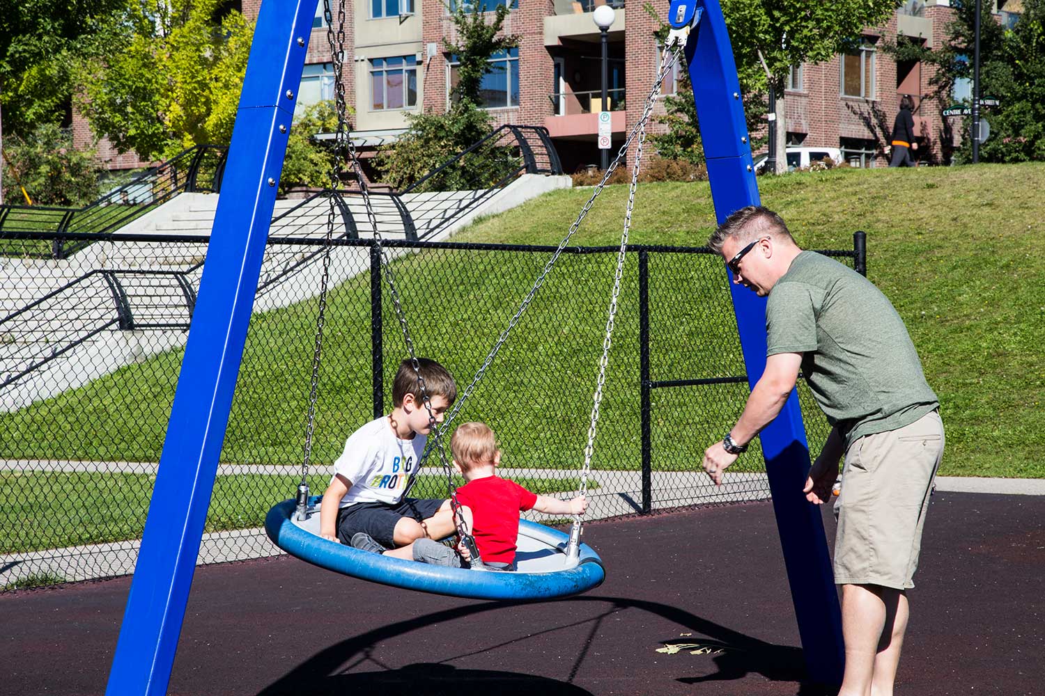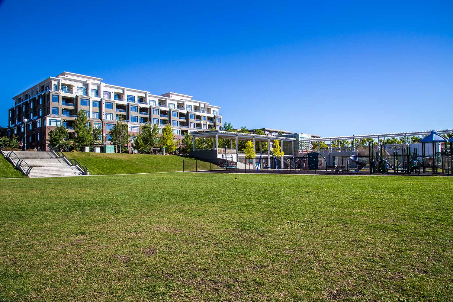 A focal point of the neighborhood, Bridgeland Riverside Park is a popular spot for picnics, outdoor sports, and family gatherings.