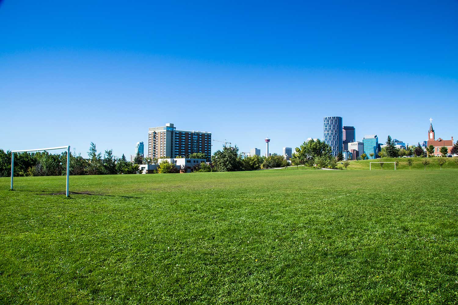 The park features playgrounds, sports courts, and plenty of open green space. Tom Campbell’s Hill Natural Park is a large natural area offering stunning panoramic views of downtown Calgary and the Bow River Valley. With its extensive walking trails and off-leash areas, it’s a favorite for dog owners and nature enthusiasts.