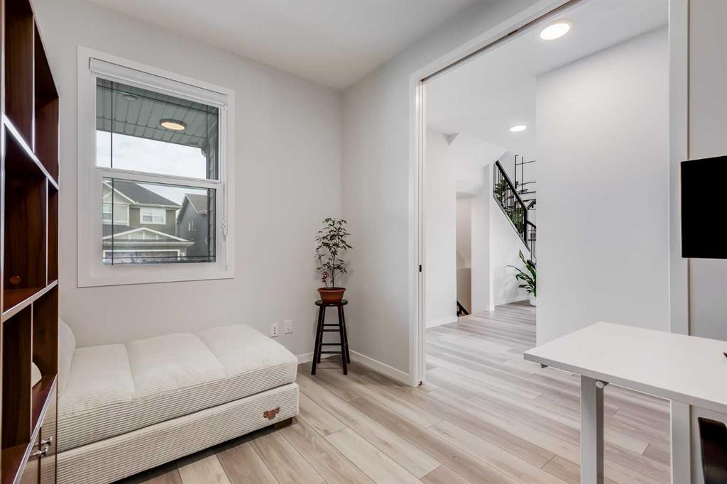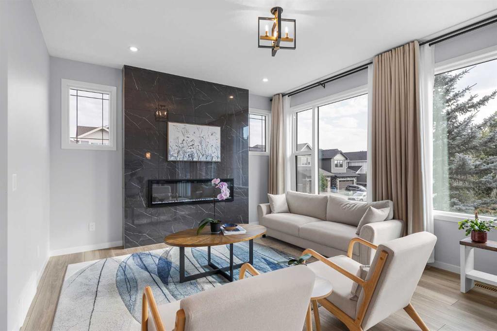Constructed in 2023, this corner-lot two-storey home, showcases over 2,300 square feet of beautifully designed living space, enhanced by more than $50,000 in thoughtful upgrades. With its double attached garage, composite siding, and sophisticated finishes throughout, this property offers both timeless style and modern comfort. The main level greets you with a generous entryway that sets the tone for the home’s bright, airy interior. Soaring 9’ ceilings and luxury vinyl plank flooring create a sense of openness, while a private office with double doors offers the perfect space for working from home. The open-concept kitchen, living, and dining areas are ideal for both everyday living and entertaining. At the heart of the home, a chef’s kitchen dazzles with elegant two-tone cabinetry, gleaming quartz countertops, a striking waterfall island with seating, stainless steel appliances including a gas range, gold accents, and a spacious pantry. The adjoining living room features an electric fireplace with a floor-to-ceiling tile surround, while the dining area flows seamlessly to the backyard through sliding glass doors. A stylish powder room and a well-designed mudroom off the garage complete this level. Upstairs, a central bonus room adds versatility to the floor plan. The primary retreat is a true sanctuary, complete with a walk-in closet and a spa-inspired five-piece ensuite featuring dual sinks, a freestanding soaker tub, and a full-height tiled shower. For added convenience, the walk-in closet connects directly to the laundry room. Two additional bedrooms are tucked away on the opposite side of the floor, offering privacy for family or guests. They share a thoughtfully designed five-piece bathroom with dual sinks separated from the tub and shower—perfect for children or teens. The lower level remains unfinished, providing a blank canvas for your future vision, whether that includes a recreation room, fitness studio, or additional bedrooms. Step outside to enjoy a composite deck ideal for morning coffee, evening barbecues, or simply soaking up the sun. A green lawn adds to the charm of this private backyard retreat. Beyond the home itself, West Springs is one of Calgary’s most coveted neighborhoods. Families will appreciate the close proximity to West Springs School, West Ridge School, and Ernest Manning High School, along with a variety of esteemed private schools including Rundle College, Webber Academy, Calgary Academy, FFCA, Calgary Waldorf School, and Menno Simons. Nearby, the Westside Rec Centre and Winsport offer endless opportunities for fitness and recreation. Shops, restaurants, and conveniences abound, while access to Bow Trail, 85th Street, the 69th Street LRT, and major roadways makes commuting to downtown or escaping to the mountains seamless. Situated on a quiet street just steps from a playground and a bus stop, this home offers the perfect balance between family living and upscale amenities. Check out the 3-D Tour & floor plans for a closer look!