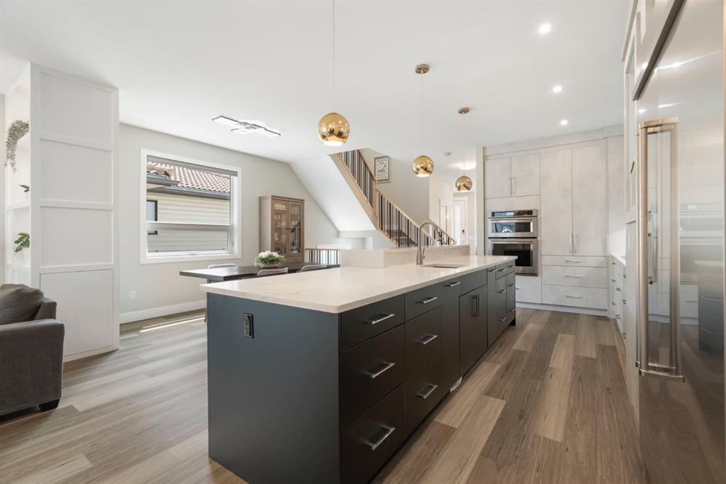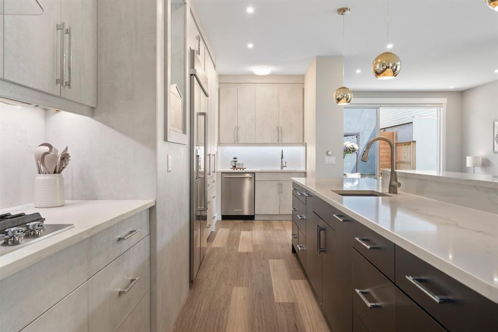 Priced to reflect today’s cautious market, this expansive 3-storey infill in sought-after Cambrian Heights delivers exceptional value — offering over 3,300 sq ft of thoughtfully designed living space at a price well below replacement cost. Meticulously maintained and move-in ready, the home is fashioned for flexibility and function. Inside, you’ll find 5 bedrooms (3 with private en-suites), 6 bathrooms, a bright bonus room, and a top-floor loft with a built-in workstation and powder room — perfect for a home office, yoga space, or private retreat. The chef’s kitchen features quartz waterfall counters, ceiling-height cabinetry, a prep sink, and premium appliances. It flows seamlessly into bright, open-concept living and dining areas. Upstairs, the spa-like primary suite features a private balcony, walk-in closet, and luxurious en-suite bathroom with dual vanities, a soaker tub, and a travertine glass shower. The fully finished basement is a standout, featuring a gas fireplace, wet bar, and two en-suites bedrooms — ideal for guests, teens, or multigenerational living. Outside, enjoy a private backyard and a heated double garage for year-round convenience. Steps from Confederation Park and minutes to downtown, transit, and schools, this home offers the perfect blend of location, lifestyle, and long-term value. Rarely does a home of this size, layout, and finish come available at this price.