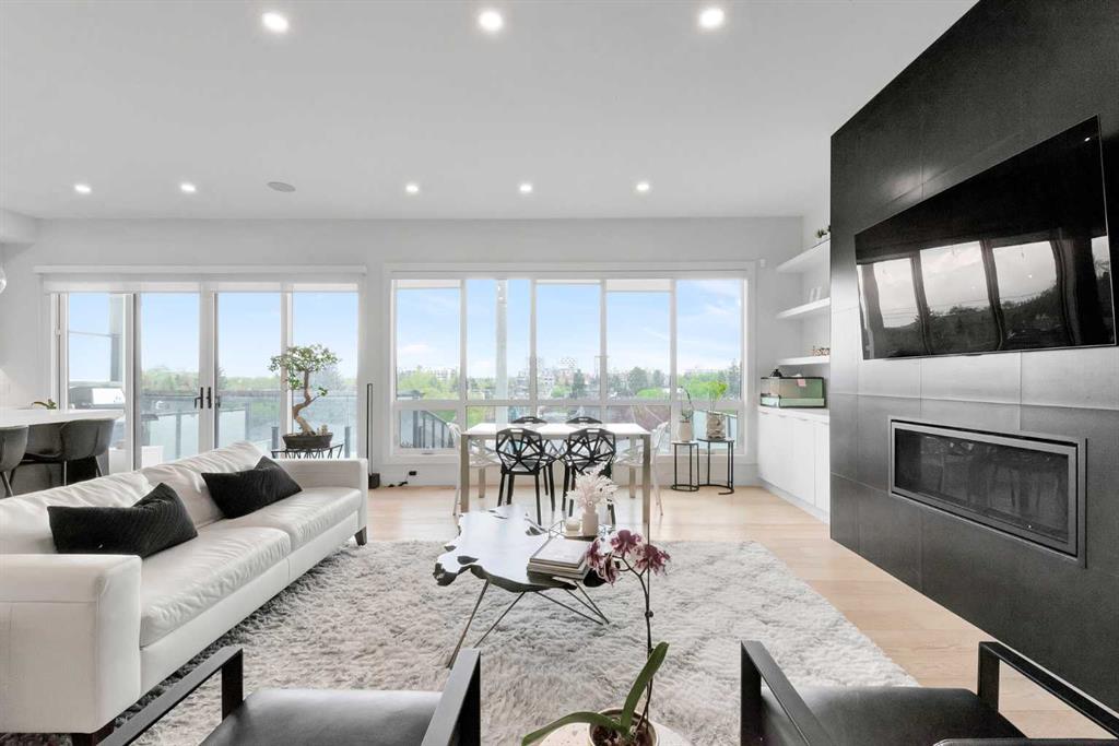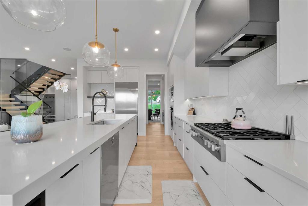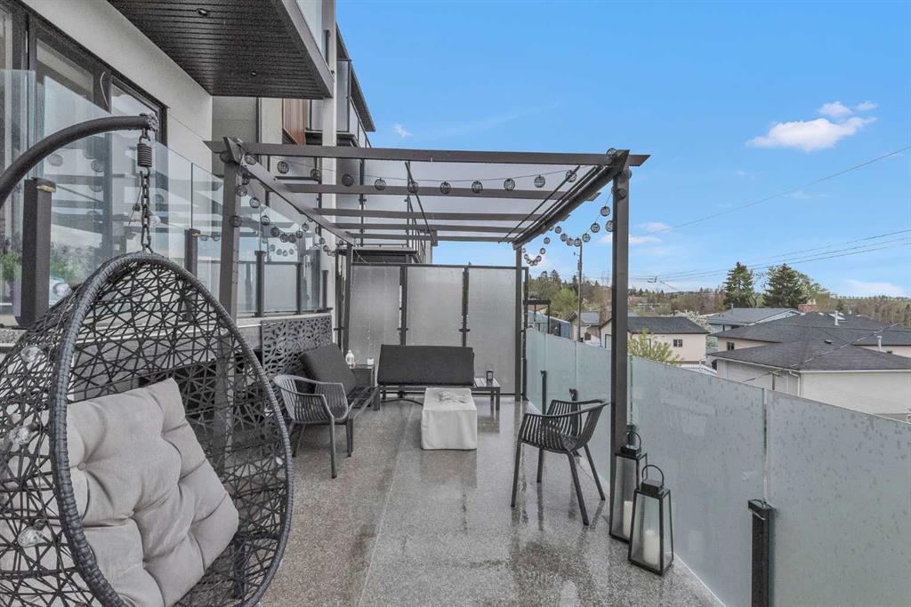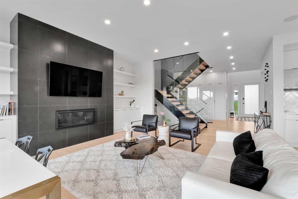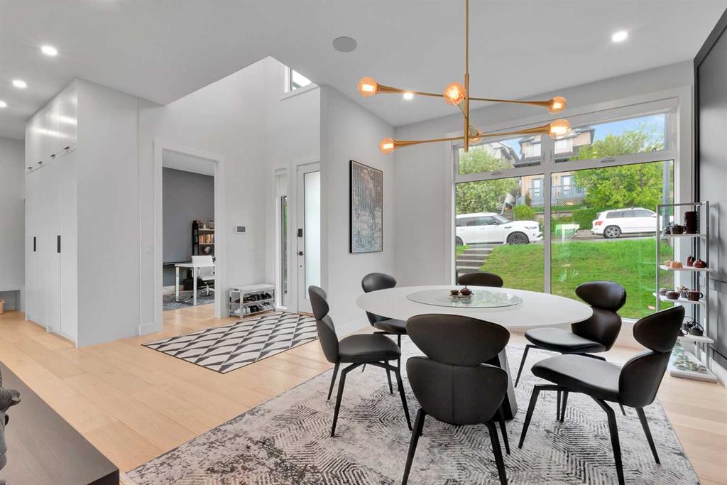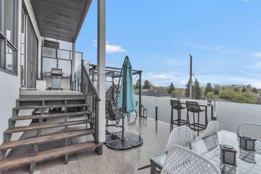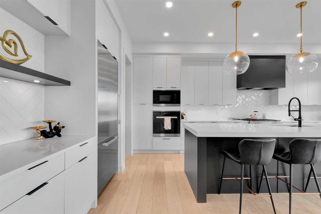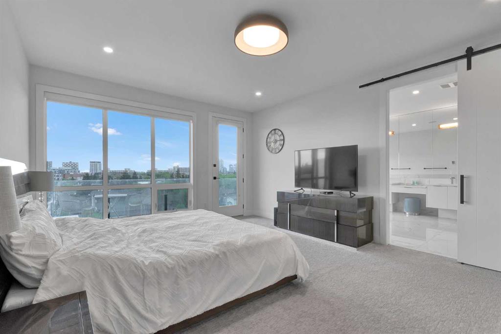 Unbelievable Views and an incredibly rare find in Bridgeland: a HUGE ATTACHED TRIPLE GARAGE! This stunning home showcases an outstanding floor plan with impeccable attention to detail and the finest finishes throughout its spacious layout. Enjoy unobstructed city and mountain panoramas from THREE sunny south-facing decks on a sought-after street. Step into a grand foyer where dramatic high ceilings, rich wide-plank hardwood floors, and expansive glass walls create an immediate sense of light and airiness. The chef's kitchen features top-tier Miele appliances, full-height white cabinets, and a massive 12-foot island. A generous walk-through butler's pantry adds convenience. Designer lighting elevates the space, from the kitchen to the dining room and the striking open-riser staircase with sleek 15mm glass walls. Enjoy a private main-level office space filled with natural light from a generous window. Upstairs, each bedroom offers a full ensuite, and the master suite is a true retreat with breathtaking views, a luxurious five-piece marble ensuite, and a massive custom walk-in closet. The finished basement provides an ideal space for entertaining with a stylish bar, dedicated wine storage, a fourth bedroom, a well-equipped gym, and a spacious recreation room. Enjoy the vibrant Bridgeland lifestyle with easy walking distance to the Zoo, Telus Science Centre, and downtown.