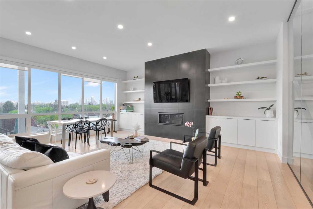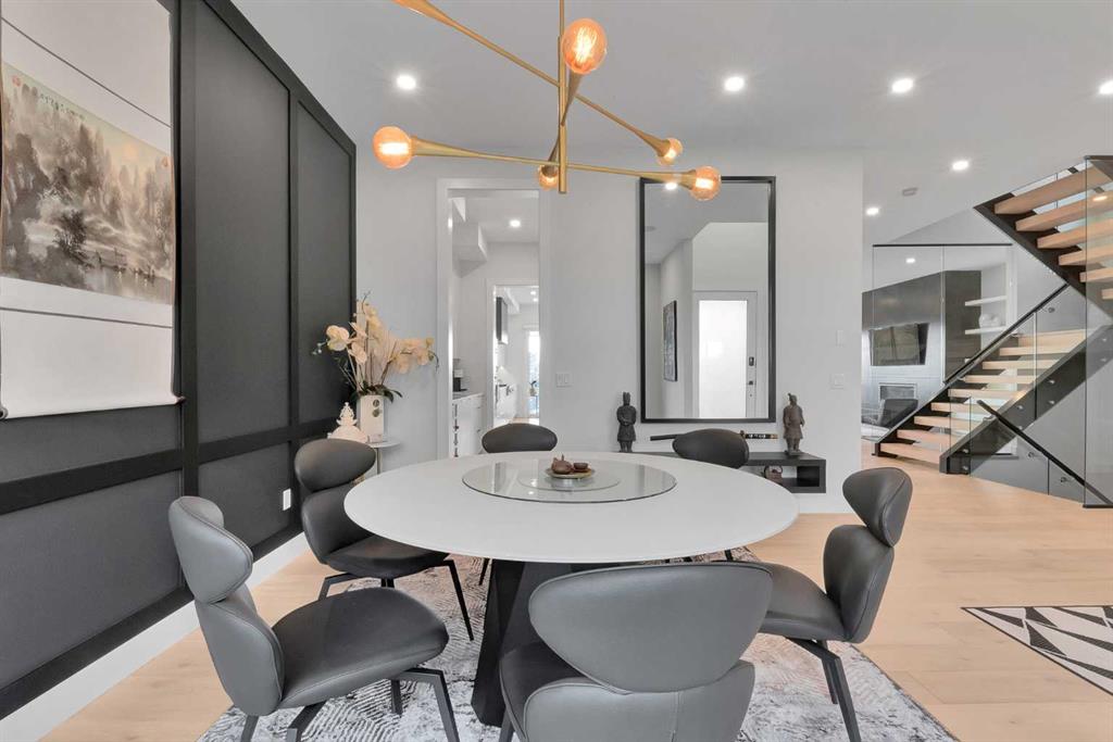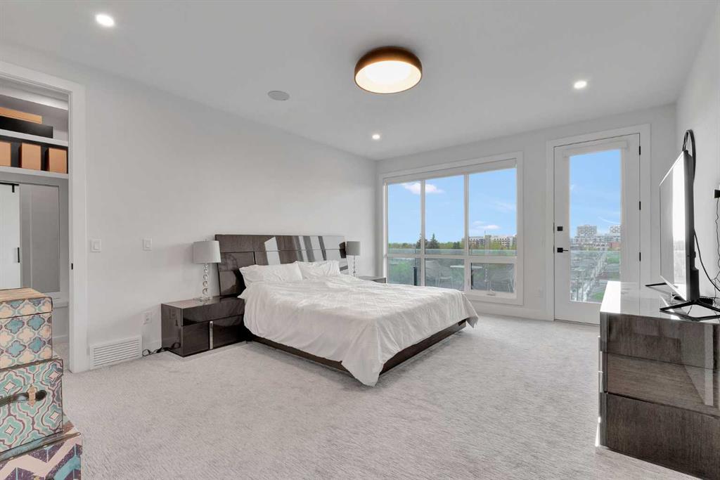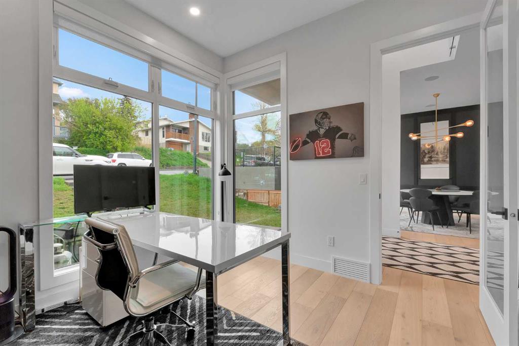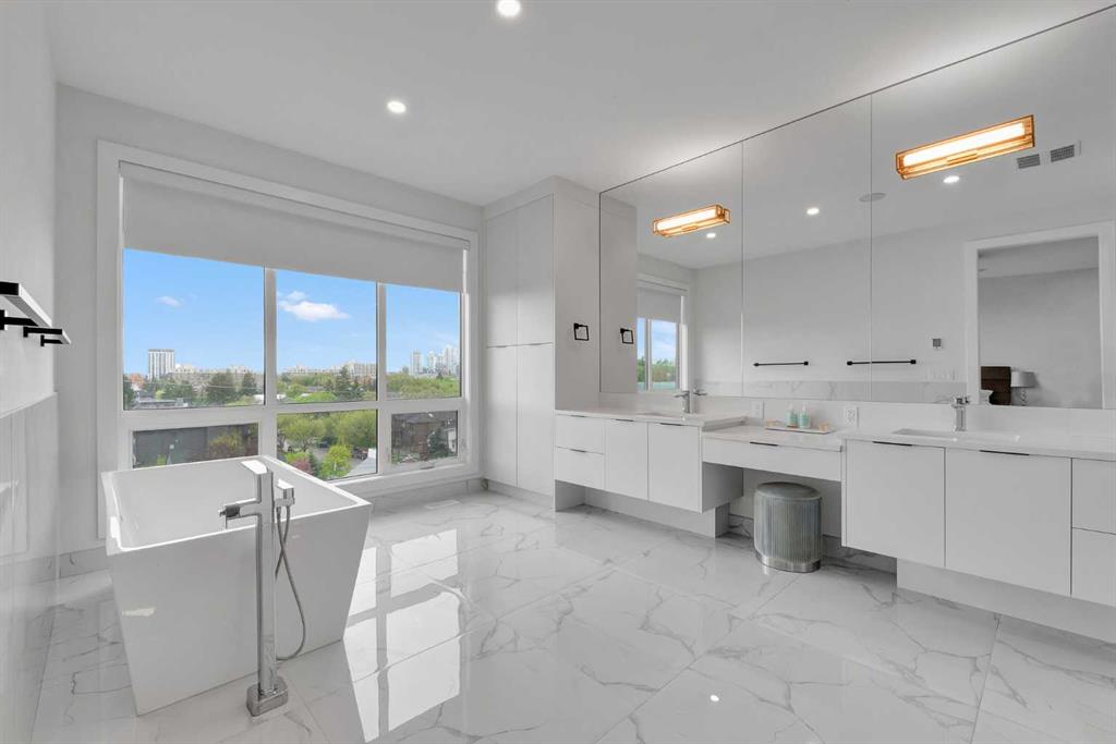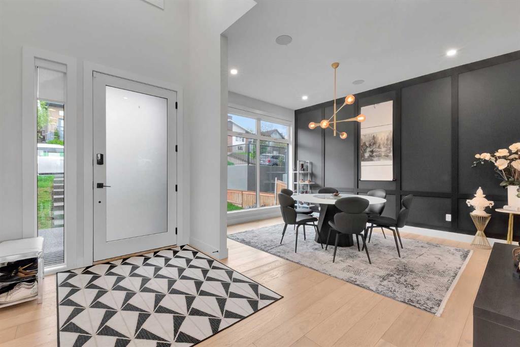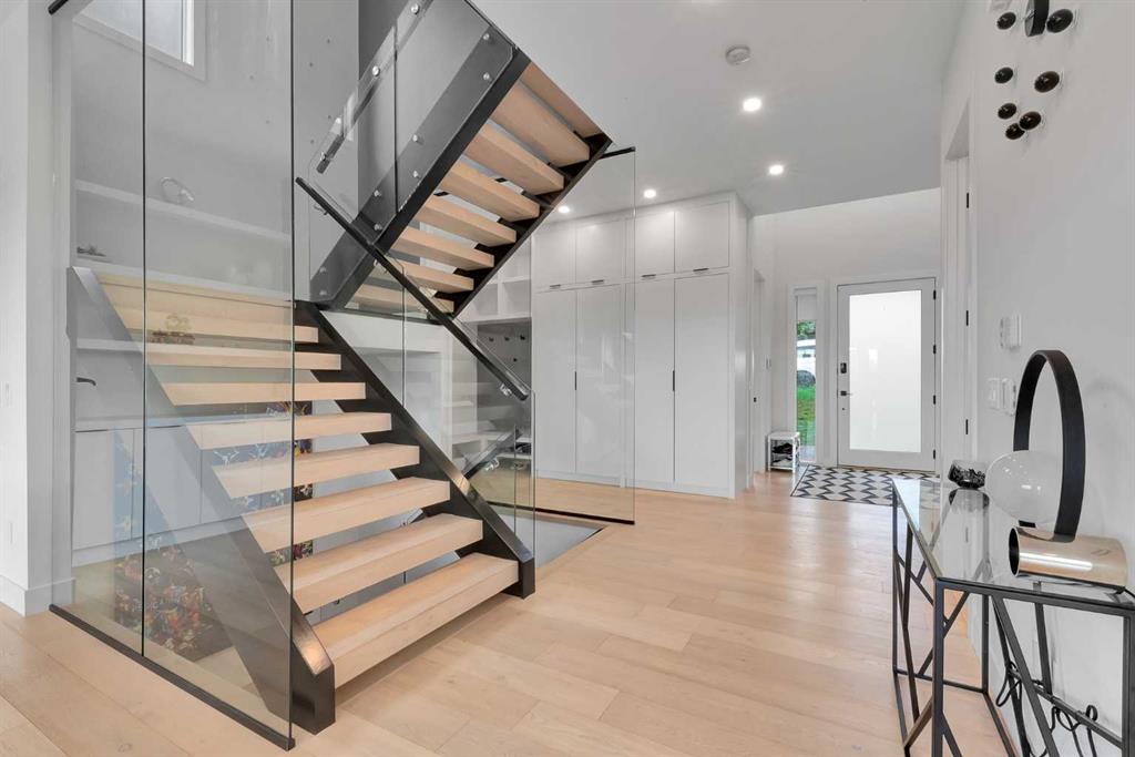Unbelievable Views and an incredibly rare find in Bridgeland: a HUGE ATTACHED TRIPLE GARAGE! This stunning home showcases an outstanding floor plan with impeccable attention to detail and the finest finishes throughout its spacious layout. Enjoy unobstructed city and mountain panoramas from THREE sunny south-facing decks on a sought-after street. Step into a grand foyer where dramatic high ceilings, rich wide-plank hardwood floors, and expansive glass walls create an immediate sense of light and airiness. The chef's kitchen features top-tier Miele appliances, full-height white cabinets, and a massive 12-foot island. A generous walk-through butler's pantry adds convenience. Designer lighting elevates the space, from the kitchen to the dining room and the striking open-riser staircase with sleek 15mm glass walls. Enjoy a private main-level office space filled with natural light from a generous window. Upstairs, each bedroom offers a full ensuite, and the master suite is a true retreat with breathtaking views, a luxurious five-piece marble ensuite, and a massive custom walk-in closet. The finished basement provides an ideal space for entertaining with a stylish bar, dedicated wine storage, a fourth bedroom, a well-equipped gym, and a spacious recreation room. Enjoy the vibrant Bridgeland lifestyle with easy walking distance to the Zoo, Telus Science Centre, and downtown.