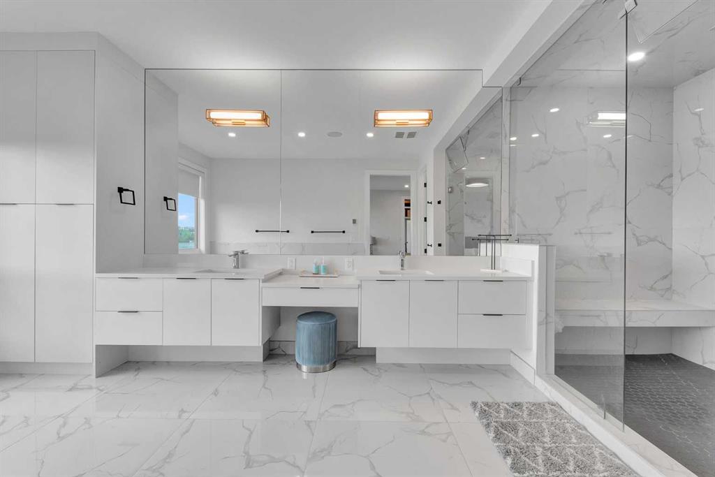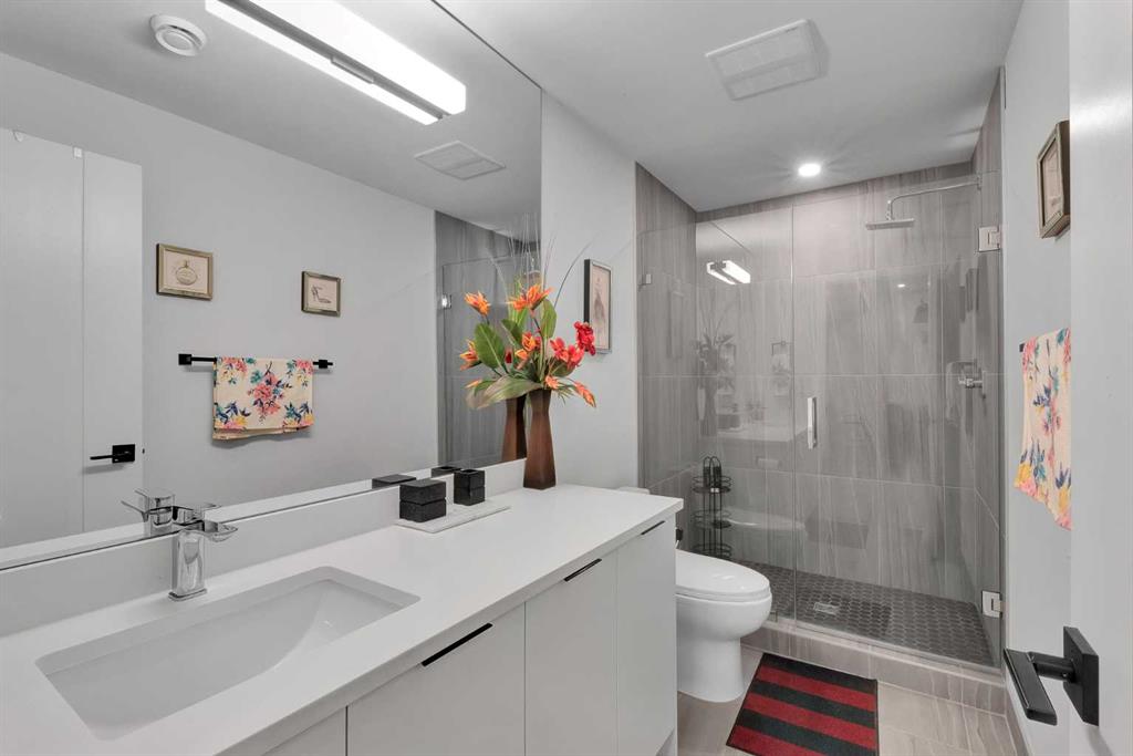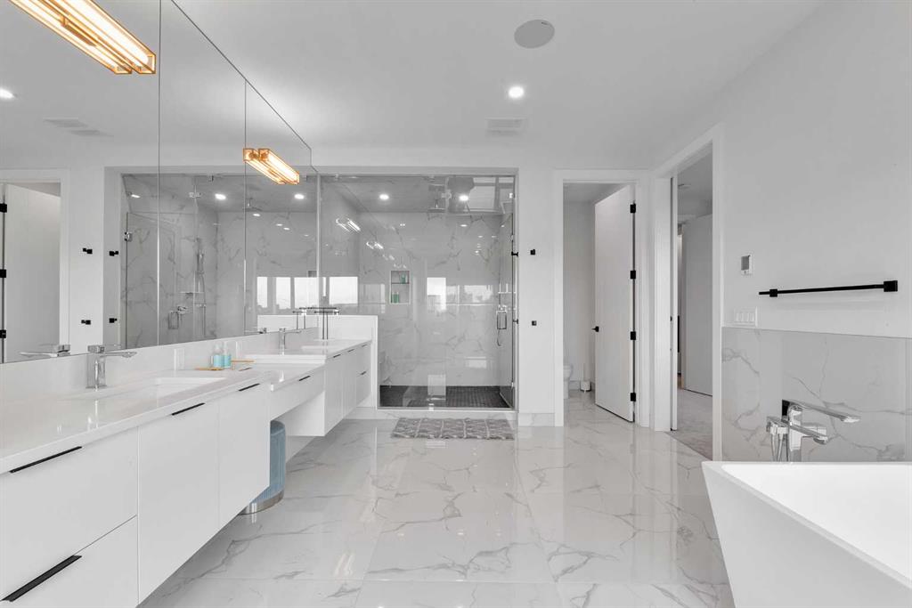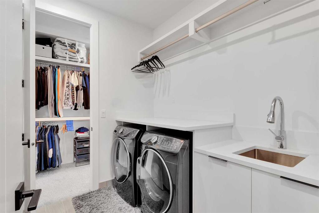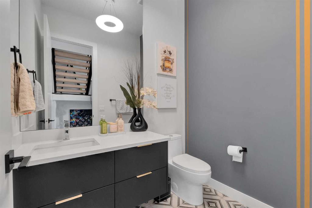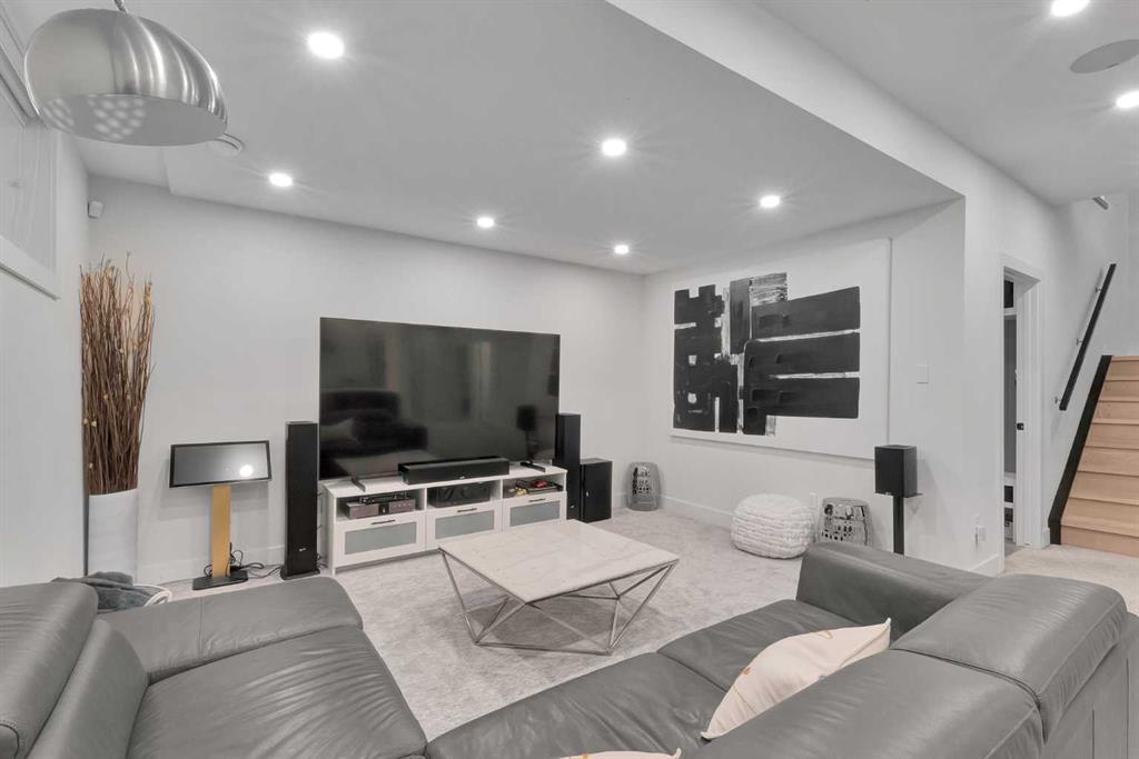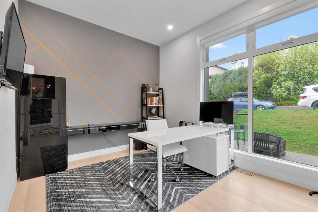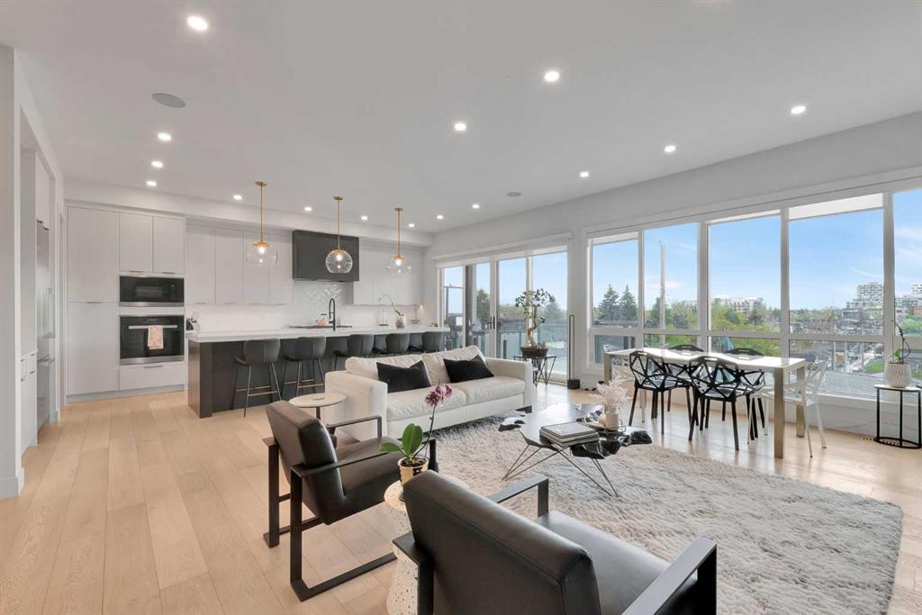 Unbelievable Views and an incredibly rare find in Bridgeland: a HUGE ATTACHED TRIPLE GARAGE! This stunning home showcases an outstanding floor plan with impeccable attention to detail and the finest finishes throughout its spacious layout. Enjoy unobstructed city and mountain panoramas from THREE sunny south-facing decks on a sought-after street. Step into a grand foyer where dramatic high ceilings, rich wide-plank hardwood floors, and expansive glass walls create an immediate sense of light and airiness. The chef's kitchen features top-tier Miele appliances, full-height white cabinets, and a massive 12-foot island. A generous walk-through butler's pantry adds convenience. Designer lighting elevates the space, from the kitchen to the dining room and the striking open-riser staircase with sleek 15mm glass walls. Enjoy a private main-level office space filled with natural light from a generous window. Upstairs, each bedroom offers a full ensuite, and the master suite is a true retreat with breathtaking views, a luxurious five-piece marble ensuite, and a massive custom walk-in closet. The finished basement provides an ideal space for entertaining with a stylish bar, dedicated wine storage, a fourth bedroom, a well-equipped gym, and a spacious recreation room. Enjoy the vibrant Bridgeland lifestyle with easy walking distance to the Zoo, Telus Science Centre, and downtown.