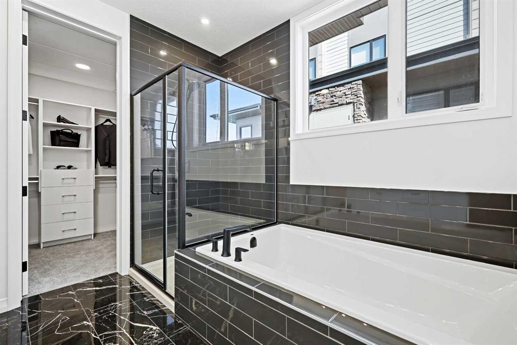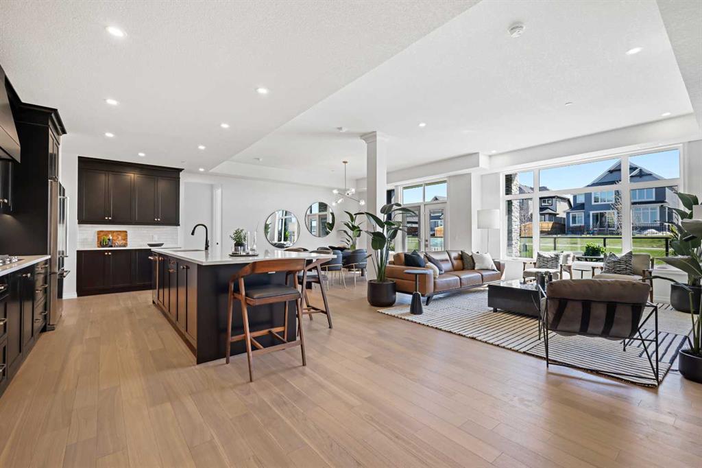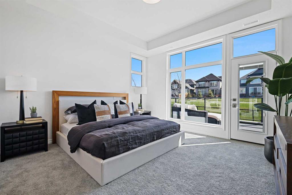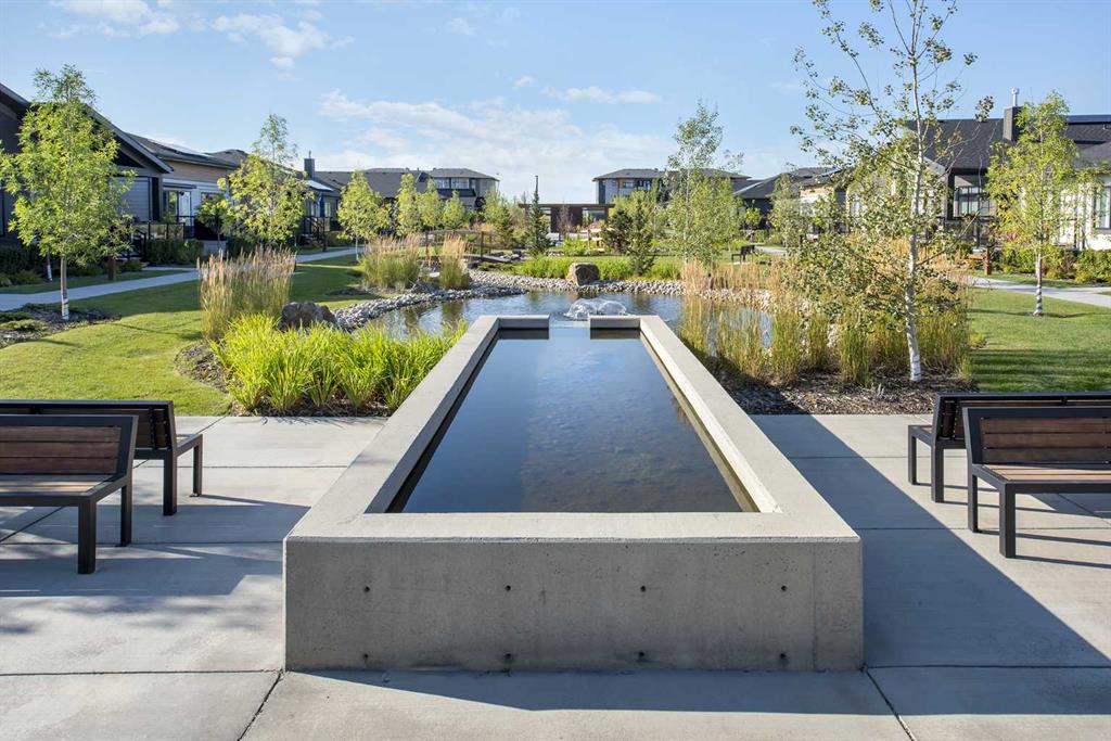 The Streams of Lake Mahogany present an elevated single-level lifestyle in our stunning Reflection Estate homes situated on Lake Side on Mahogany Lake. Selected carefully from the best-selling renowned Westman Village Community, you will discover THE BROOK, a home created for the most discerning buyer, offering a curated space to enjoy and appreciate the hand-selected luxury of a resort-style feeling while providing you a maintenance-free opportunity to lock and leave. Step into an expansive 1700+ builders sq ft stunning home with 10-foot ceiling heights with greenspace views featuring a thoughtfully designed open floor plan, inviting an abundance of natural daylight with soaring 10-foot ceilings and oversized windows. The centralized living area, ideal for entertaining, offers a Built-in KitchenAid sleek stainless-steel package with French Door Refrigerator and internal ice make / water dispenser, a 36-inch 5 burner gas cooktop, a dishwasher with a stainless steel interior, and a 30-inch wall oven with convection microwave; all nicely complimented by the Charcoal Elevated Color Palette. The elevated package includes rich tone cabinets in the kitchen with oversized hardware; glossy subway tile at the kitchen backsplash; soft close cabinetry with 36" uppers, angled front hood fan shroud, sil granite undermount sink, upgraded pantry, under cabinet lighting and a stylish modern light package in a beautiful finish to match. All are highlighted with bright white Quartz countertops. You will enjoy two bedrooms on either side, nicely framing in the central living area, with the Primary Suite featuring a spacious 5-piece oasis-like ensuite with dual vanities, a large soaker tub, a stand-alone shower, and a generous walk-in closet with built-ins. The Primary Suite and main living area step out to a 54ft terrace with beautiful views. Yours to soak in every single day. To complete the package, you have a sizeable foyer, and the spacious laundry room is adjacent to the entry of your private double-attached heated garage with a full-width driveway. Jayman's standard inclusions feature their trademark Core Performance, which includes Solar Panels, Built Green Canada Standard with an Energuide rating, UVC Ultraviolet light air purification system, high-efficiency heat pump for air conditioning, forced air fan coil hydronic heating system, active heat recovery ventilator, Navien-brand tankless hot water heater, triple pane windows and smart home technology solutions. Enjoy Calgary’s largest lake, with 21 more acres of beach area than any other community.