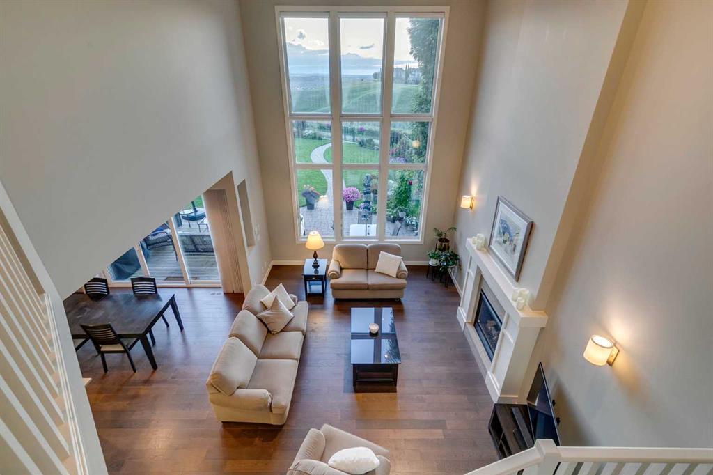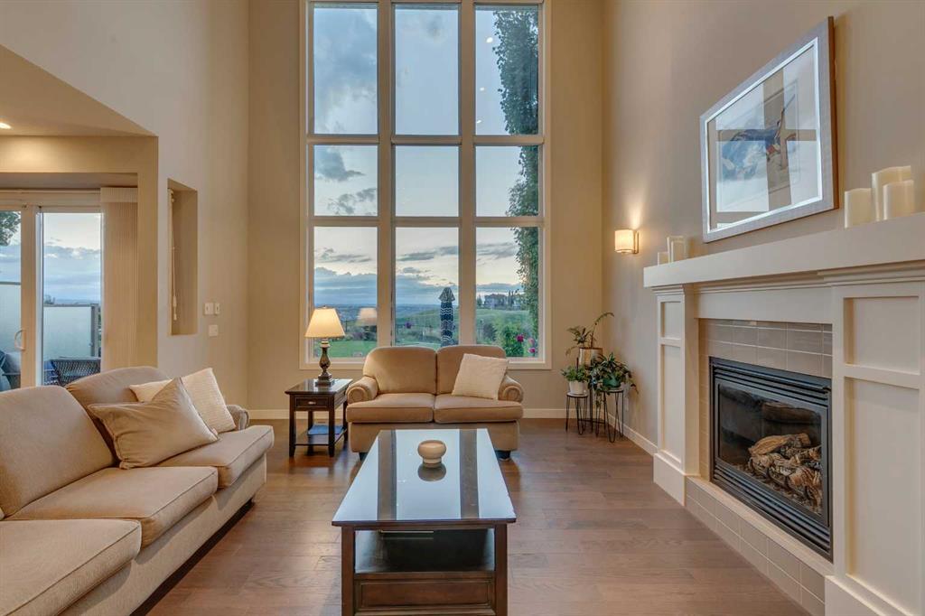 Cranston Ridge Living – Where backyard views, Nature, and Elegance Meet | Perched atop Cranston Ridge, this extraordinary estate home offers uninterrupted mountain vistas, breathtaking sunsets, and a lifestyle that blends luxury with nature. Set on a professionally landscaped, oversized lot, the backyard is a true private oasis, complete with lush flower gardens, a deck, and interlocking brick patio—perfect for family gatherings or summer entertaining. ~ Step inside to an incredible living room open to below, where soaring ceilings and massive two-story windows frame the panoramic views, letting natural light pour in and creating a dramatic, unforgettable focal point. The open-concept design seamlessly connects the living room, dining nook, kitchen, and home office, making daily living and entertaining effortless. ~ The kitchen is as functional as it is stunning, featuring full-height white cabinetry, stainless appliances that include a gas range, a walkthrough pantry, and quartz countertops with generous surface space for meal preparation and entertaining. Rich millwork and elegant finishes flow throughout the home, reflecting the high standard of design and attention to detail. ~ Upstairs, the owner’s suite is a serene retreat with a spa-inspired ensuite, complete with a skylight, making for a private space to unwind. Two additional second floor bedrooms provide comfort for family or guests. and the bonus room complete with built-in speakers will make entertaining a breeze! Downstairs, the fully finished basement adds two more spacious bedrooms and versatile living space. Further bonuses you won't want to miss? An enlarged double garage, full air-conditioning, underground irrigation, a built-in vacuum system, and more!