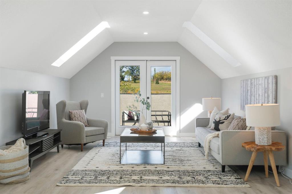 **Check out our CINEMATIC TOUR (iGUIDE)*** Walking distance to the Bearspaw Farmer's Market, 2 min from Hwy 1 access, Rocky Ridge Co-op, Gas Stations, 5 min to Tim Hortons-101 Nagway Court is a gem of a property in the BEST location yet, tucked away for ultimate privacy. Experience refined acreage living in this stunning 6145 sq. ft. two-storey estate, backing onto Bearspaw Golf Course. Heavily renovated in 2022, this contemporary home offers exceptional craftsmanship, modern finishes, and seamless indoor-outdoor living. The private tree-lined driveway prepares you for your serene retreat after a long day. Standing in your grand foyer with exquisite chandelier, you’re welcomed by the open view of entire main floor, complete with 20ft ceilings. Windows on all sides makes this space bright, bringing in the natural surroundings giving it a calm and peaceful atmosphere. Renovations in 2022, include 90 new triple-pane windows, refinished hardwood floors, new countertops, new lighting, upgraded electrical (200 amp service), new paint throughout, and relocated the staircase bringing in brand new stairs and railings. The main floor design is very functional. The laundry room and mudroom have ample storage and working countertops. The large kitchen is very bright and airy, with stainless steel appliances, large pantry leading to a breakfast area where you can enjoy the natural landscape view of the back yard. The impressive stone fireplace in the living room invites you to pour a glass of your favourite beverage and relax. The dining room is enhanced by the natural beauty of the accented wood flooring. The architectural walkways that beautifully connect the upper floorpan and the wall of windows in the kitchen give this home its modern feel, that WOW factor. The upper level features spacious bedrooms, a bonus room with loft feel leading to out to a balcony, and several skylights. The primary bedroom/ensuite is a true retreat; complete with large walk-in closet, a luxurious 5-piece ensuite with shower and jetted tub and a Juliet balcony to take in the fresh air. The walkout basement features 1 more bedroom, a 4pc bathroom, an office (flex room), wine cellar, games room, and den area. Outside, enjoy several decks on all levels, a pergola, stone patio, fire pit and a covered outdoor stainless steel kitchen, perfect for entertaining or enjoying a family meal- the outdoor pizza oven takes pizza night to the next level! Attached is a heated four-car garage with Sunshine doors and polyaspartic-coated floors. Complete with a full home security system and just minutes from city amenities, this home blends timeless elegance with modern acreage living.