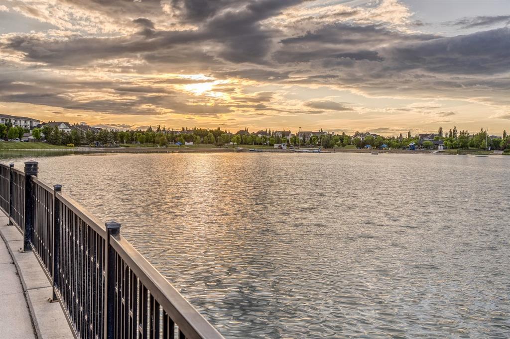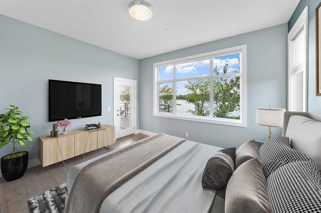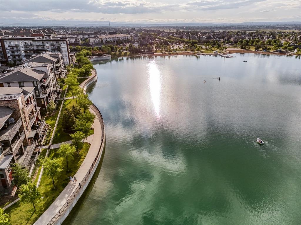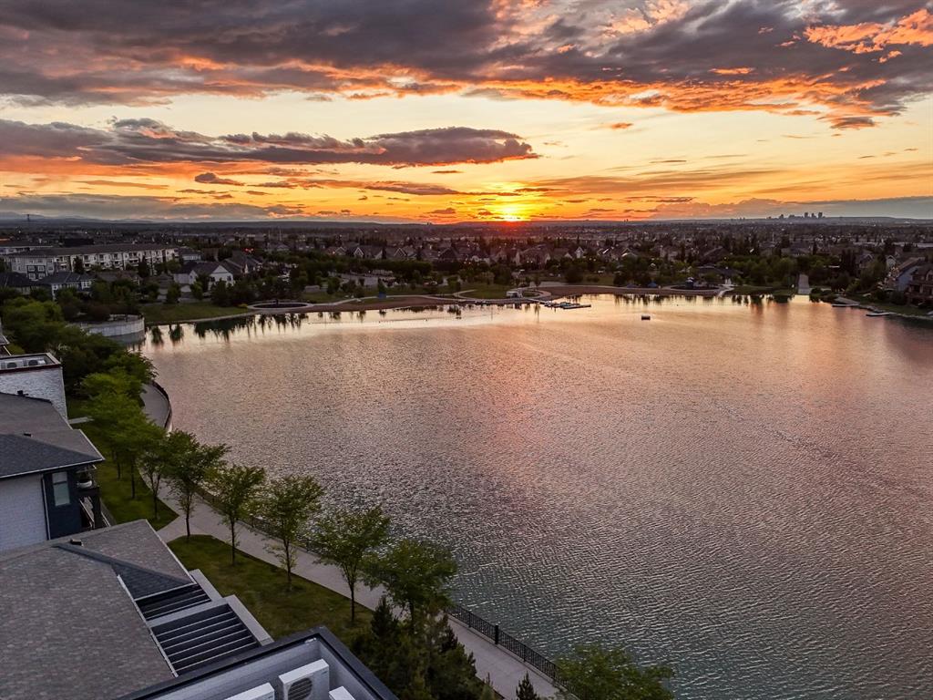 Welcome to an exceptionally rare lakefront residence in Westman Village, where intentional multi-level design elevates both privacy and livability. Perfectly positioned along the shores of Mahogany Lake, this sophisticated walkout home offers over 2,380 sq ft of thoughtfully separated living space, paired with an extraordinary 725 sq ft of covered outdoor balconies—all with uninterrupted lake views from both levels.