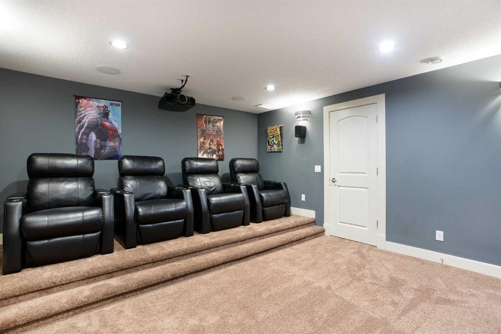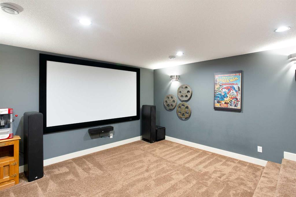The fully finished basement is an entertainer’s dream, featuring in-floor heating, a large rec room, a wet bar with a stunning Black Marinace stone countertop, a soundproofed theatre room wired for surround sound, and a full 3-piece bathroom.