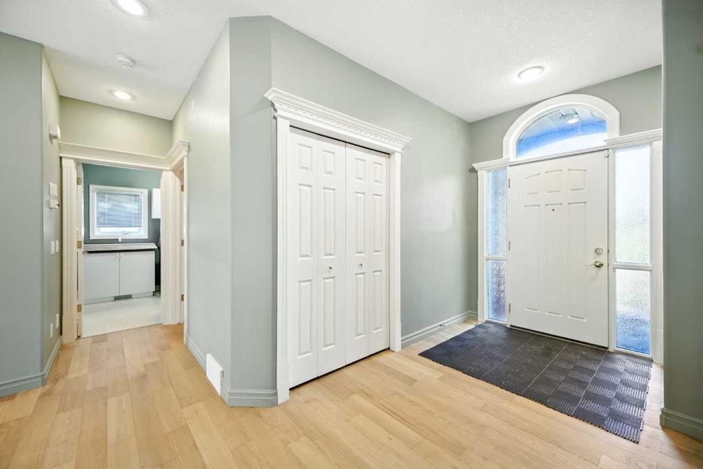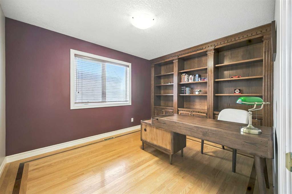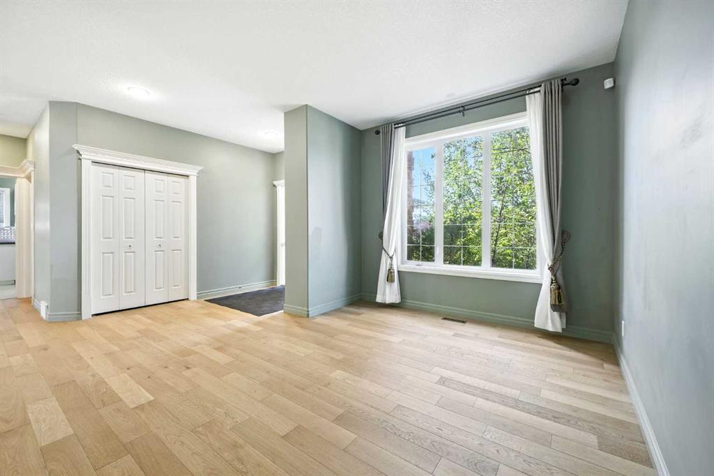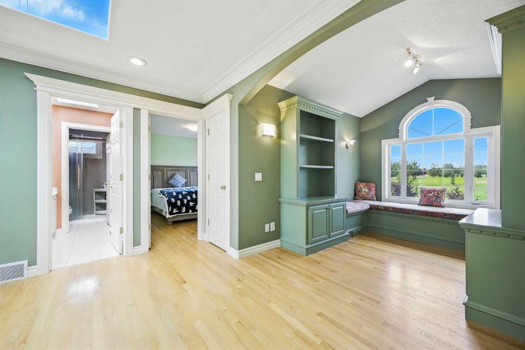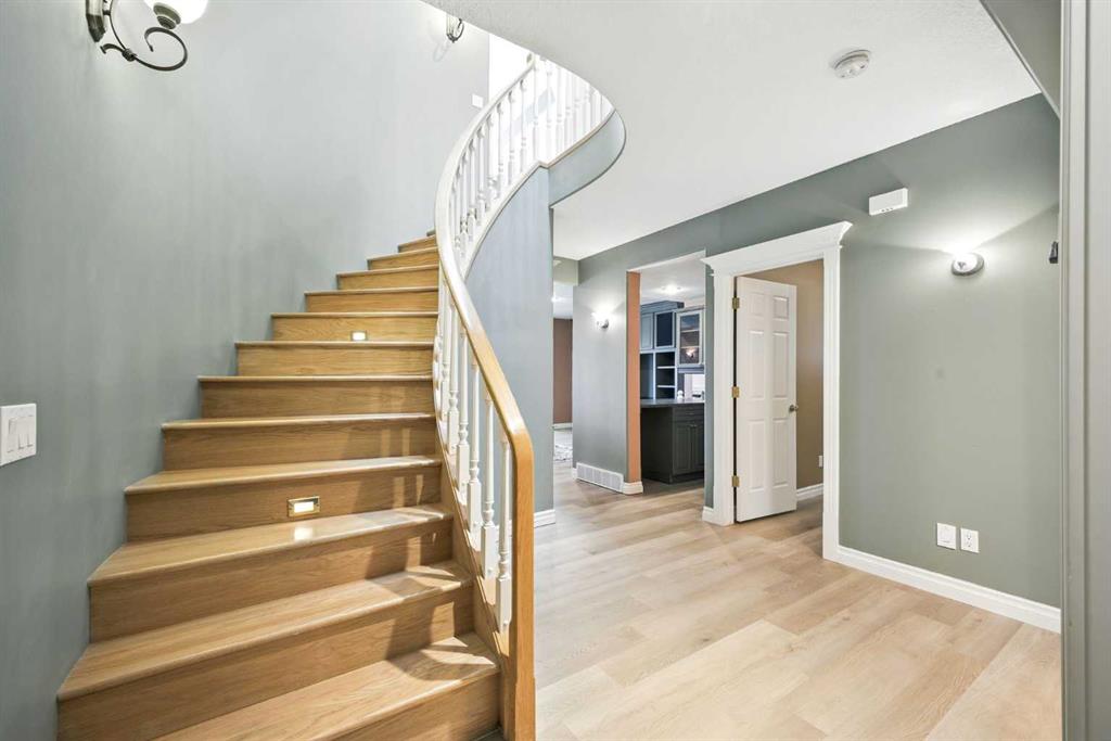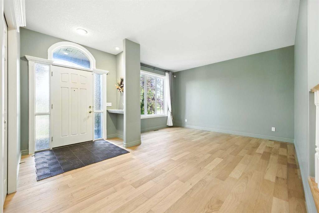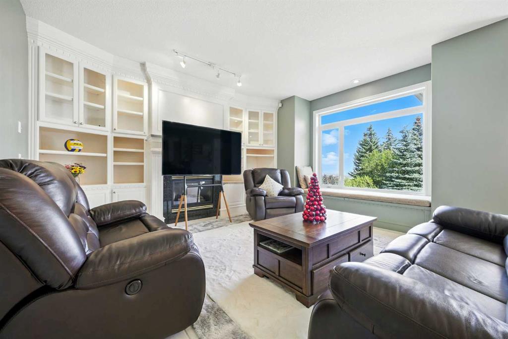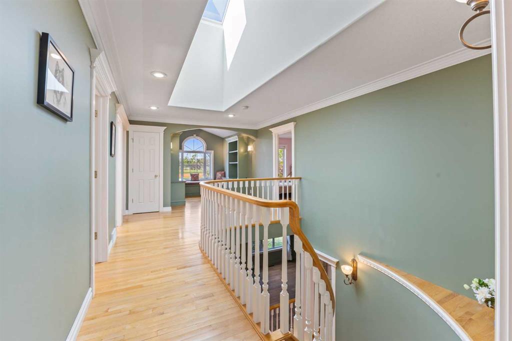 Beautifully upgraded former Chancellor showhome backing onto the prestigious Hamptons golf course with unobstructed views of the greens & fairways. Offering a total of 6 bedrooms, relaxing central air & rubber roof, this fully finished estate home with classic brick facade, boasts extensive hardwood flooring, gourmet kitchen with granite counters & 2 fireplaces. Prime location just steps to bus stops & across from the Hamptons School & sports fields. Complemented by 9ft ceilings & beautiful hardwood/tile floors, you'll embrace the traditional design of the main floor with its formal living & dining rooms, expansive family room with cozy window seat & gas fireplace accented by built-in bookcases, dining nook with floor-to-ceiling windows & stylish gourmet kitchen with granite counters & centre island, walk-in pantry & upgraded black/stainless steel appliances including brand new fridge. The eye-catching spiral staircase winds its way up to the 2nd floor where you'll find 4 great-sized bedrooms - all with hardwood floors - & features the wonderful owners' retreat with sitting area & Valor gas fireplace, panoramic golf course views, walk-in closet & relaxing jetted tub ensuite with double vanities, separate shower & tile floors. Shared by the other 3 bedrooms, the family bath has a skylight & double vanities plus there is another full bath in the finished walkout level along with 2 bedrooms & terrific media/rec room with wet bar & built-in entertainment centre. Oversized 2 car garage,New furnaces(year 2023), hot water tank (year 2023), curtains(year 2023,main floor and basement flooring(year 2023). A truly sensational home perfect for the growing family, only a heartbeat away from shopping & community amenities, golf course & beyond!