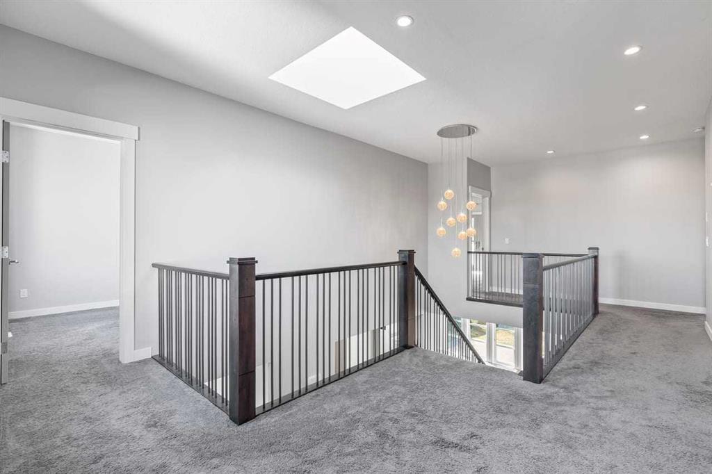 Perfectly situated in a quite cul-de sac in the exclusive community of Springbank Hill, is this magnificent 4700 sq.ft of opulent developed living space on a massive lot. This home encapsulates every detail with 6 bedrooms, 3.5 baths, 2 fireplaces and 9'ceilings on all floors. The main floor offers hardwood throughout, a front office/reading room, vaulted ceilings in the entry way and a formal dining area with custom chandelier. South West facing windows allow boundless natural light in the living room and a fireplace adorned with stylish tile work creates a warm ambiance while entertaining. The chef’s kitchen is outfitted with expansive quartz counter tops, custom cabinets and top of the line stainless Miele cooktops (Induction & gas) and dishwasher, Dacor built in oven and a new oversized LG fridge. The kitchen is thoughtfully designed to include an "Island to table" design and a massive walk-thru pantry. An oversized mudroom provides more closet storage for keeping clutter discrete and the a charming 2-piece bathroom finishes the main floor beautifully. Love sunlight? 2 Skylights keep the second floor bright and airy! The oversized primary bedroom is accented with a 2-way fireplace, large balcony overlooking the estate size yard, a spa ensuite including a jetted soaker tub, sleek shower and a spacious walk-in closet with a secret entry way to the baby's room. The 3rd and 4th bedrooms are well located opposite of the primary for further privacy and comfort. A 5-piece bathroom, laundry room and an oversized bonus room complete the upper floor .