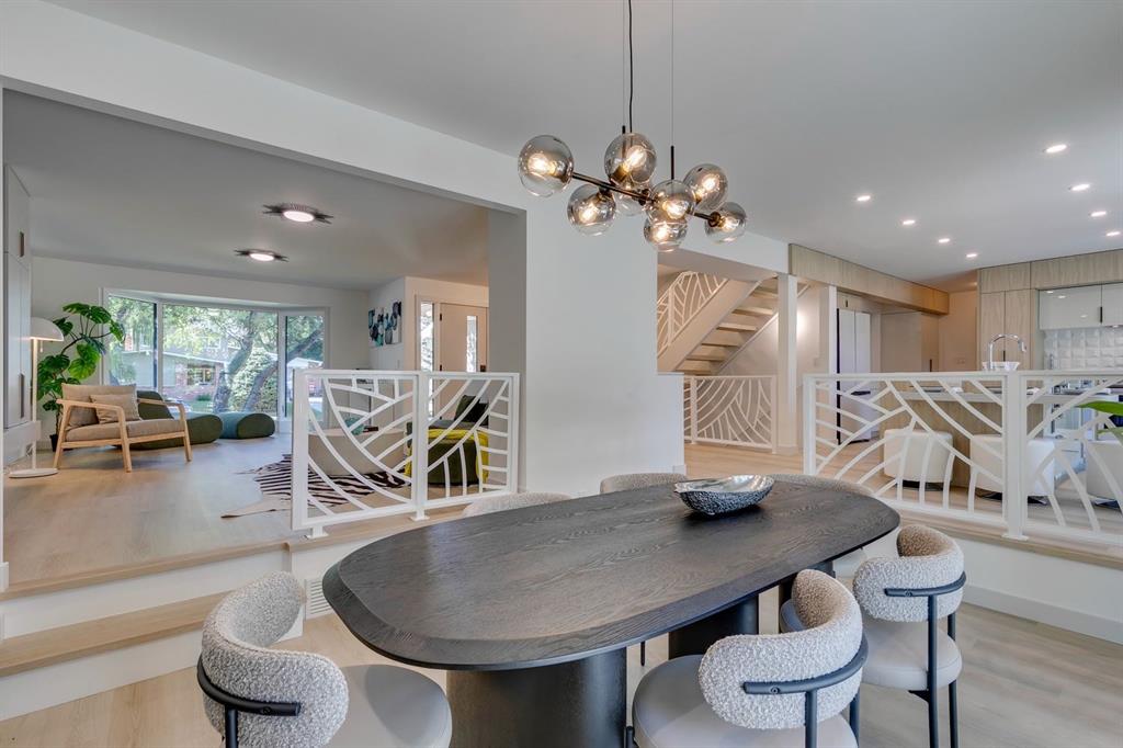 Welcome to this one of a kind, fully reimagined home in the heart of Canyon Meadows that's nestled on a quiet, family friendly cul-de-sac just steps from EP Scarlett High School. Virtually rebuilt from the studs up, this stunning property feels like a brand new home, masterfully blending high-end materials and modern design with practical family living. Showcasing exceptional curb appeal, you're welcomed by a charming front porch and into a spacious foyer with luxury vinyl flooring that flows throughout the main and upper levels. Step into a grand front living room flooded with natural light from a bay window, complemented by a custom built-in media wall that adds both style and function. The adjacent dining area offers the perfect setting for family meals and entertaining, complete with a cozy wood burning fireplace and glass doors that lead to your multi-tiered backyard deck that's ideal for alfresco dining and evening relaxation. The show stopping kitchen is a true focal point, designed to inspire any home chef with a massive centre island with breakfast bar seating, luxurious matte quartz countertops, sleek glossy cabinetry, and a premium brand new appliance package. Whether hosting or meal prepping, this space is as beautiful as it is functional. A bright, versatile den is located just off the kitchen and is perfect as a home office, or reading nook, with its own sliding glass door for privacy. Upstairs, you'll find four spacious bedrooms including a luxurious primary retreat that truly feels like a private sanctuary. The primary suite features a custom walk-in closet and steps down into a 5pc ensuite complete with a stone soaker tub, skylight, and glass-enclosed his & her shower for a space that rivals the best boutique hotels. An updated 5pc main bathroom serves the remaining bedrooms, offering space and style for the entire family. The professionally developed lower level is designed for comfort and flexibility, featuring a large family/games room with another custom media wall and storage, a fifth bedroom ideal for guests or teens, a stylish 3pc bathroom, and a huge laundry/storage room with ample space for seasonal items and gear. Additional upgrades include new triple pane Lux windows and doors, modern lighting, designer finishes, and thoughtful touches throughout. The private fenced backyard is a peaceful retreat with mature trees, landscaping, and plenty of space for kids and pets to play. Situated in a vibrant, established community known for its parks, pathways, excellent schools, and proximity to Fish Creek Park, this home is a rare opportunity to move right into a newly renovated masterpiece with room for your family to grow. Every detail has been meticulously curated, just unpack and enjoy.