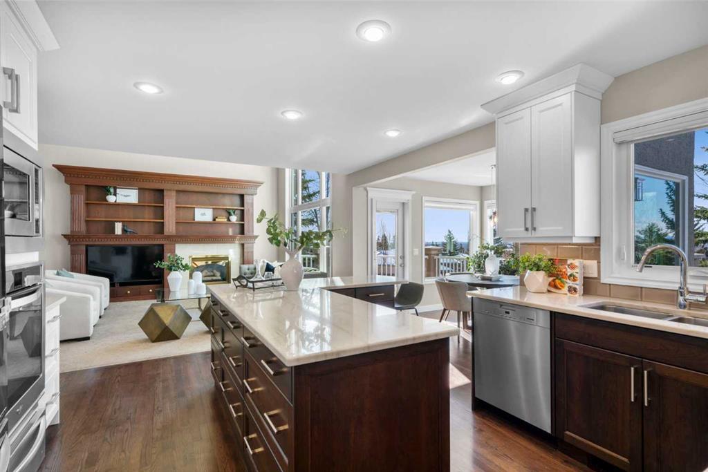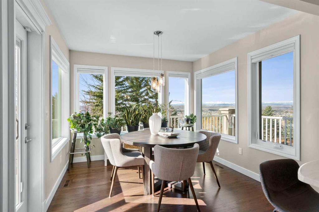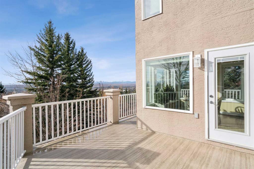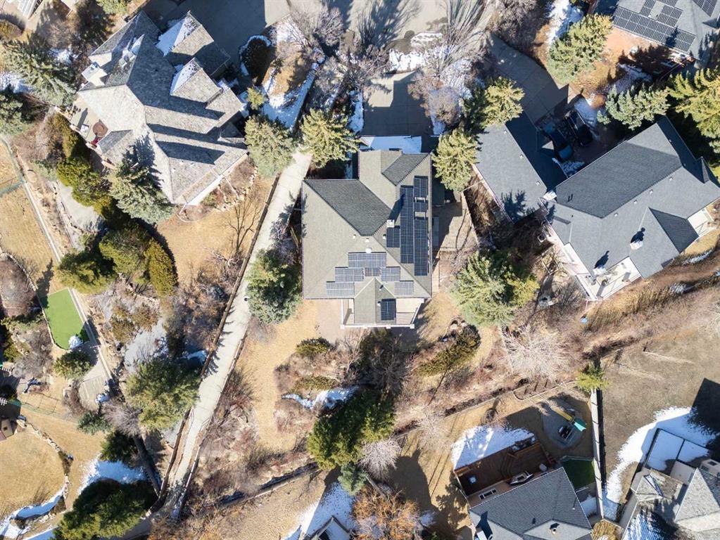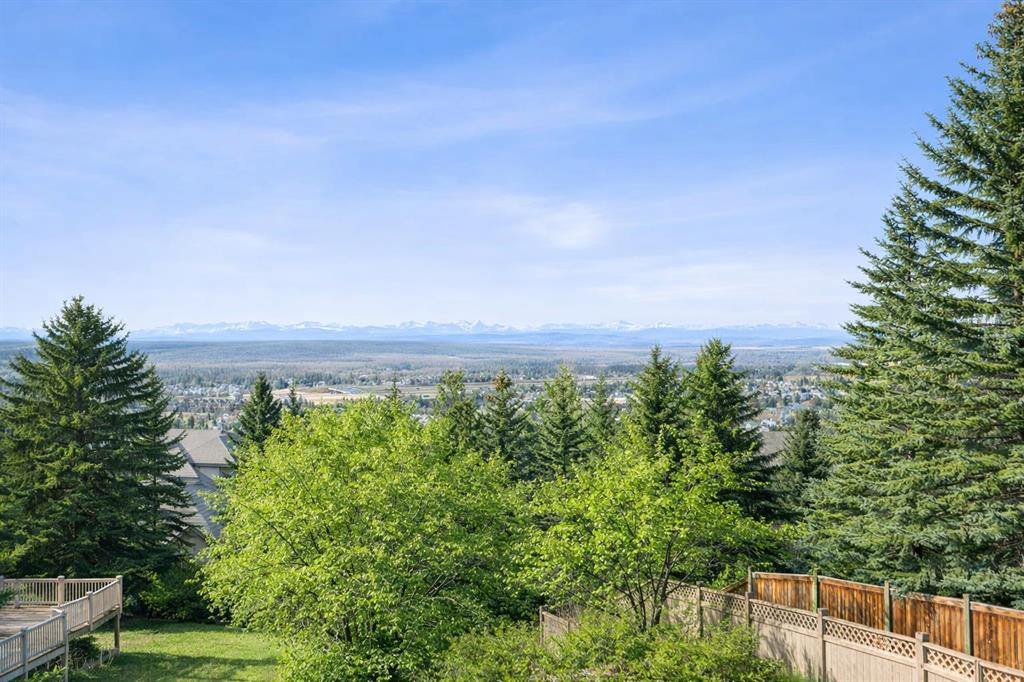 Welcome to a truly exceptional family home, perfectly positioned on a private 0.32 acre pie-shaped lot with stunning mountain and valley views from multiple vantage points. Thoughtfully designed, extensively upgraded, and built to last, this is a property that seamlessly blends everyday comfort with long-term value. One of the standout features of this home is the fully owned 36-panel solar system (installed in 2022), designed to generate clean, renewable energy while significantly reducing operating costs. With production that consistently exceeds consumption and a transferable 25-year warranty, this is a rare opportunity to own a home that is not only beautiful, but also forward-thinking and efficient. Inside, the home offers a warm and functional layout ideal for families. The beautifully renovated kitchen (2019) features two-tone cabinetry, natural stone countertops, premium appliances, and a spacious island that anchors the main living space. A bright breakfast nook, surrounded by windows, captures the views and provides direct access to the balcony, perfect for morning coffee or evening unwinding. Soaring ceilings and expansive windows fill both the formal and casual living areas with natural light, while multiple gathering spaces, including a front sitting room, formal dining area, and inviting family room, offer flexibility for entertaining and everyday living. Upstairs, you’ll find four well-appointed bedrooms, thoughtfully separated to provide privacy for the primary suite. The spacious primary retreat showcases southwest-facing mountain views, a generous walk-in closet, and a beautifully renovated spa-inspired ensuite with heated floors, a freestanding soaker tub, and a fully tiled walk-in shower. The fully developed walkout basement adds even more versatility, featuring a kitchenette, additional living space, two bedrooms, and a full bathroom, ideal for extended family, guests, or multi-generational living. In-floor slab heating ensures year-round comfort. Outside, the backyard is a true highlight, a three-tiered outdoor space designed to maximize both privacy and views. Whether enjoying the brick patio from the walkout level or relaxing on the upper balcony, you’ll appreciate the space, serenity, and connection to nature. Additional features include a triple attached garage, updated windows, air conditioning, irrigation system, and a long list of thoughtful upgrades throughout. This is more than just a home, it’s a lifestyle opportunity combining space, views, functionality, and energy efficiency in one of the most desirable settings.