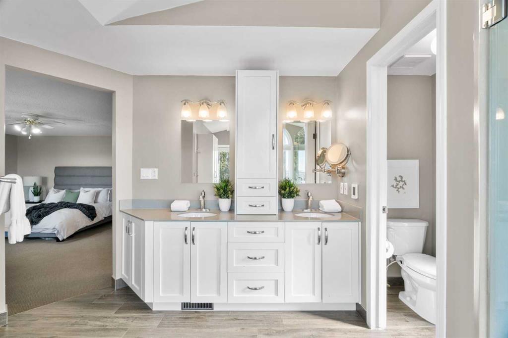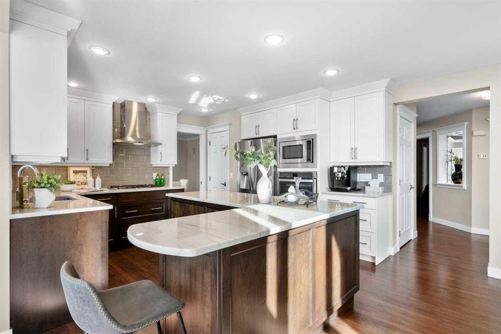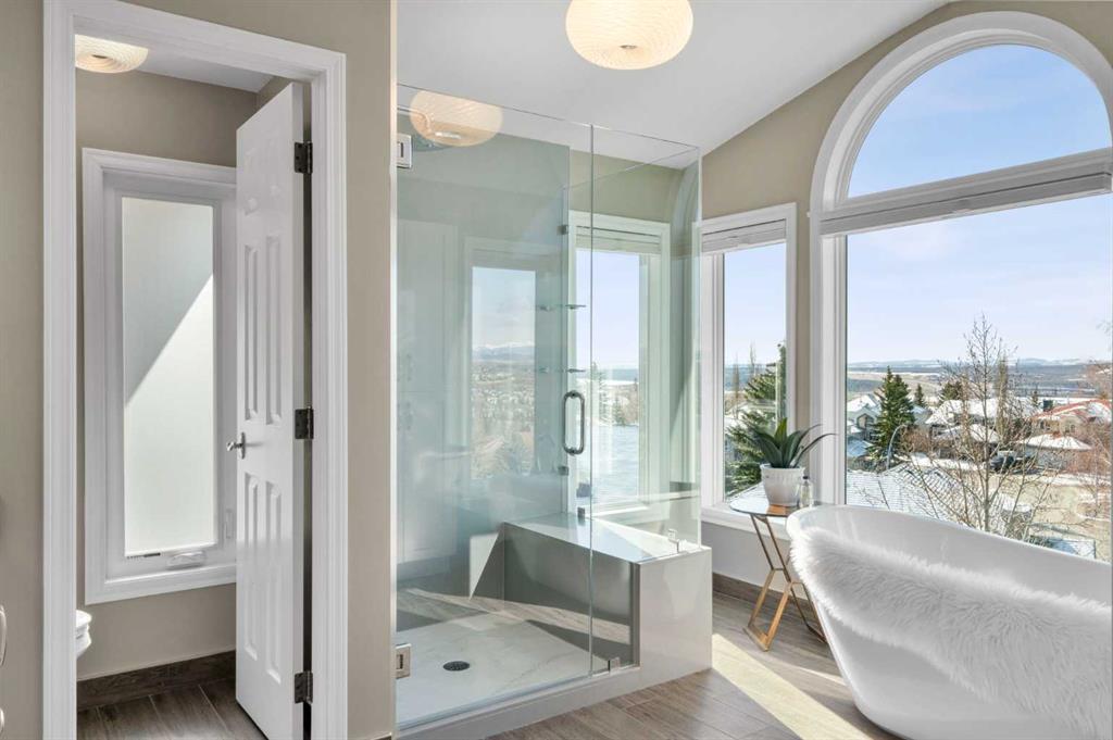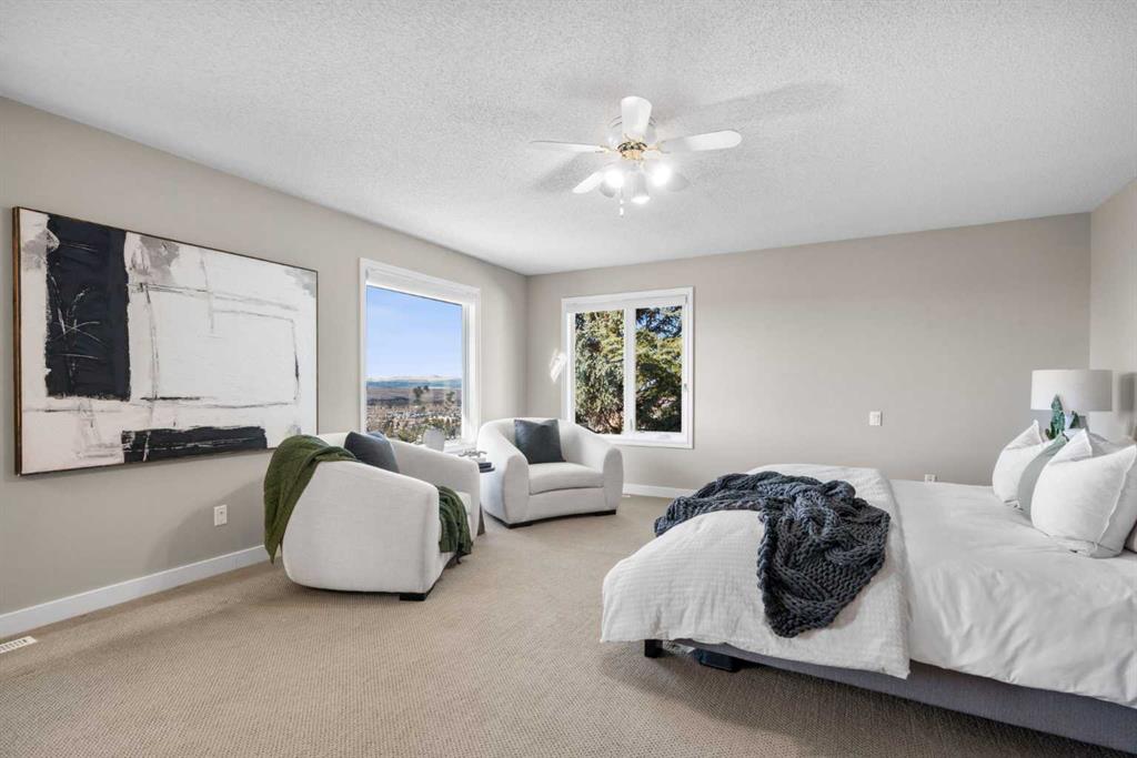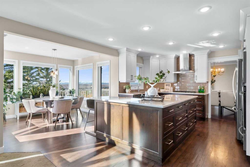 Welcome to a truly exceptional family home, perfectly positioned on a private 0.32 acre pie-shaped lot with stunning mountain and valley views from multiple vantage points. Thoughtfully designed, extensively upgraded, and built to last, this is a property that seamlessly blends everyday comfort with long-term value. One of the standout features of this home is the fully owned 36-panel solar system (installed in 2022), designed to generate clean, renewable energy while significantly reducing operating costs. With production that consistently exceeds consumption and a transferable 25-year warranty, this is a rare opportunity to own a home that is not only beautiful, but also forward-thinking and efficient. Inside, the home offers a warm and functional layout ideal for families. The beautifully renovated kitchen (2019) features two-tone cabinetry, natural stone countertops, premium appliances, and a spacious island that anchors the main living space. A bright breakfast nook, surrounded by windows, captures the views and provides direct access to the balcony, perfect for morning coffee or evening unwinding. Soaring ceilings and expansive windows fill both the formal and casual living areas with natural light, while multiple gathering spaces, including a front sitting room, formal dining area, and inviting family room, offer flexibility for entertaining and everyday living. Upstairs, you’ll find four well-appointed bedrooms, thoughtfully separated to provide privacy for the primary suite. The spacious primary retreat showcases southwest-facing mountain views, a generous walk-in closet, and a beautifully renovated spa-inspired ensuite with heated floors, a freestanding soaker tub, and a fully tiled walk-in shower. The fully developed walkout basement adds even more versatility, featuring a kitchenette, additional living space, two bedrooms, and a full bathroom, ideal for extended family, guests, or multi-generational living. In-floor slab heating ensures year-round comfort. Outside, the backyard is a true highlight, a three-tiered outdoor space designed to maximize both privacy and views. Whether enjoying the brick patio from the walkout level or relaxing on the upper balcony, you’ll appreciate the space, serenity, and connection to nature. Additional features include a triple attached garage, updated windows, air conditioning, irrigation system, and a long list of thoughtful upgrades throughout. This is more than just a home, it’s a lifestyle opportunity combining space, views, functionality, and energy efficiency in one of the most desirable settings.