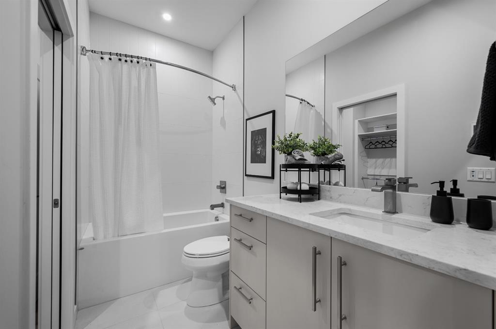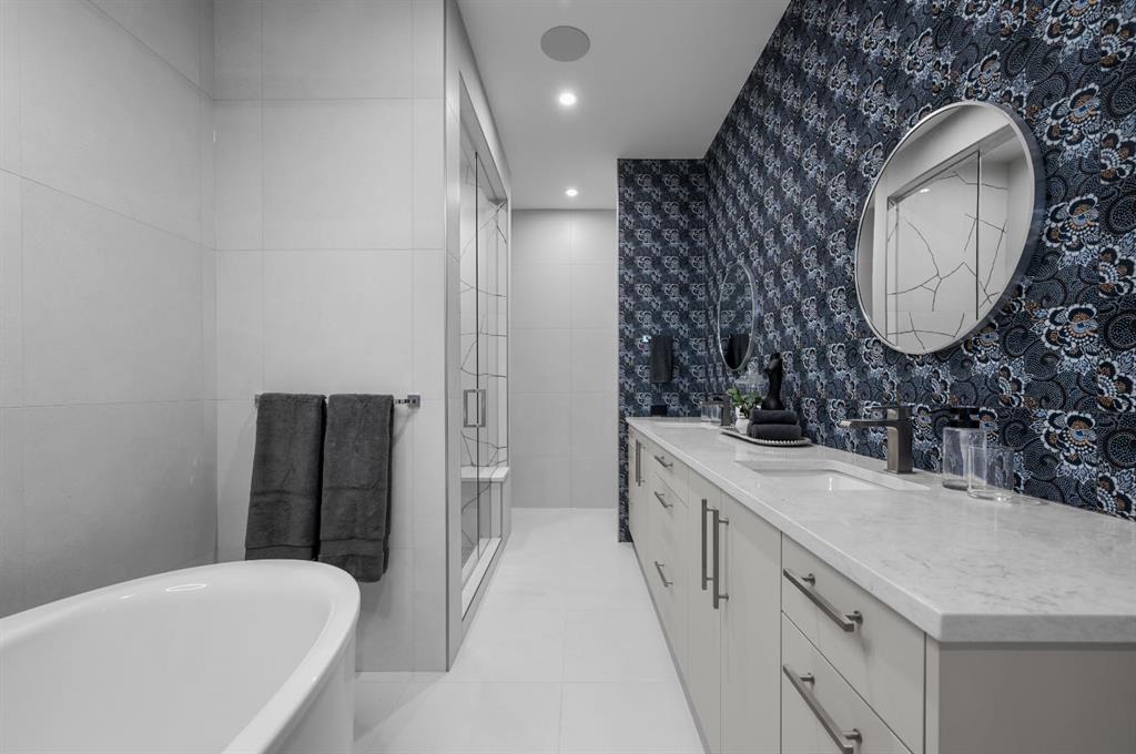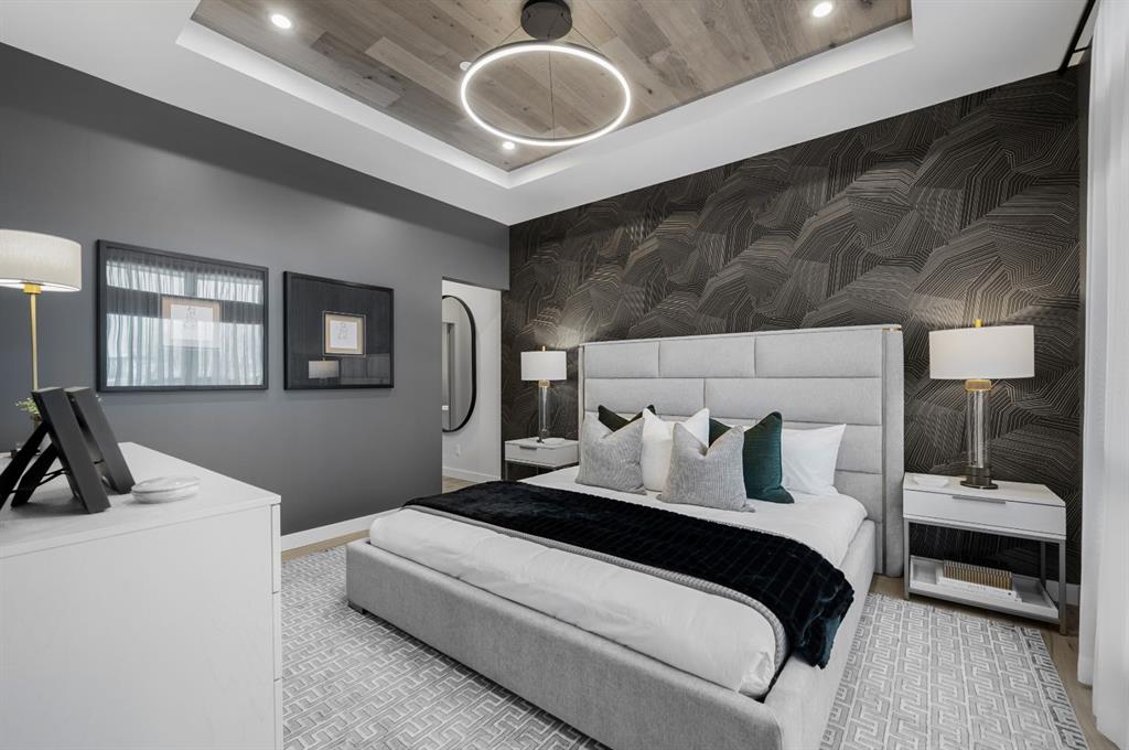 The owner’s suite is a serene retreat, offering a sanctuary of calm at the end of the day. The spa-like ensuite is designed for indulgence, featuring a freestanding soaker tub, a luxurious tiled shower, and dual vanities, turning daily rituals into moments of pure relaxation. Two additional bedrooms provide the perfect balance of functionality and comfort—ideal for family, guests, or a dedicated home office.