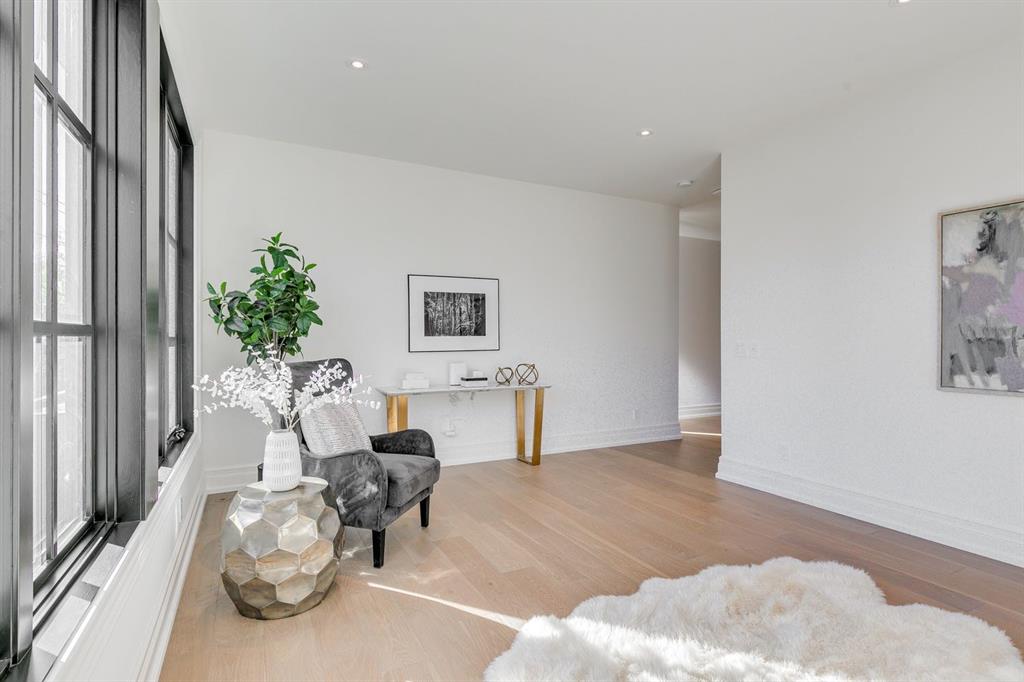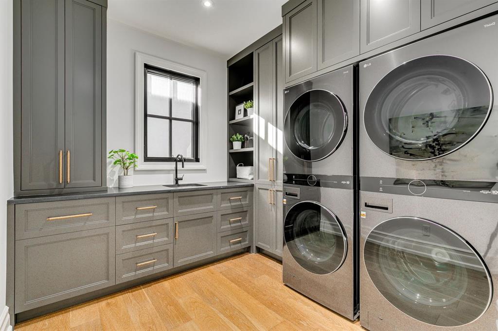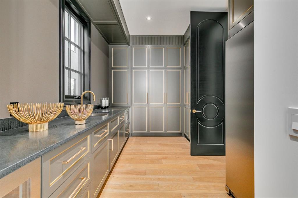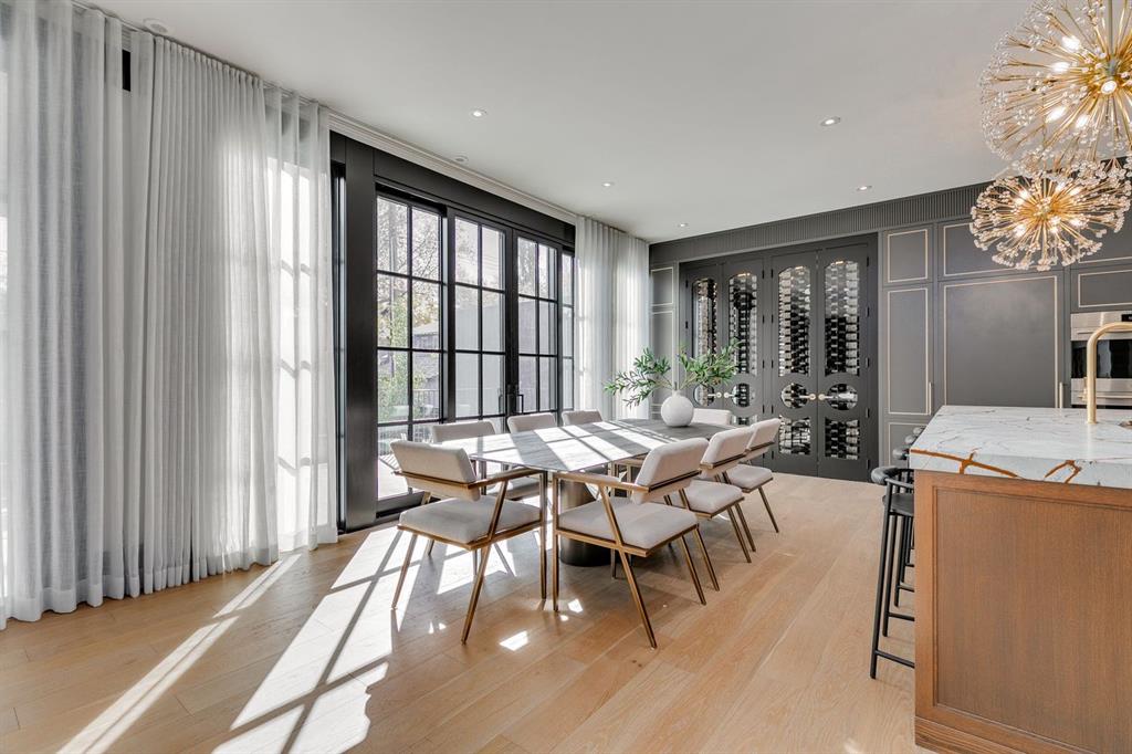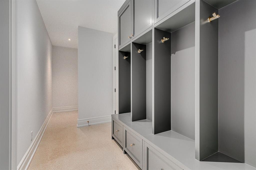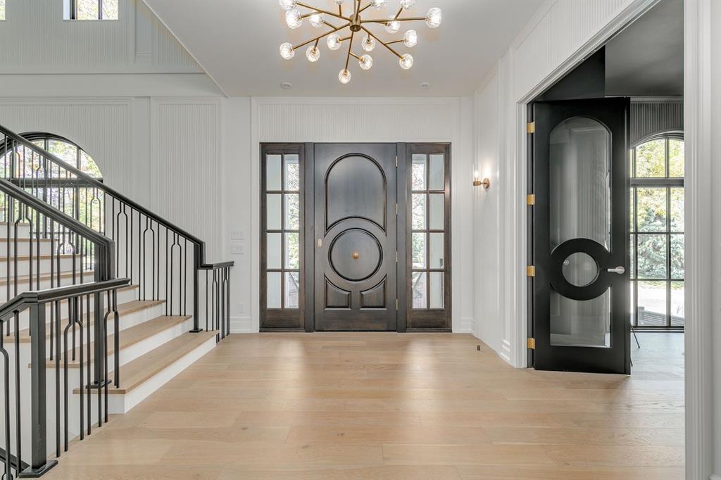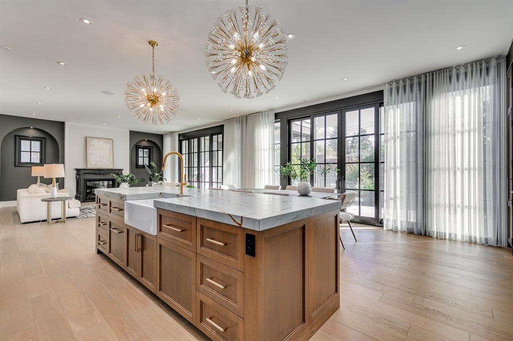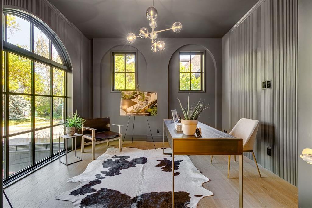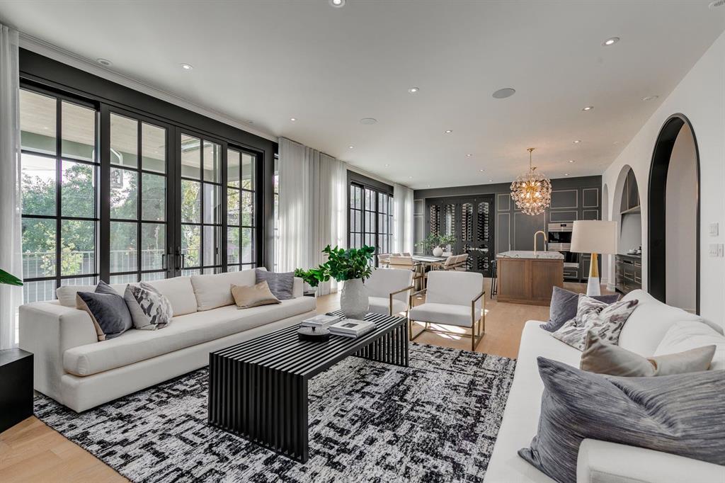 This masterfully crafted estate by Tyrrell Custom Homes is a true statement of elegance, nestled in the heart of Roxboro, one of Calgary’s most prestigious inner-city communities. Conceived by McDowell & Associates and elevated by the award winning Paul Lavoie Interior Design, this home is a seamless marriage of timeless architectural beauty and modern sophistication. From the moment you arrive, the home exudes refined grandeur with a stone and acrylic stucco exterior, a custom crafted front door, and expertly landscaped grounds featuring underground irrigation and a fully fenced yard. A snow melt driveway leads to the rare heated four car garage, while a private covered outdoor living room, complete with a wood burning fireplace, flush-mount heaters, and built-in speakers, sets the stage for year-round entertaining in style. Inside, the commitment to quality and detail is unmistakable. Soaring ceilings, custom white oak staircases, and herringbone patterned oak flooring create a backdrop of European flare with quiet luxury. Signature features such as a sculptural cast-stone fireplace mantle and bespoke finishes throughout showcase the home’s craftsmanship at every turn with. Designed for both everyday living and lavish entertaining, the open concept layout includes an elegant formal dining spaces with feature wine wall, and a dreamy kitchen equipped with Subzero and Wolf appliances, site built cabinetry, and a fully appointed butler’s pantry with secondary sink, dishwasher, and freezer. Upstairs, the opulent primary suite offers a private sanctuary with heated tile floors, a steam shower, freestanding soaker tub, and a designer dressing room featuring an island, bench seating, makeup vanity, mirrors, wallpaper accents, and a statement chandelier. Two additional bedrooms, a spacious upper level laundry room with dual washer/dryers, and thoughtful built-ins add both luxury and functionality. A charming library nook offers the perfect spot to unwind with a good book, while a spacious bonus room with vaulted ceilings provides flexibility and can easily be converted into a fourth bedroom. The lower level continues the theme of elevated living with a fifth bedroom, full bathroom, a mirrored fitness studio, and a custom wet bar that anchors the spacious rec room. A Viessmann boiler system with in-floor radiant heat, dual Carrier furnaces, smart thermostats, A/C, HRVs, central vac rough-in, and whole home automation wiring ensure the home is as high performing as it is beautiful. Every detail, right down to the epoxied heated garage floors and premium materials throughout has been thoughtfully curated to the highest standard. This is a rare opportunity to own a home that combines exceptional craftsmanship, technological innovation, and timeless European design, all within steps of the Elbow River and moments from downtown Calgary.
