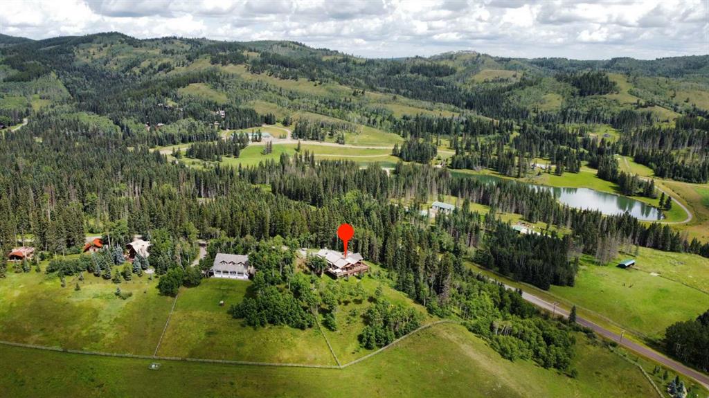 Stunning Foothills Retreat in Square Butte Ranch. Nestled in the rolling hills of Foothills County, just north of Millarville, this exceptional 1.8-acre property sits proudly atop Black Bear Lane in the highly sought-after Square Butte Ranch community. This private, gated, bare-land condominium offers a rare blend of country living with the conveniences of shared water access and community standards that preserve the beauty and quality of the area. Perched on the crest of the hill, the home is designed to take full advantage of its setting. From the expansive wrap-around deck, you can enjoy breathtaking panoramic views of the valley and surrounding foothills, making for peaceful mornings and unforgettable sunsets. Inside, this inviting split-level home offers over 2,100 square feet of living space plus a fully developed walkout basement. The heart of the home is the open-concept living room, anchored by a striking floor-to-ceiling stone wood-burning fireplace with a decorative oversized mantle. Natural light fills the space, enhancing the warmth and charm of this country retreat. The spacious primary suite is conveniently located on the main level, featuring a five-piece ensuite and serene views. The kitchen offers a functional layout with a central island and abundant windows framing the stunning landscape. A private den on this level provides an ideal work-from-home or reading space. The walkout basement, recently renovated, offers even more living space with a second fireplace (gas), a large recreation room, an additional den, cold room, bonus room, and generous storage areas, including dual utility rooms supporting the home’s water and heating systems. Whether you are raising a family or seeking a tranquil country lifestyle, this home delivers comfort, functionality, and beauty in equal measure. Square Butte Ranch is more than a community—it is a lifestyle, offering residents the serenity of country living with the confidence of shared amenities and well-maintained standards.