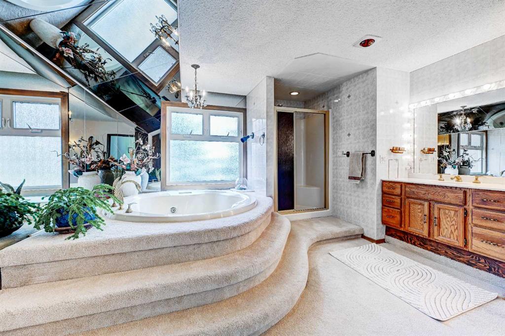 Upstairs, you’ll find four generously sized bedrooms, including a spacious primary retreat with a large ensuite and soaker tub, offering excellent potential to personalize and update. Three additional bedrooms and a full bathroom provide ample space for family and guests.