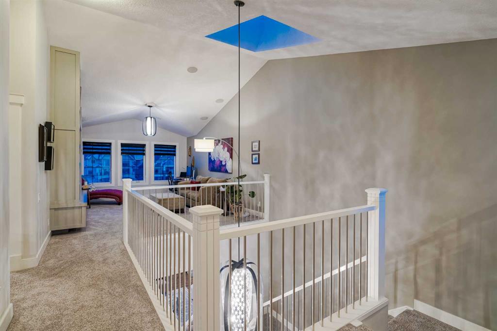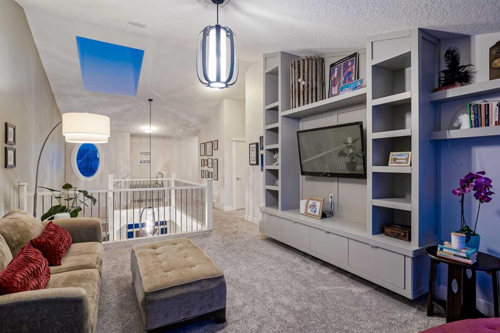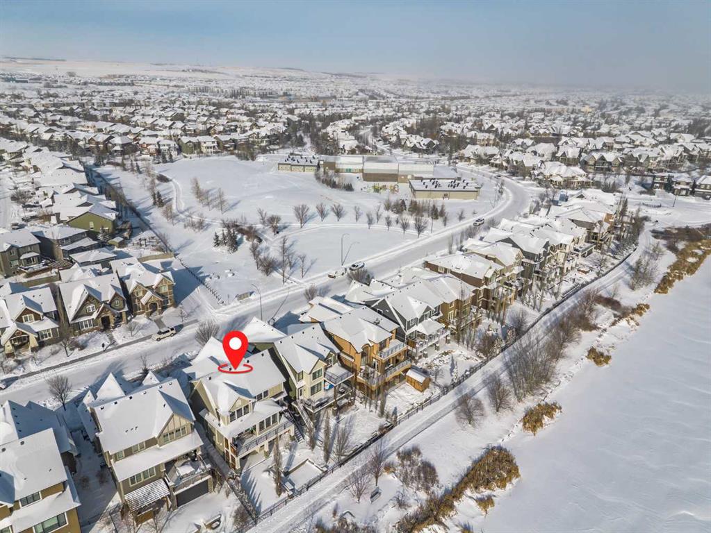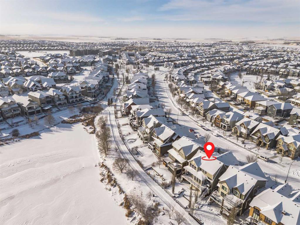 **OPEN HOUSE SUN MAR 1st 12PM - 4PM** Welcome to this exceptional McKee-built custom home in the prestigious community of Coopers Crossing, where refined craftsmanship meets unobstructed pond-side living. Offering over 3,700 sqft of professionally developed living space, this fully finished 4-bedroom, 3.5-bathroom walk-out home delivers an elevated lifestyle defined by architectural detail and premium upgrades. From the moment you arrive, the curb appeal is undeniable - an exposed aggregate driveway, covered front porch with cedar soffit detailing, and a fully landscaped lot create a strong first impression. The 708 sqft triple tandem heated garage is both functional and impressive, complete with overhead storage and room for vehicles, toys, or workshop space. Inside, a dramatic open-rise staircase anchors the main level, while engineered hardwood flooring flows throughout. The great room is designed for both everyday living and upscale entertaining, featuring a custom fireplace surround with built-ins and expansive windows framing tranquil pond views. The chef-inspired kitchen is a true showpiece. Thoughtfully upgraded with crisp white cabinetry, double islands, and premium stainless steel appliances, it includes a 48” Jenn-Air dual-fuel gas range, Vent-A-Hood range hood, and Electrolux side-by-side refrigerator/freezer. An exquisite under mount sink and refined finishes complete this elevated culinary space. From this level, step outside to your private backyard oasis: a full-width 33’4” x 9’8” composite deck with stairs leading to professionally designed stone scaping, low-maintenance turf, and a dedicated firepit and patio area (15’4” x 10’4”). Upstairs, vaulted ceilings and two skylights flood the bonus room, primary suite, ensuite, and laundry room with natural light. The primary retreat offers serene water views and a spa-inspired ensuite designed for relaxation. Three additional bedrooms complete the upper level, including one with a charming Juliet balcony. The fully developed walk-out basement extends the living space seamlessly outdoors and features a wet bar, spacious recreation area, hobby room, and additional storage. Morning coffees overlooking the water in summer. Skating on the pond in winter. This is a home designed to be experienced in every season. Additional highlights include upper-level exterior pot lights, custom built-ins throughout, security camera system and panel, pre-wired in-ceiling speakers with two Sonos bridges, dual furnaces plus A/C. Rarely do homes combine this level of finish, functionality, and uninterrupted pond views in one of Airdrie’s most sought-after communities. This is luxury living - without compromise.