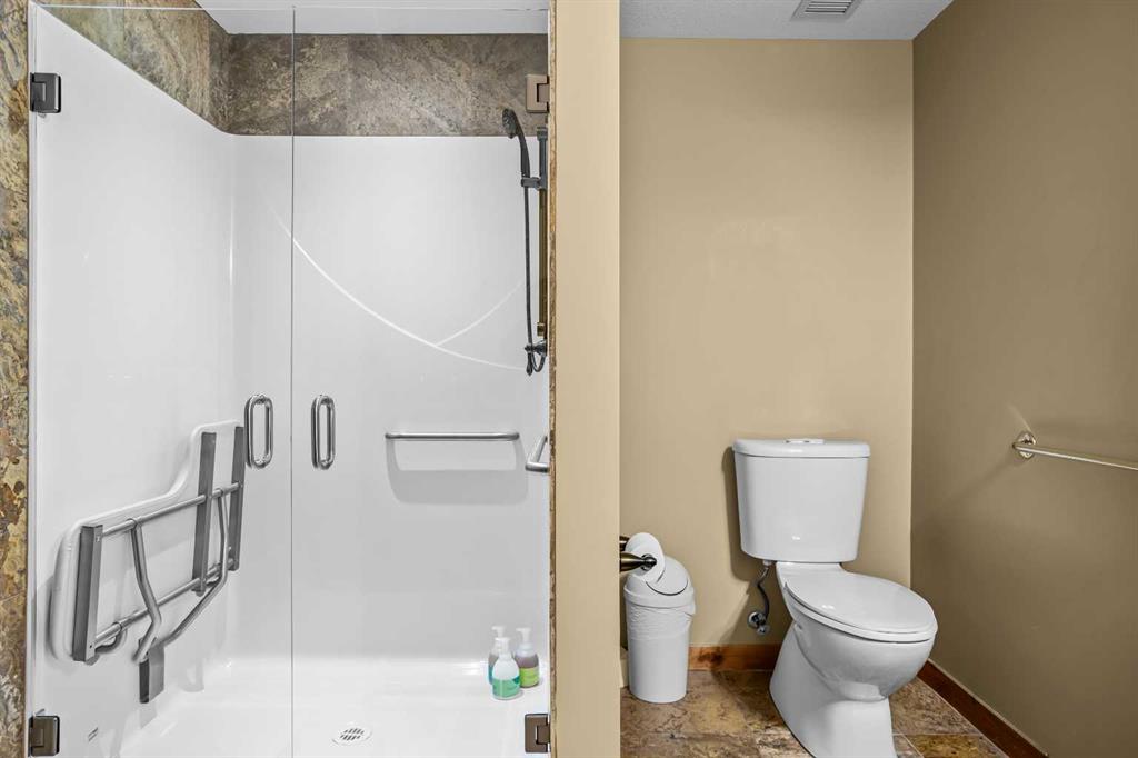 The open-concept layout is bright and welcoming with large windows that frame the mountain backdrop and a natural connection to a private patio. Its fully wheelchair-accessible design makes it one of the only short term rentable accessible units in Spring Creek, significantly expanding its guest appeal and long-term value.