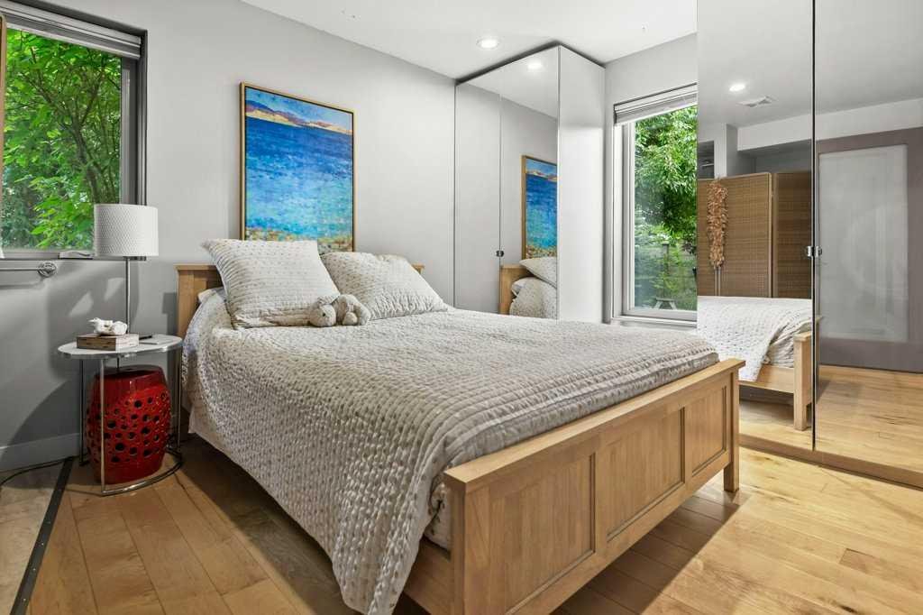 The living room offers warmth and character with a unique twist – a secret loft playroom that adds charm and a touch of whimsy. Each level of this thoughtfully designed home brings privacy, functionality, and style.