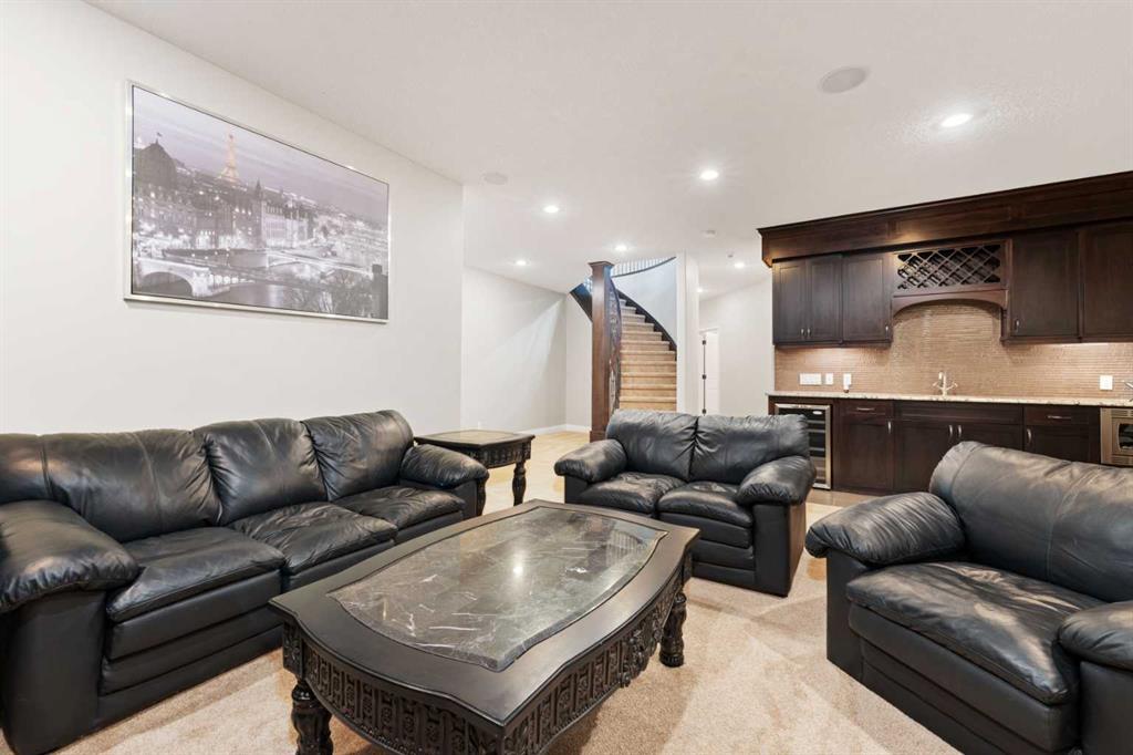 Looking for a home that has the “wow” factor the moment you step inside? This former show home in Okotoks’ highly desirable Air Ranch community delivers exactly that—and so much more. With 5 bedrooms, 3.5 bathrooms, and nearly every upgrade you could ask for, this property backs directly onto greenspace, offering a unique setting you won’t find anywhere else. It’s a rare combination of refined design and everyday comfort, all wrapped up in one incredible package. From the moment you walk in, the grand foyer makes an impression with 18’ ceilings, a sweeping spiral staircase, and natural light that fills the main floor. The layout is built for both entertaining and family living. The kitchen is every chef’s dream—featuring a Wolf gas range, Viking fridge, custom Hammersmith hood fan, and a convenient water filtration/softener system. Rich cabinetry runs floor-to-ceiling, paired with granite counters, a large island, and a walk-in pantry to keep everything organized. Throughout the main level, you’ll notice thoughtful details that set this home apart. A built-in audio system lets you enjoy music in every room. The office, tucked behind distinctive arched French doors, provides a quiet space for work or study. Even the laundry room has been elevated with granite counters to match the home’s cohesive, upscale feel. Upstairs, three generously sized bedrooms and two full bathrooms provide plenty of space for family and guests. The primary suite is the highlight—a true retreat with room for a king-sized bed and private seating area. The 5-piece ensuite feels like a spa with a granite double vanity, corner soaker tub, walk-in tiled shower, and expansive walk-in closet. The fully finished lower level is where this home really shines. With two additional bedrooms, a 3-piece bath featuring a steam shower, and a large family room complete with a cozy gas fireplace and built-in entertainment centre, there’s space for everyone. A granite-topped wet bar with sink, wine fridge, and microwave makes it easy to entertain or kick back for movie nights. You’ll also find a large finished storage area to keep everything neatly tucked away. Car enthusiasts or families with multiple vehicles will appreciate the massive heated garage, designed with both function and space in mind. Outdoors, the lifestyle continues with a screened-in covered sunroom off the kitchen eating nook, leading to a stone patio with a built-in fireplace and additional gas lines ready for your BBQ & sunroom. Surrounded by mature trees, Gemstone lights for year-round curb appeal, and serviced by an underground sprinkler system, the yard is both private and low-maintenance. Central AC adds comfort through the summer months, so you’ll enjoy this home year-round. Air Ranch is one of Okotoks’ most distinctive communities, known for its quiet streets, beautiful homes, and unique aviation history. If you’re after a property that checks every box—style, function, and location—this home has it all. Come take a look for yourself!