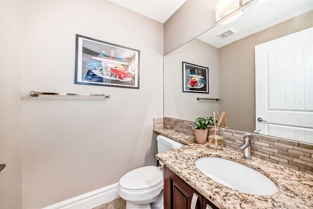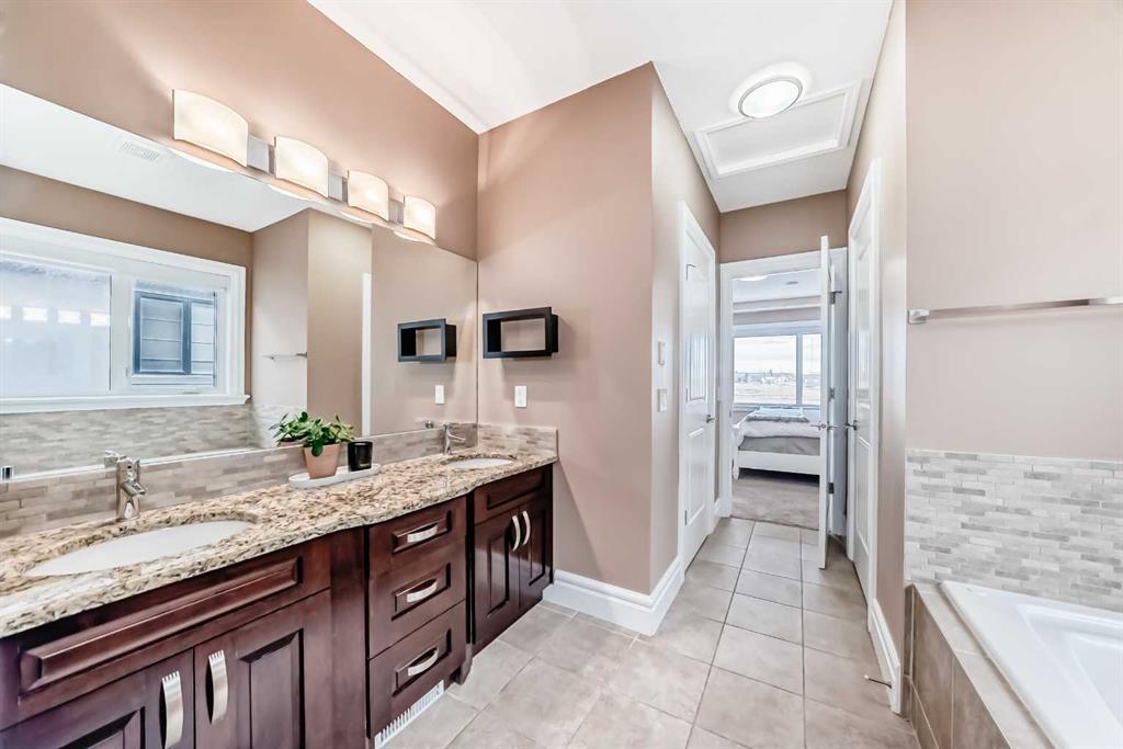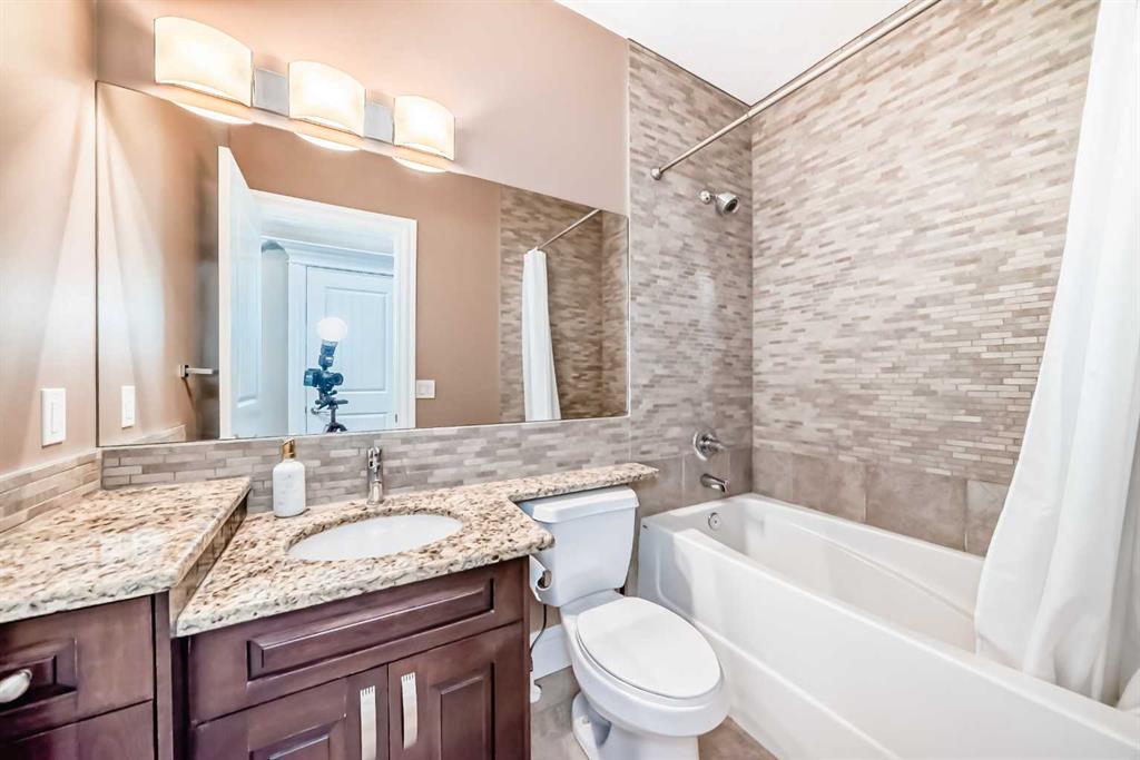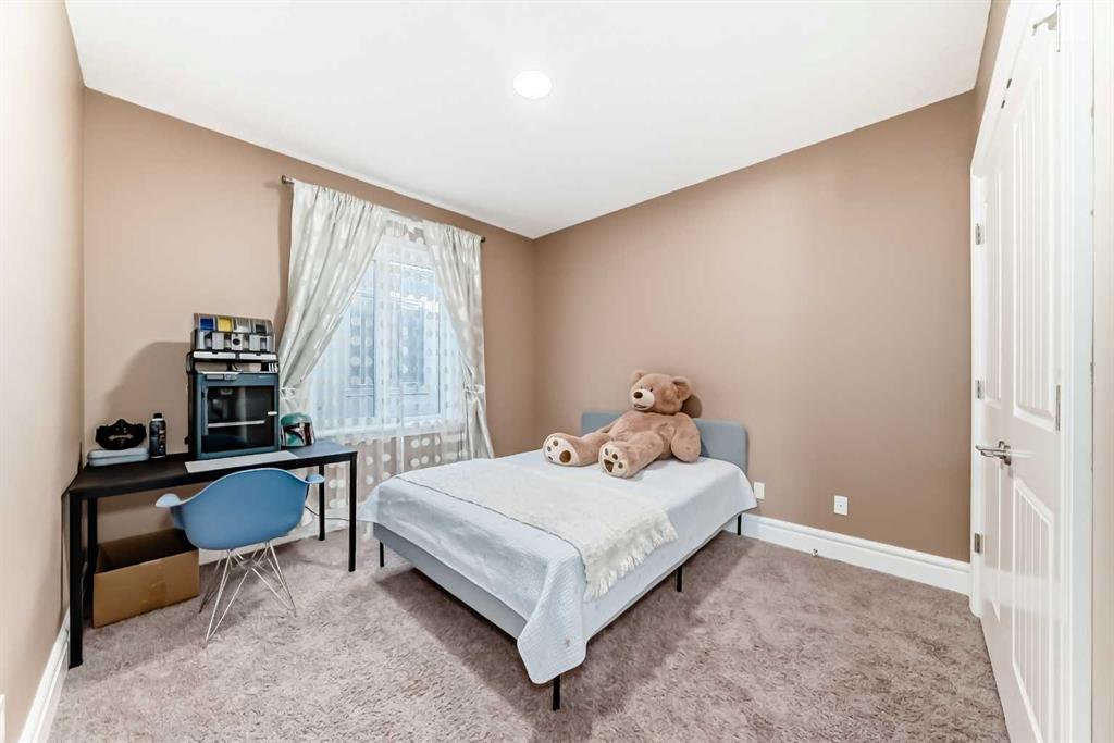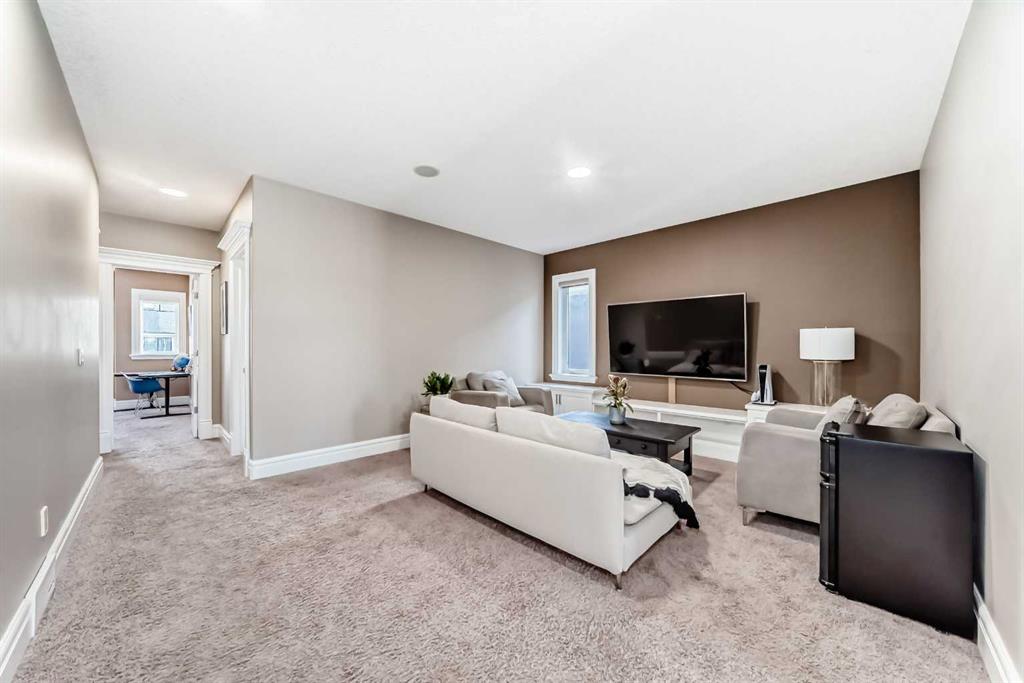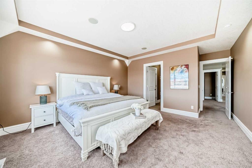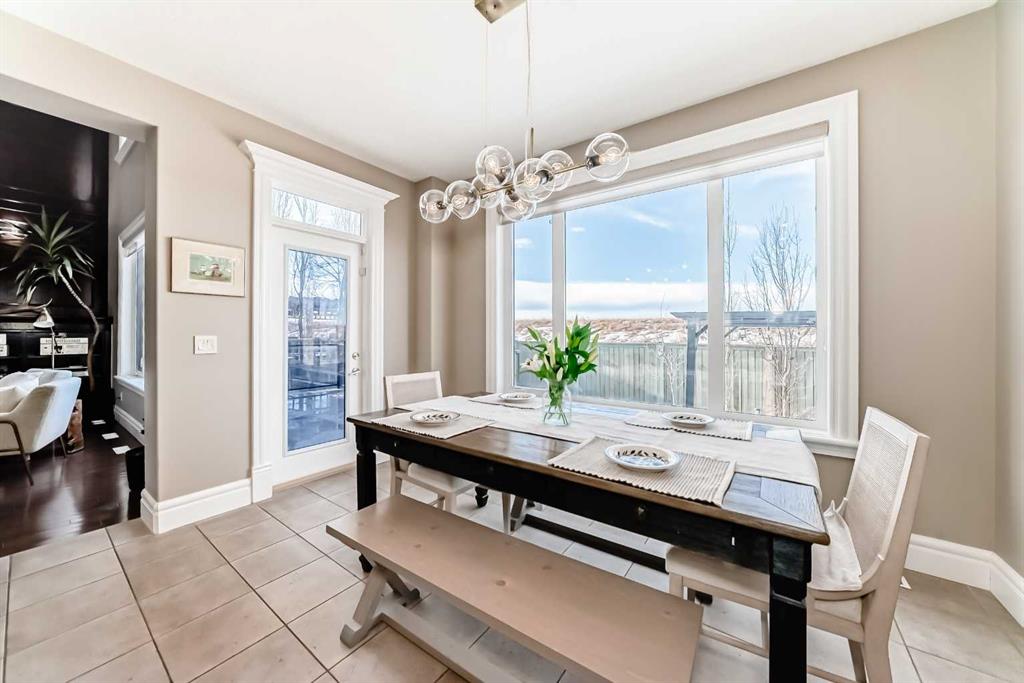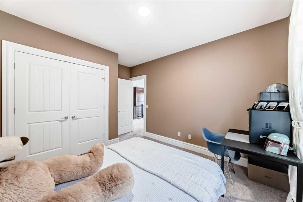 This beautifully maintained home features 4 bedrooms, 2.5 bathrooms, and a bright open-concept layout ideal for modern family living and entertaining. Extensive upgrades include custom trim, crown moulding, detailed woodworking, LED lighting, and built-in ceiling speakers. The main floor offers a spacious living area and a private home office, perfect for remote work. The chef-inspired kitchen showcases custom cabinetry, granite countertops, stainless steel appliances, a large central island with wine rack and beverage cooler, tiled backsplash, and a glass-top stove with built-in microwave and oven. The impressive great room features a 20-foot ceiling, oversized windows, a skylight, hardwood flooring, and a striking gas fireplace with a two-storey wood mantel, creating a bright and elegant living space.Upstairs, the primary suite includes dual closets, double vanities with granite countertops, a soaker tub, and a tiled shower. Three additional bedrooms are complemented by a media room, a full bathroom, and a convenient upper-floor laundry room. Enjoy a private backyard retreat with an oversized vinyl deck with glass railing, natural gas BBQ hookup, and a pergola—ideal for outdoor relaxation and entertaining.Recent upgrades include: FOTILE range hood fan, 5-head gas cooktop, kitchen water purification system, whole-house fresh paint, updated interior and exterior lighting, and duct cleaning. A rare opportunity to own a move-in-ready former show home in one of Calgary’s most sought-after communities.