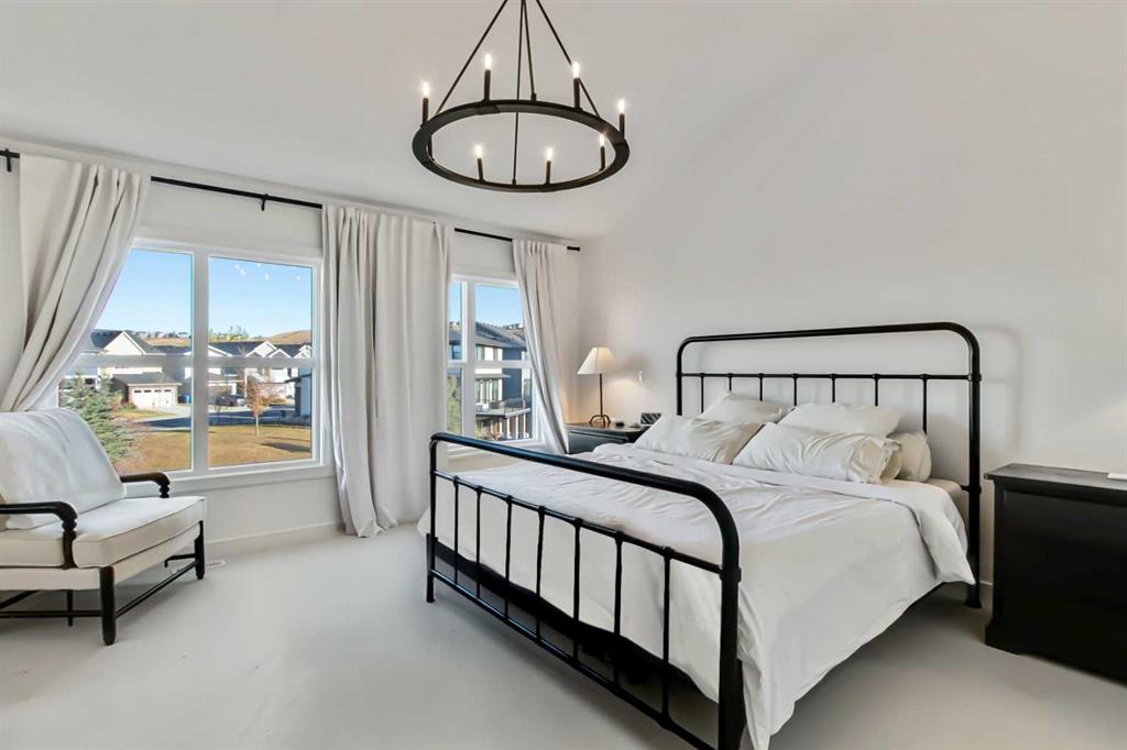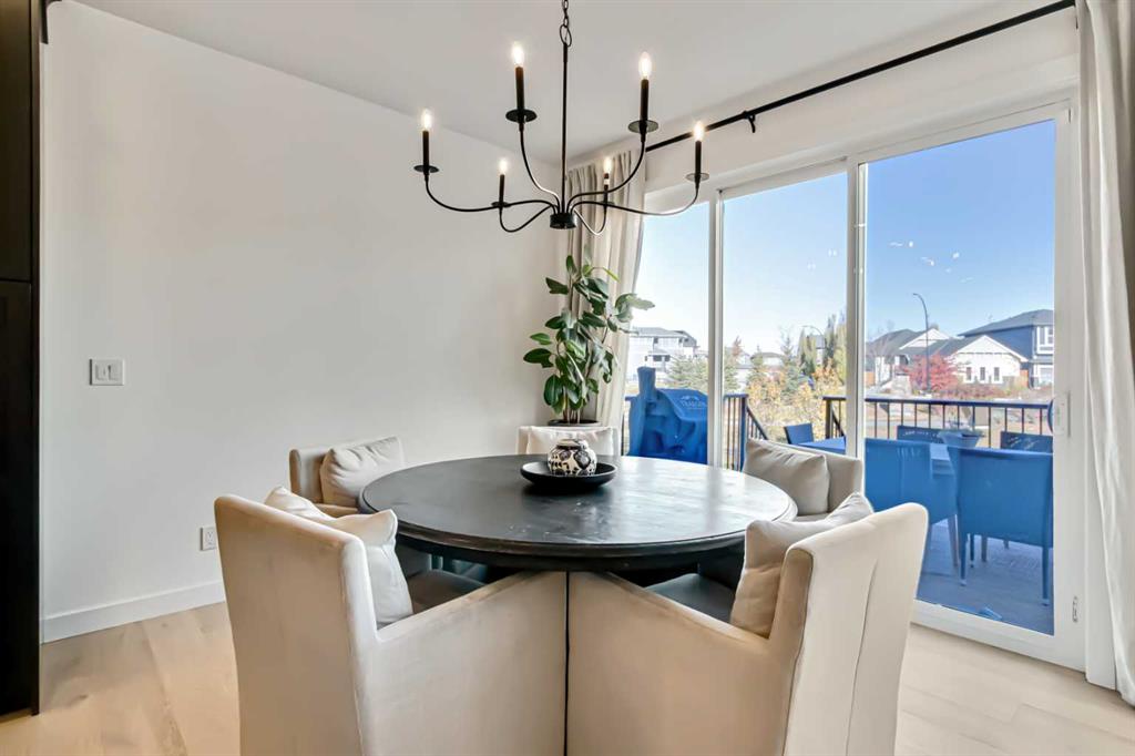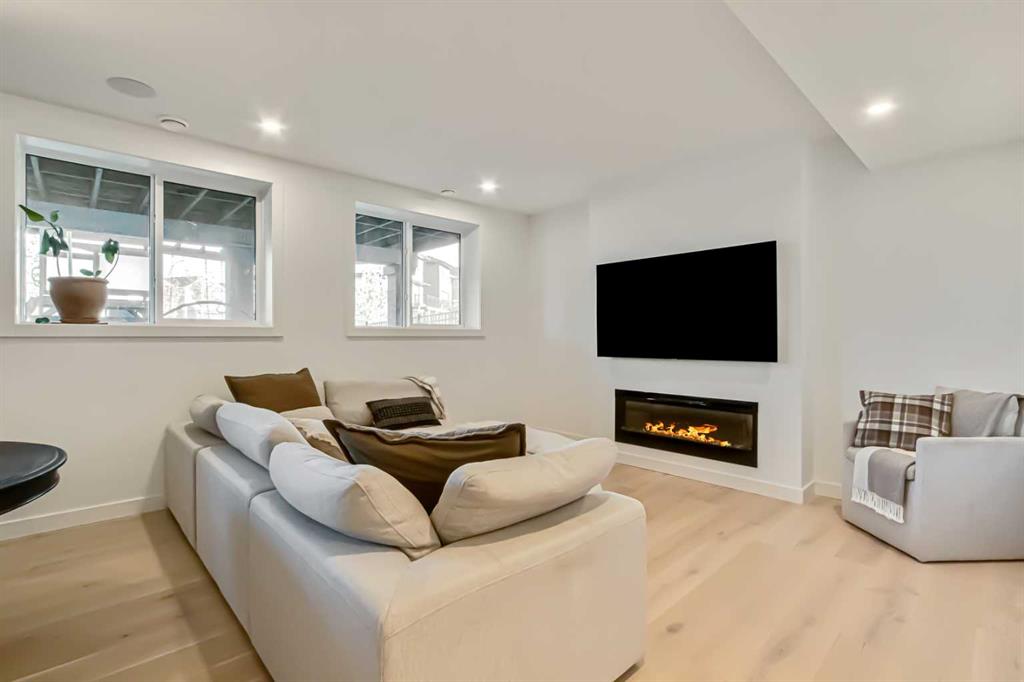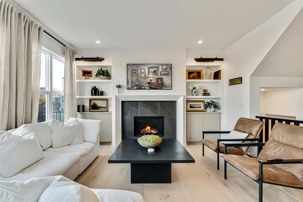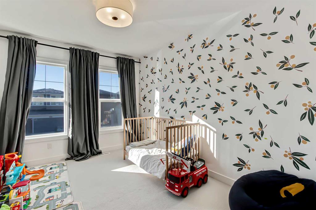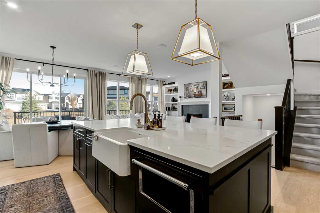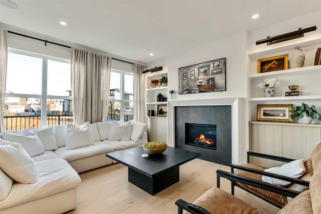 Welcome to this stunning, fully upgraded 4 bedroom, 3.5 bath home in the highly sought after community of Cranston’s Riverstone. Perfectly positioned backing onto green space and just steps from the river, walking paths and the pond, this 2,402 sq.ft home blends luxury finishes with thoughtful design. The main floor offers an elongated entryway leading to an open concept living area flooded with natural light, a beautiful gas fireplace surrounded by custom built ins, a gourmet kitchen with quartz counters and backsplash, upgraded KitchenAid black stainless steel appliances, gas range with pot filler, custom hood fan, farmhouse sink, dining room, large walk in pantry and designer lighting. A custom mudroom with built in lockers adds everyday convenience. Upstairs features three bedrooms and two full baths, including a secondary bath with double vanities - perfect for sharing. The primary bedroom impresses with vaulted ceilings, a spa like ensuite, complete with a freestanding tub, rain shower with marble and zellige style tile, separate vanities and a large walk in closet connected to a convenient laundry room. A spacious vaulted bonus room completes the upper level. Downstairs, the fully finished basement includes a fourth bedroom, office space, full bath, wet bar with quartz counters/sconces and a cozy living area with an electric fireplace - ideal for entertaining. With over 100k in premium upgrades, including heated floors, custom cabinetry, built in speakers, smart lighting and rough ins for A/C and central vac, this home offers modern comfort and timeless style in a beautiful natural setting.