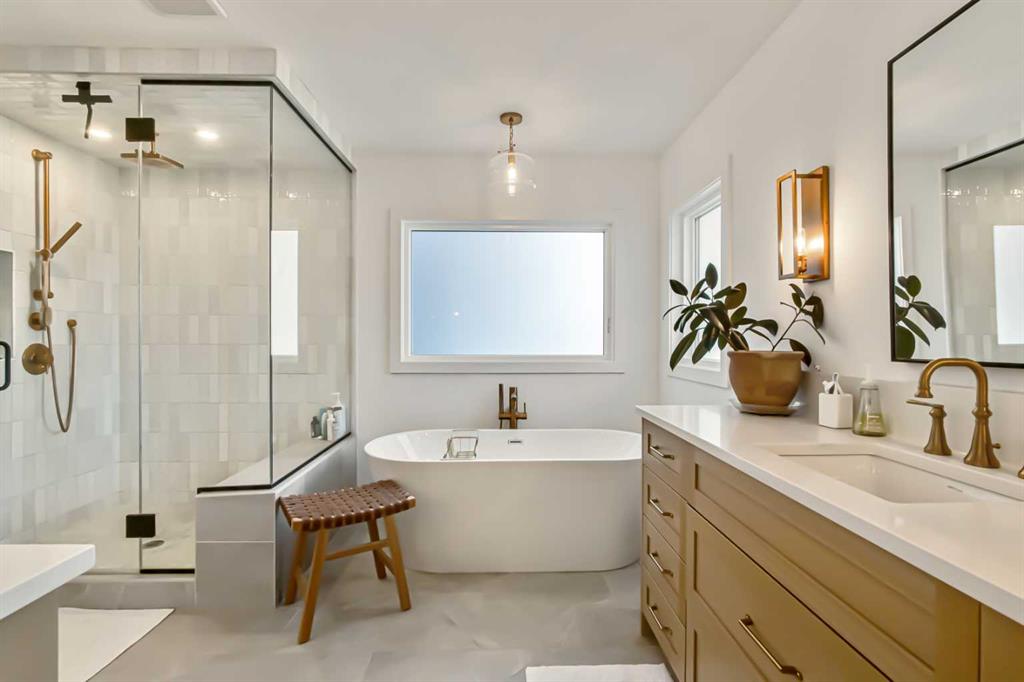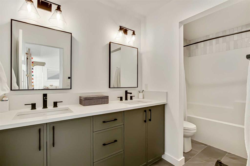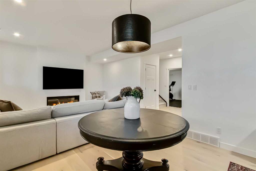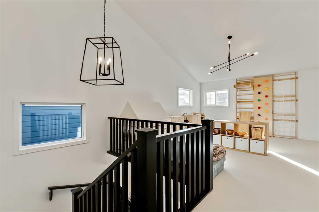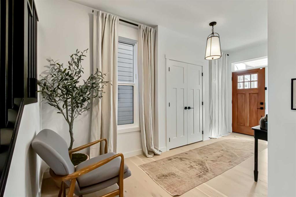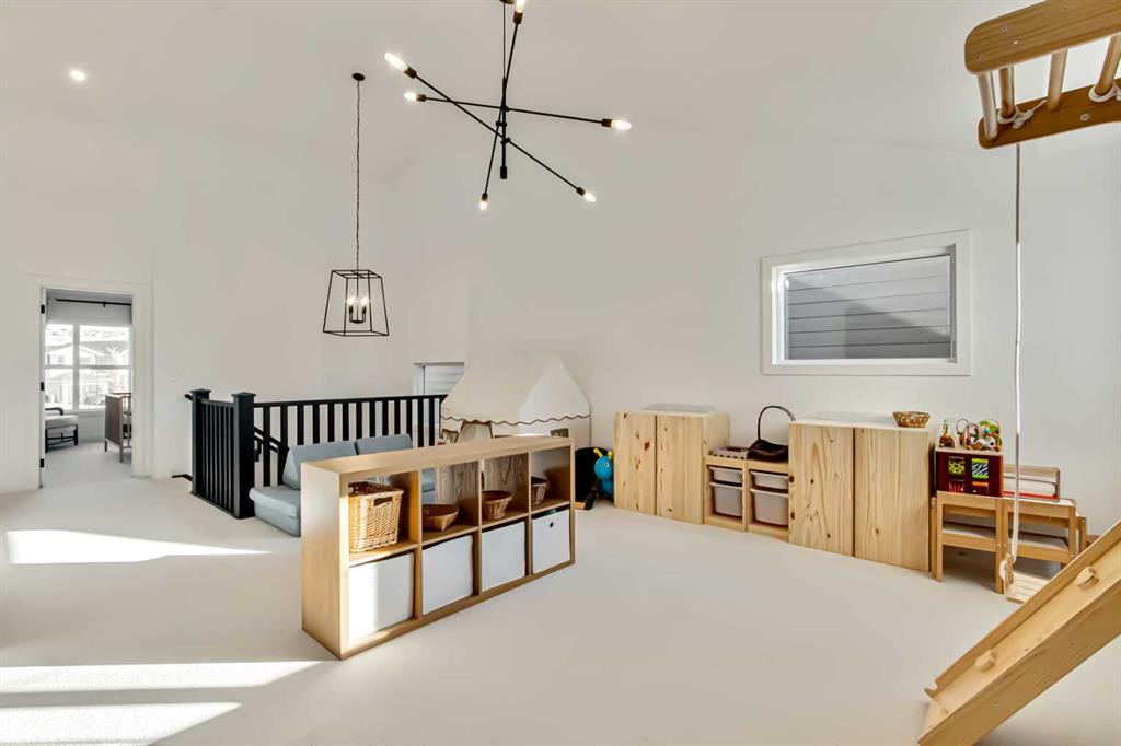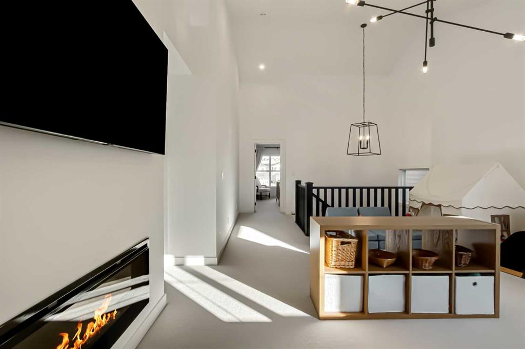 Welcome to this stunning, fully upgraded 4 bedroom, 3.5 bath home in the highly sought after community of Cranston’s Riverstone. Perfectly positioned backing onto green space and just steps from the river, walking paths and the pond, this 2,402 sq.ft home blends luxury finishes with thoughtful design. The main floor offers an elongated entryway leading to an open concept living area flooded with natural light, a beautiful gas fireplace surrounded by custom built ins, a gourmet kitchen with quartz counters and backsplash, upgraded KitchenAid black stainless steel appliances, gas range with pot filler, custom hood fan, farmhouse sink, dining room, large walk in pantry and designer lighting. A custom mudroom with built in lockers adds everyday convenience. Upstairs features three bedrooms and two full baths, including a secondary bath with double vanities - perfect for sharing. The primary bedroom impresses with vaulted ceilings, a spa like ensuite, complete with a freestanding tub, rain shower with marble and zellige style tile, separate vanities and a large walk in closet connected to a convenient laundry room. A spacious vaulted bonus room completes the upper level. Downstairs, the fully finished basement includes a fourth bedroom, office space, full bath, wet bar with quartz counters/sconces and a cozy living area with an electric fireplace - ideal for entertaining. With over 100k in premium upgrades, including heated floors, custom cabinetry, built in speakers, smart lighting and rough ins for A/C and central vac, this home offers modern comfort and timeless style in a beautiful natural setting.