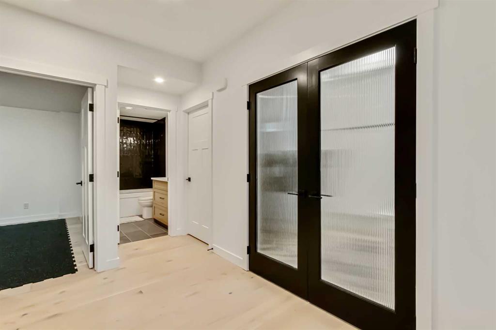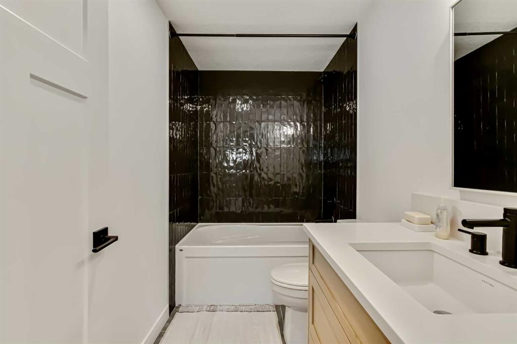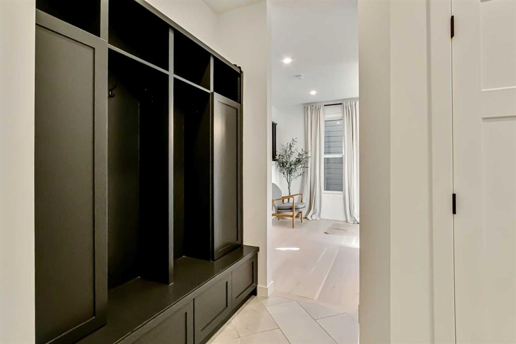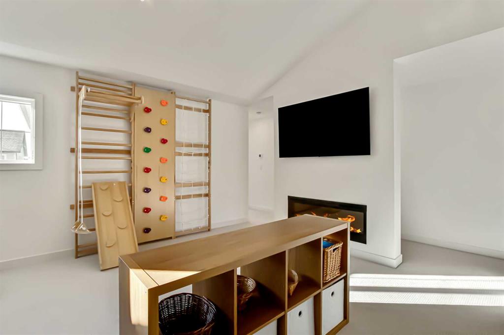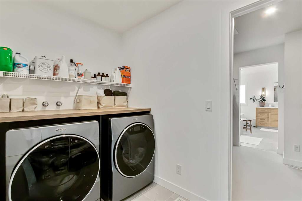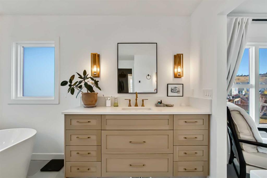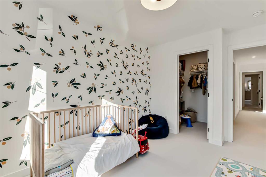 Welcome to this stunning, fully upgraded 4 bedroom, 3.5 bath home in the highly sought after community of Cranston’s Riverstone. Perfectly positioned backing onto green space and just steps from the river, walking paths and the pond, this 2,402 sq.ft home blends luxury finishes with thoughtful design. The main floor offers an elongated entryway leading to an open concept living area flooded with natural light, a beautiful gas fireplace surrounded by custom built ins, a gourmet kitchen with quartz counters and backsplash, upgraded KitchenAid black stainless steel appliances, gas range with pot filler, custom hood fan, farmhouse sink, dining room, large walk in pantry and designer lighting. A custom mudroom with built in lockers adds everyday convenience. Upstairs features three bedrooms and two full baths, including a secondary bath with double vanities - perfect for sharing. The primary bedroom impresses with vaulted ceilings, a spa like ensuite, complete with a freestanding tub, rain shower with marble and zellige style tile, separate vanities and a large walk in closet connected to a convenient laundry room. A spacious vaulted bonus room completes the upper level. Downstairs, the fully finished basement includes a fourth bedroom, office space, full bath, wet bar with quartz counters/sconces and a cozy living area with an electric fireplace - ideal for entertaining. With over 100k in premium upgrades, including heated floors, custom cabinetry, built in speakers, smart lighting and rough ins for A/C and central vac, this home offers modern comfort and timeless style in a beautiful natural setting.