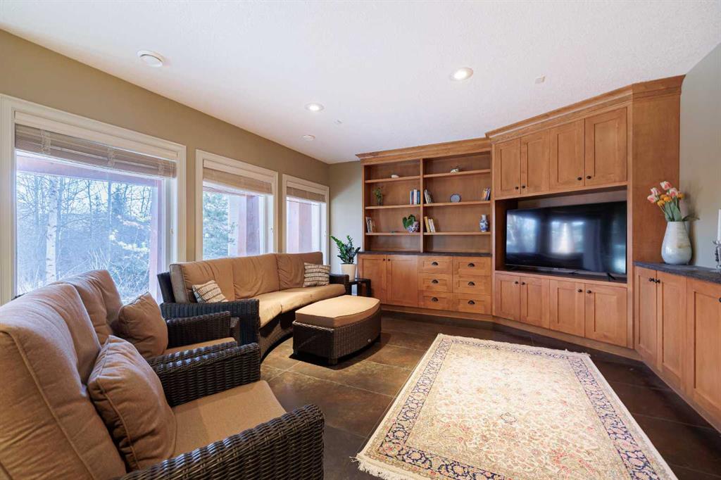 Nestled on a quiet, tree-lined street in the heart of prestigious Tanglewood, this stunning quality-built estate home offers timeless elegance, thoughtful design, and exceptional functionality for modern family living. From the moment you arrive, the home impresses with its welcoming presence, oversized double attached garage with ample storage, and comfort-enhancing features such as central air conditioning. Step inside to a bright and inviting main floor highlighted by a formal dining room just off the front entrance, complete with a beautiful built-in hutch—perfect for hosting elegant dinners or holiday gatherings. A dedicated main floor office with custom built-ins provides an ideal work-from-home space, while a convenient 2-piece powder room and main level laundry add everyday practicality. The heart of the home is the open-concept kitchen, living room, and eating nook. The kitchen is a chef’s dream, featuring stainless steel appliances, a gas range stove, granite countertops, a large central island, and a walk-in pantry. The adjoining eating nook is open and sun-filled, offering direct access to a sprawling back deck—perfect for morning coffee or summer entertaining. The living room is equally impressive with its spacious layout, abundant natural light, and a striking fireplace with stone surround and wooden mantle that anchors the space beautifully. Upstairs, a generous bonus room with custom built-ins offers incredible flexibility and can easily serve as a playroom, secondary office, or even an additional bedroom. The primary retreat is open, bright, and serene, complete with a walk-in closet featuring custom built-ins and a luxurious 5-piece ensuite. This spa-like bathroom includes a private water closet, jetted soaking tub, dual vanities, and a stand-alone shower. Two additional well-sized bedrooms share a 4-piece bathroom, creating a comfortable and functional upper level for family living. The fully developed walkout basement elevates this home even further. With high ceilings, in-floor heating throughout, and gorgeous custom built-ins, the expansive family room is perfect for relaxing or entertaining. A large games area, generous storage, and a guest bedroom with its own 4-piece ensuite provide exceptional versatility. Direct access to the lower-level patio leads to a private, treed backyard that is both sunny and serene—an ideal outdoor retreat. Close to schools, walking paths, the train station and all amenities this home is in the perfect location to meet all your needs! Surrounded by mature trees and offering outstanding privacy, this exceptional Tanglewood estate seamlessly blends luxury, comfort, and thoughtful design in one truly remarkable home.