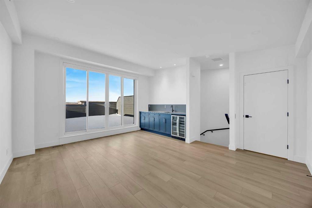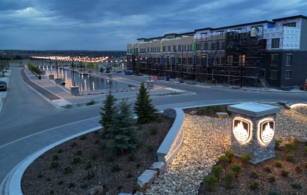 Welcome to 12 Greenwich Heath NW, the Carrara model by Partners, a distinctive four-storey Modern Brownstone directly fronting the canal in the northwest community of Upper Greenwich. Offering a rare combination of architectural presence, refined interiors, and an exceptional waterfront setting, this no-condo-fee residence stands apart within Calgary’s luxury townhome market. The exterior reflects classic brownstone architecture, while the interior has been professionally curated with elevated finish selections throughout. The home features a private four-storey elevator, rooftop patio, and an oversized heated rear-attached double garage, providing comfort, convenience, and long-term versatility for a range of discerning buyers. The entry level begins with an expansive foyer and includes a flexible office or bedroom, a full bathroom, and a mudroom with custom built-ins. Direct access to the heated garage adds everyday practicality. The main living level offers 10’ ceilings and oversized windows that frame canal views and fill the home with natural light. The kitchen is thoughtfully designed with a custom plaster hood fan and an oversized waterfall-edge quartz island. Built-in dining cabinetry adds both function and visual cohesion, while the living room is anchored by a statement fireplace. A rear deck with enclosed storage extends the living space outdoors. A powder room with floating vanity and under-cabinet lighting completes this level. The third floor is dedicated to the private sleeping quarters. The primary suite features a well-appointed ensuite with fully tiled glass shower, freestanding soaker tub, and dual vanities. Two additional bedrooms share a full bathroom finished to the same standard. A laundry room with built-in cabinetry, sink, and quartz countertops adds everyday convenience. The top floor is designed as an elevated entertaining space, complete with a wet bar and beverage fridge. From here, step onto the private rooftop patio with hot tub rough-in and open views toward the canal and surrounding community. Additional features include air conditioning, a full blinds package, and modern mechanical systems designed for comfort and efficiency. Upper Greenwich has been thoughtfully planned to offer a strong sense of character, walkability, and connection to green space. Residents enjoy immediate access to the canal and pathways, proximity to the Bow River pathway system, Calgary Farmers’ Market West, nearby shops and restaurants, sports courts, playgrounds, and WinSport. With convenient access to downtown Calgary and the Rocky Mountains, the location offers a rare balance of urban convenience and natural surroundings. This is a rare opportunity to own a canal-front brownstone offering architectural distinction, refined interiors, and an exceptional setting in one of Calgary’s most distinctive communities.