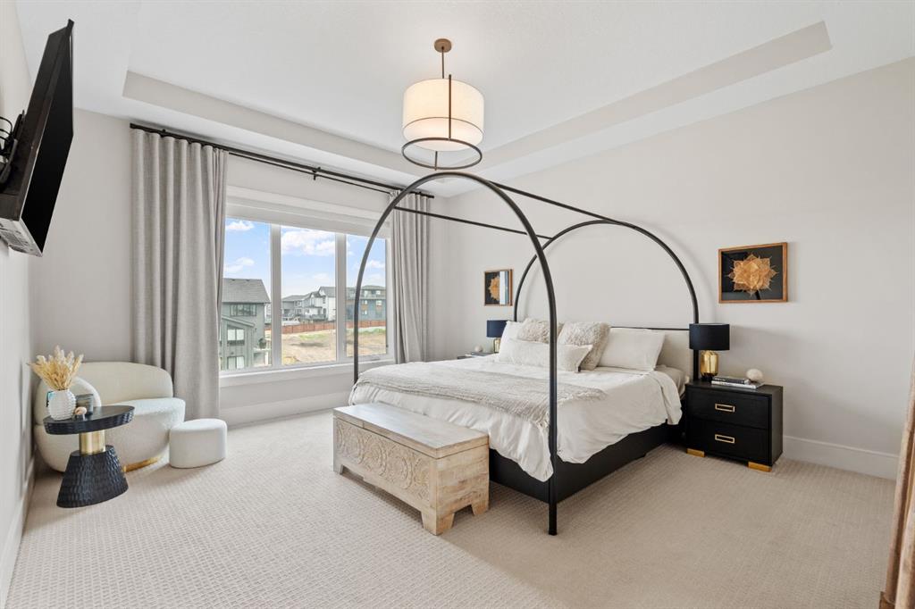 Discover the perfect balance of sophistication, function and lifestyle at 12 Junegrass Terrace in Harmony. This luxury family home is a former Calbridge showhome, featuring high-end finishings, unique architectural details and a highly functional layout designed to meet the needs of a busy family. From the inviting front porch to the walkout basement backing onto Harmony’s walking paths, every detail has been carefully curated. Inside, the home showcases four bedrooms upstairs plus an expansive bonus room, a rare find in Harmony real estate. The primary retreat is a true sanctuary, complete with power blinds, a spa-inspired ensuite that feels like a luxury hotel bathroom and a spacious walk-in closet. The fully finished walkout basement elevates this home beyond expectations. Enjoy a dedicated home gym, a wet bar with wine fridge and a private wine room that is perfect for entertaining. Step outside directly onto Harmony’s pathway system, connecting you to the lake, playgrounds, golf course, and all of Harmony’s award-winning community amenities. Practicality meets luxury with an oversized triple garage, already drywalled with ceilings high enough to accommodate a lift. This home also comes with the option of negotiable furniture, allowing for a move-in-ready opportunity that blends seamlessly with the space. Every corner reveals thoughtful upgrades and high-end finishings, along with unique design elements rarely found in Harmony. Positioned on a quiet, established street, this home offers not just privacy but also the warmth and connection of an already developed portion of the neighbourhood. Living in Harmony means more than just owning a home, it’s about embracing the lifestyle. With lake access, the Mickelson National Golf Club, walking and biking trails, playgrounds and a growing Village Centre with shops and dining, Harmony has become one of Springbank’s most desirable communities near Calgary. If you’ve been searching for a luxury walkout home in Harmony, with a triple garage, four bedrooms upstairs, and a fully developed walkout basement, this is it. This home combines timeless style with everyday ease, a residence that will be admired by guests and treasured by those lucky enough to call it home.