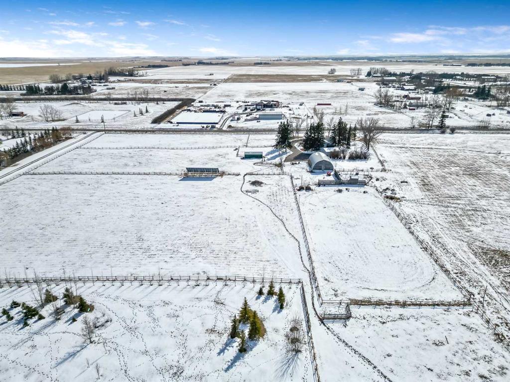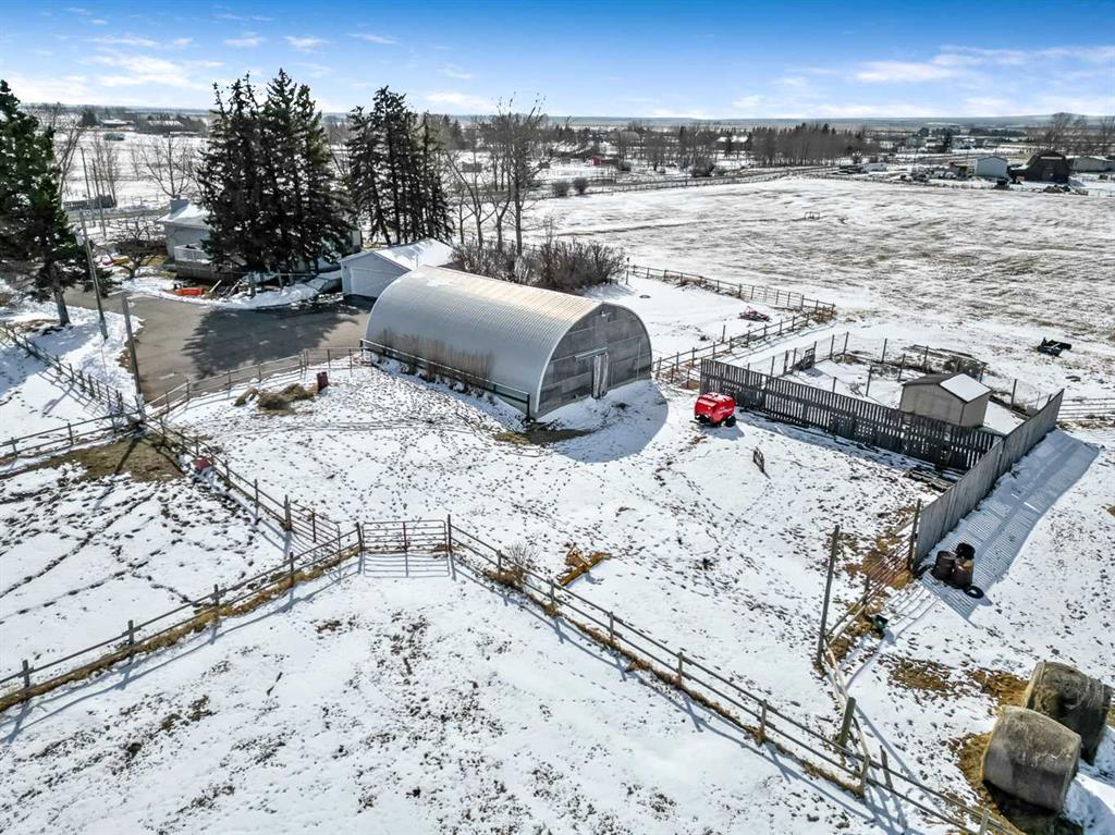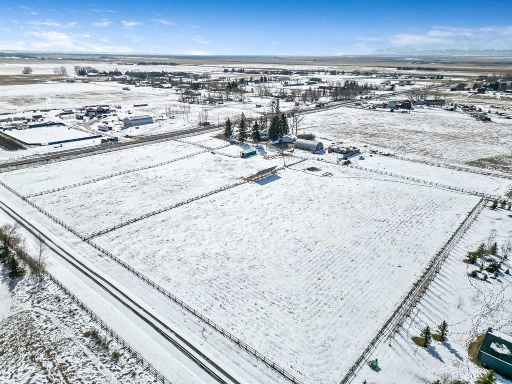 Well its " Spring" and what a family needs is this sweet acreage between Okotoks and High River just off HWY #2!! Paved to your door and Solar power to save you alot of $$ !!! This home and this much acreage is perfect to " grow your own "!! beef, hay, horses, garden!! Several paddocks, waterers, shelters, cross fenced, good gates, out door arena and beautifully treed yard !! This 1432 sq ft home sits very nicely tucked under the trees for privacy with huge deck out to the East to enjoy your morning coffee !! If you feel the heat in the summer, we have A/C!!! Very nice flow to the home with sunken living and family rooms. Owner currently uses the one large room as a dining room which could be also a Family room. Fireplace in the living room and a nice little sitting area facing out the patio doors... Love it !! All new Windows and doors in late 2023, so you are good to go when you add on the SOLAR power and your cheque book will be happy !! Solar was installed in April 2024 and it is a 13.5 Kwh system and they are part of the Solar Club . Both Natural gas and electric total charges (including distribution) have been covered in full by the solar since March of 2025 and they have built up a credit . The shop is awesome for there is room for a few pieces of equipment, there is a couple of work benchs, work area and then a large loft area above for storage or hay. At the back of this 32 X 48 Quonset is the barn and all access out to paddocks on the north side. Great Building !! Detached garage is insulated and ready for heat if you need. Property is very well located for any one to commute but yet live a great country life with a lot of land !! Owners have hayed approx 8.5+- acres and have been very successful with their crops. Self sufficiency is what we are looking for these days, and this one checks a few boxes for sure !!! This one is a gem...