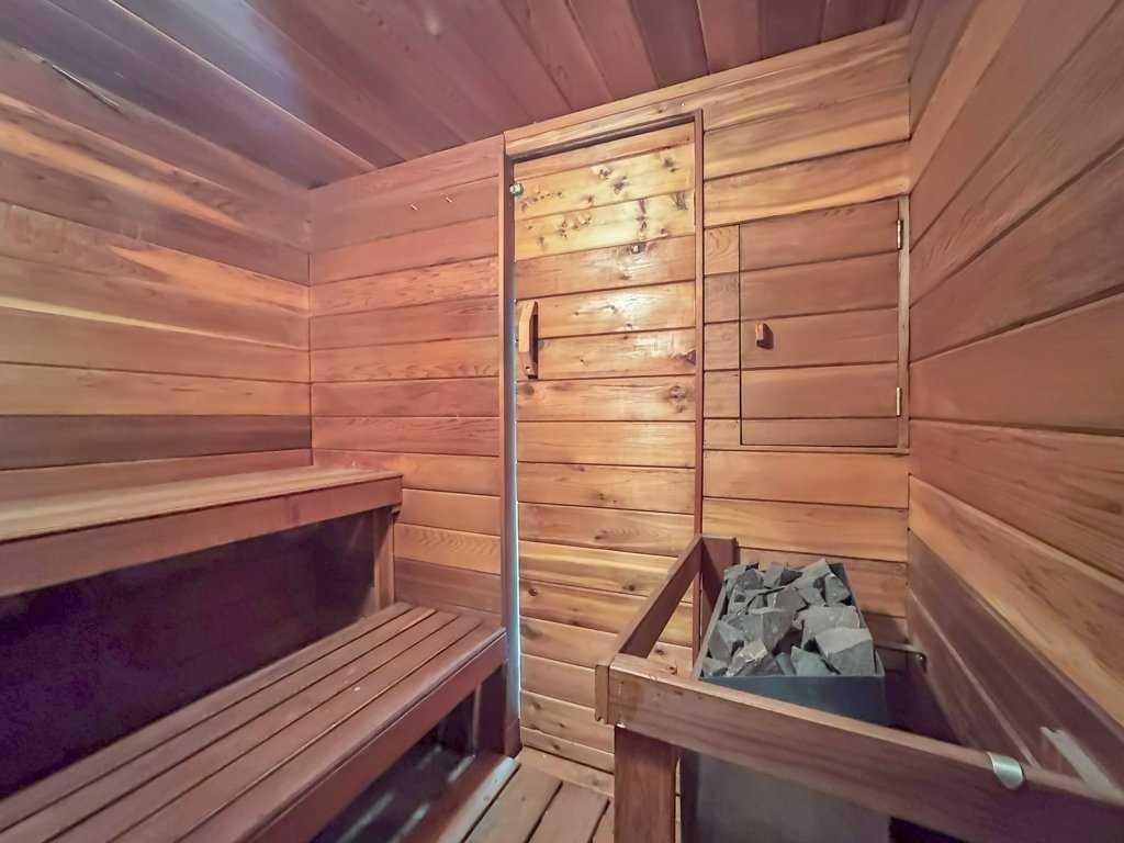 The home features a spacious floor plan with a breezeway connecting the house to the garage, a main floor laundry room with a sink, and a bright, heated sunroom with a full wall of south-facing windows. Classic wood-burning fireplaces on both the main and lower levels add charm and functionality, while a fully functioning sauna and a metal roof contribute to the home’s comfort and durability. Outdoor living is elevated by a beautifully designed outdoor gazebo with a fire pit and evening lighting, creating an ideal setting for entertaining or relaxing under the stars.
