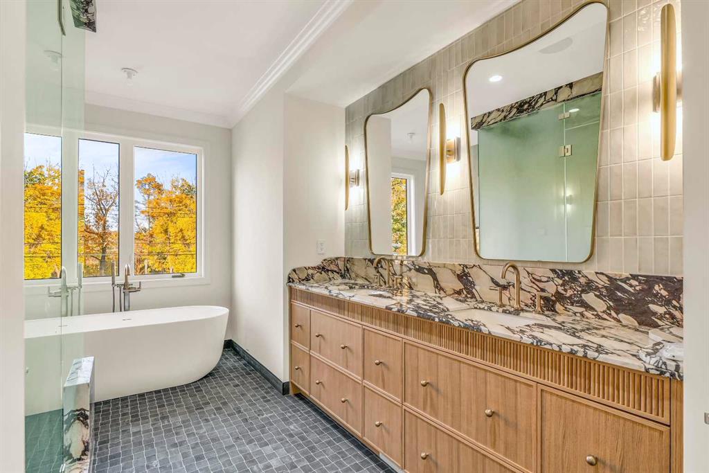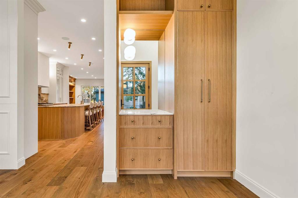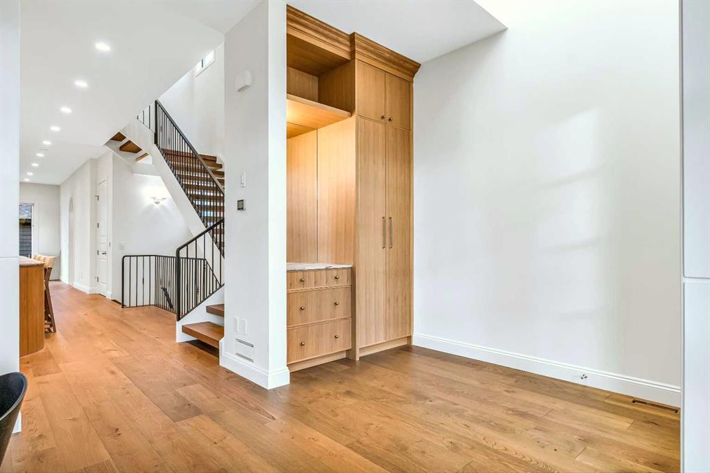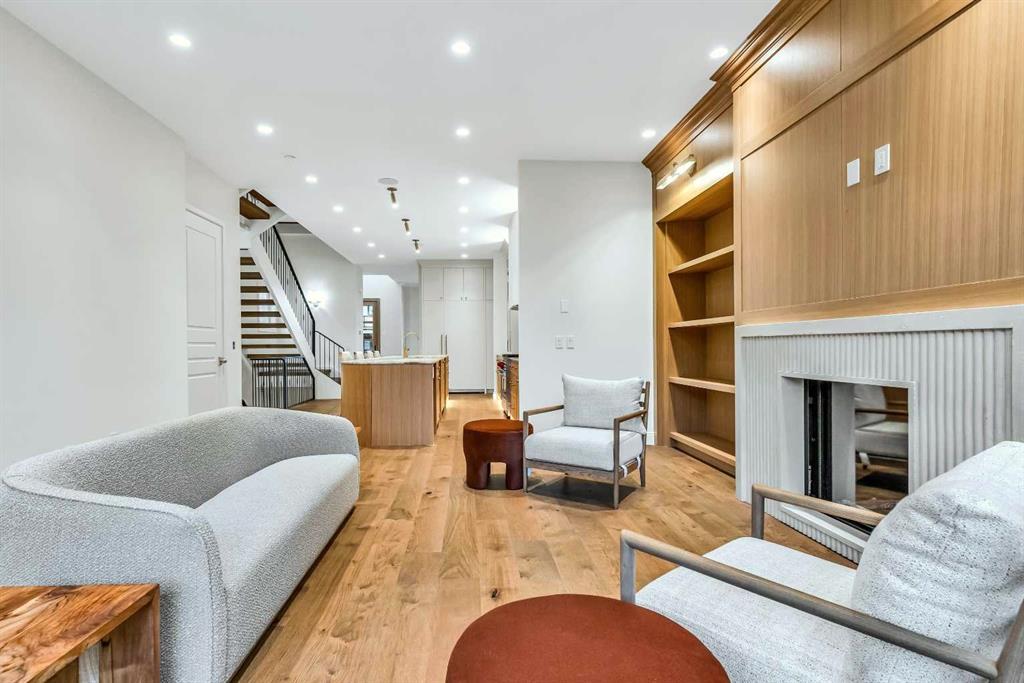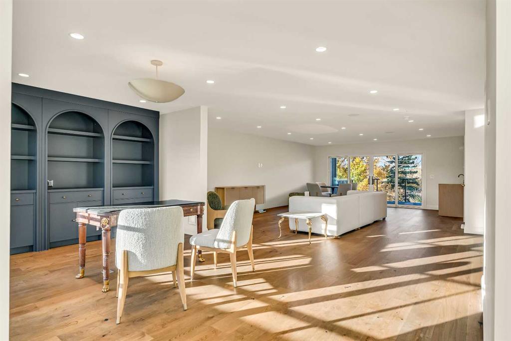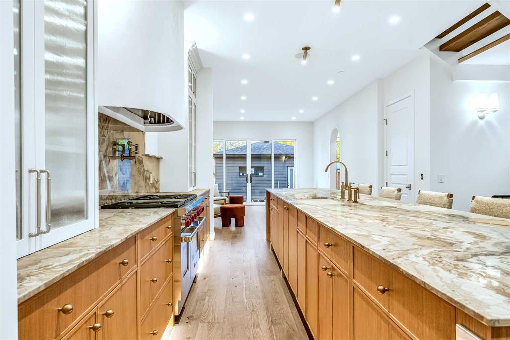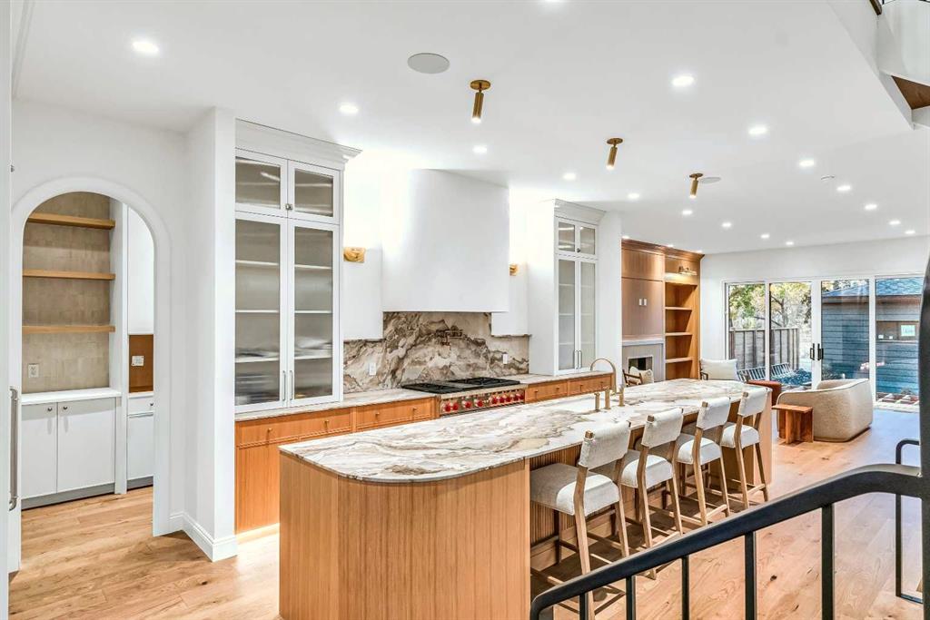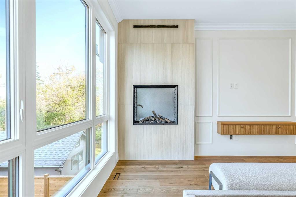 Situated on a 33-ft south-facing lot backing onto the Bow River, this home blends curb appeal with architectural presence — Large Lux windows, full-bed brick, cedar soffits, and an aged concrete patio with built-in planter. It’s equipped with an elevator and Control4 smart home automation, combining sophistication with modern convenience.