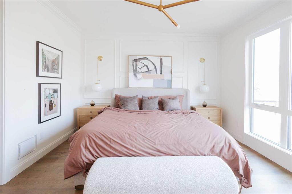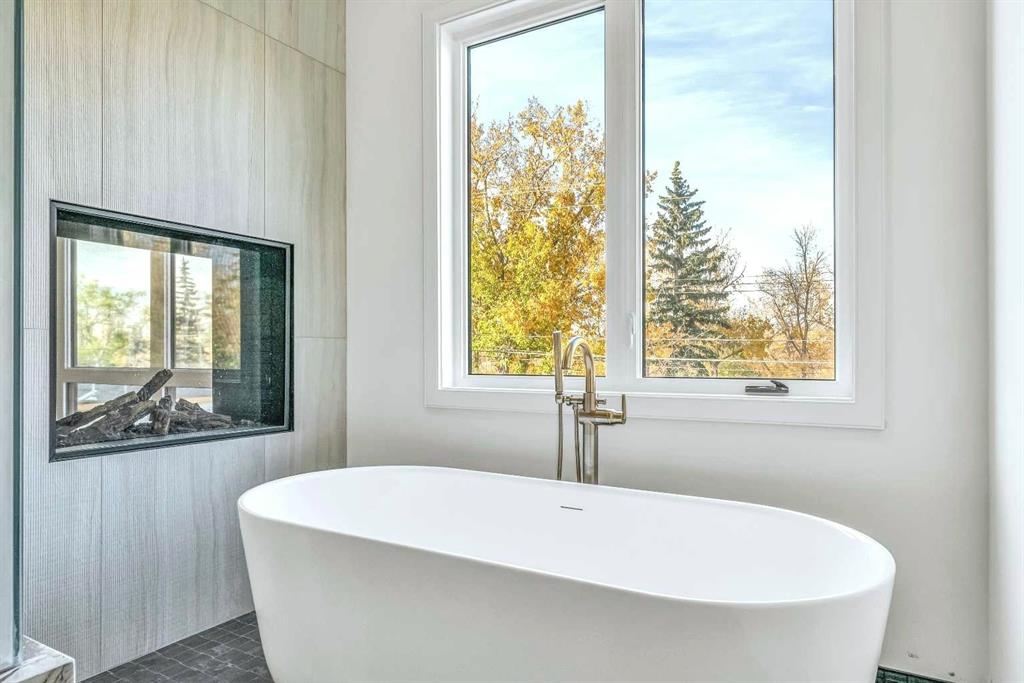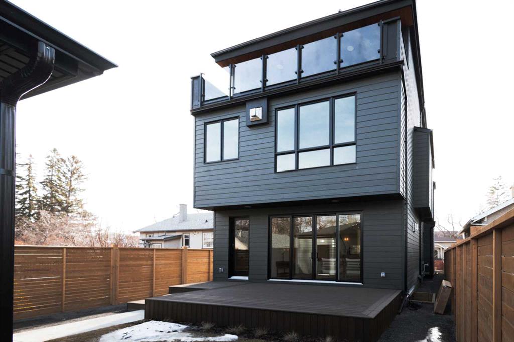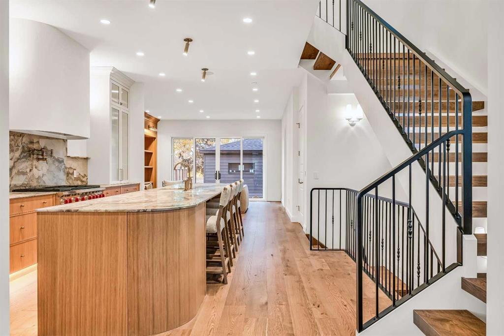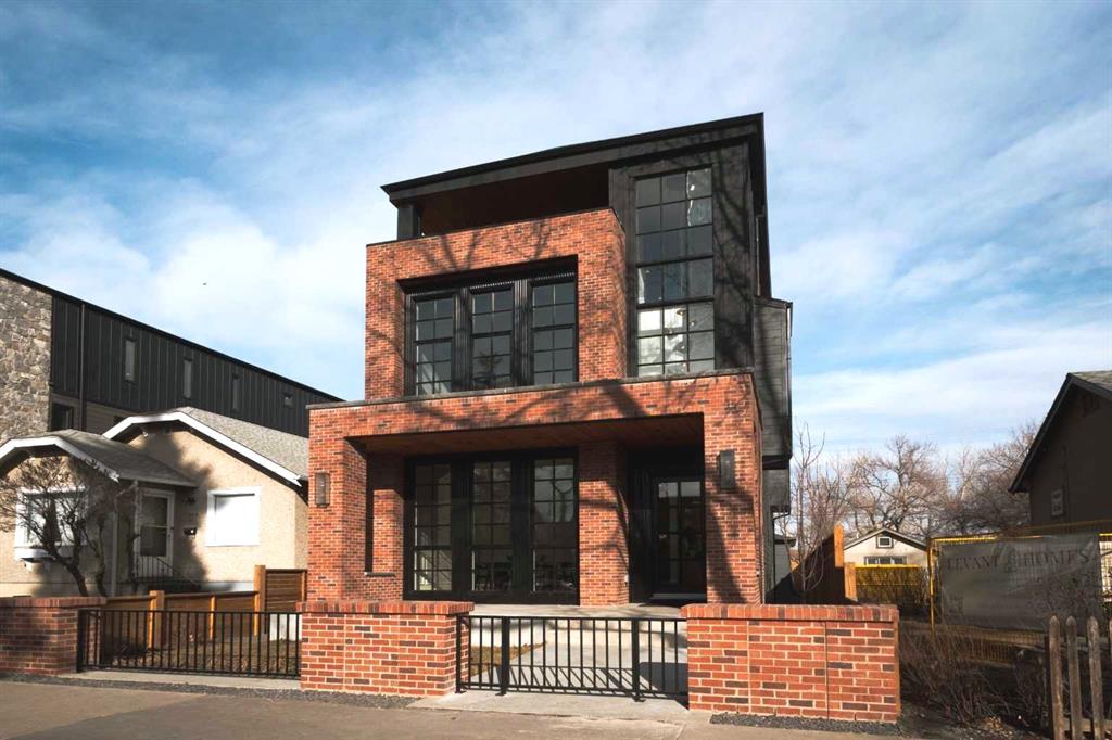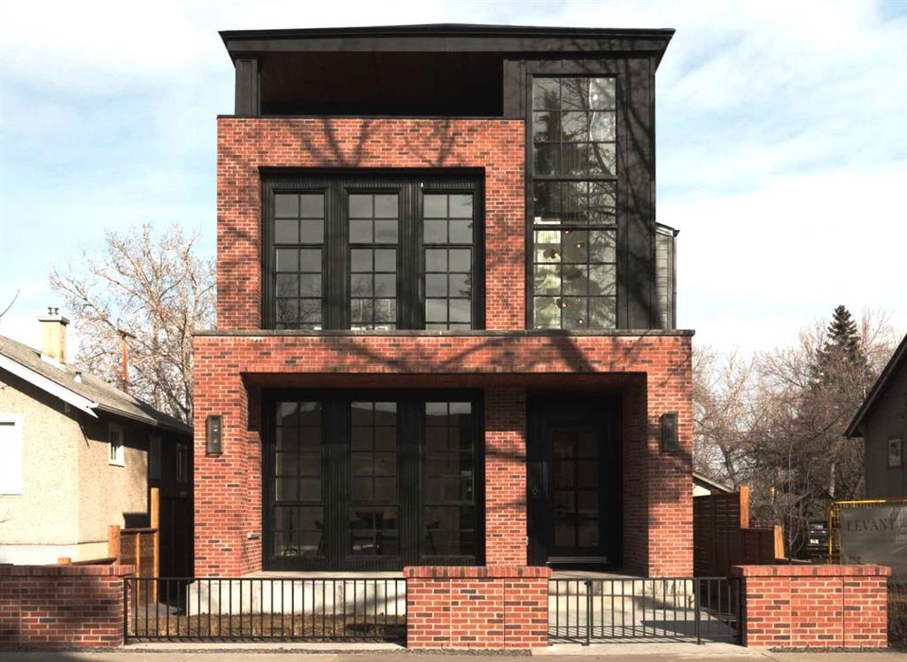 Situated on a 33-ft south-facing lot backing onto the Bow River, this home blends curb appeal with architectural presence — Large Lux windows, full-bed brick, cedar soffits, and an aged concrete patio with built-in planter. It’s equipped with an elevator and Control4 smart home automation, combining sophistication with modern convenience.