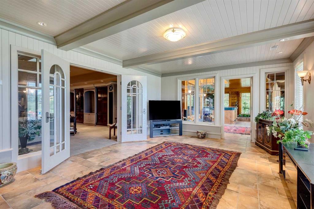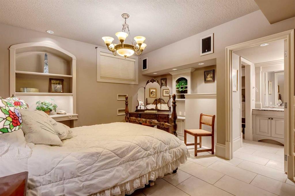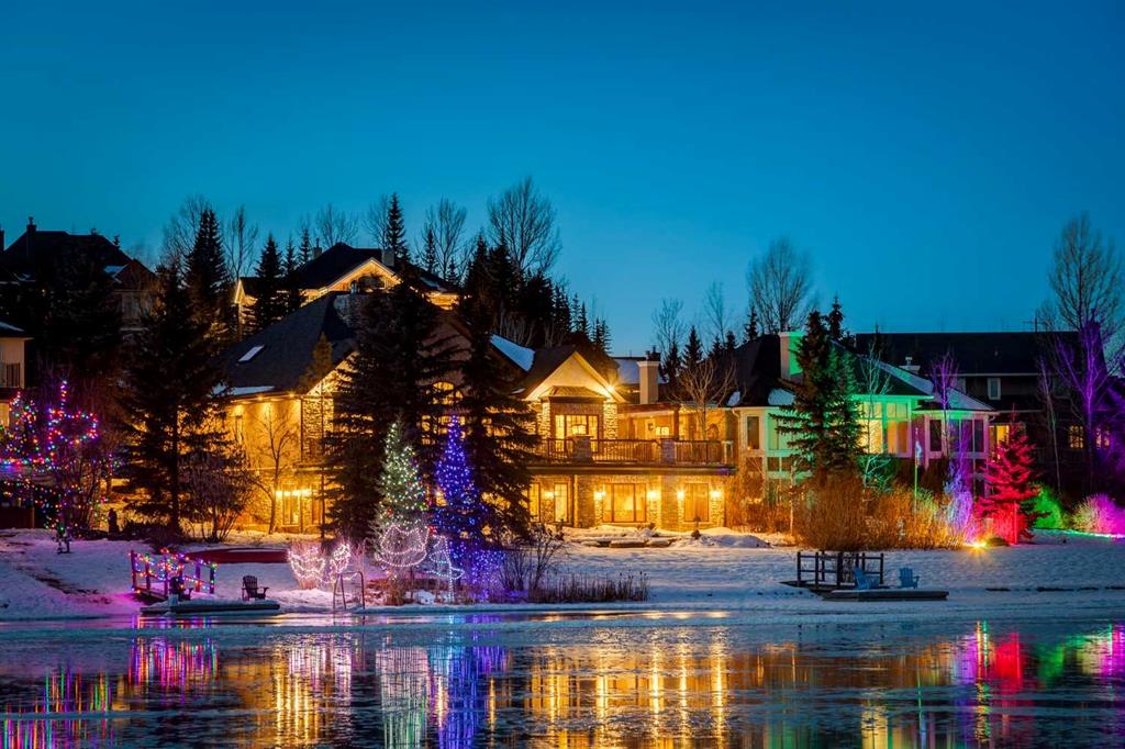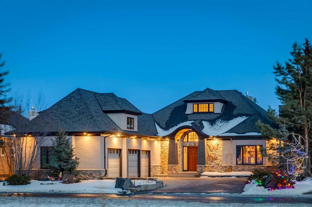 Discover one of the most iconic estate homes offered in prestigious Elbow Valley Estates—an extraordinary custom residence that combines European grandeur, architectural artistry, and exceptional craftsmanship. Perfectly positioned on a private lakefront lot, this executive walkout bungalow offers over 8000 square feet of exquisitely developed living space, designed with precision over years of thoughtful planning and executed by master artisans. From the moment you enter the grand foyer with its coffered and barrel-vaulted ceilings, it’s clear this is a home unlike any other. The main level features a sun-drenched great room with a double-sided fireplace and expansive windows framing unobstructed lake views. The heart of the home is the richly appointed ‘French Manor’ inspired kitchen—equipped for grand-scale entertaining with granite countertops, top-tier appliances including a Sub-Zero refrigerator, gas range with pot filler, two dishwashers, and a walk-in pantry. A cozy breakfast nook with fireplace and access to the expansive upper deck provides the perfect spot for morning coffee overlooking the water (with handi-cap access). An elegant formal dining room with custom glass cabinetry, a fully paneled library/office with fireplace, and a large laundry/sewing/hobby room complete the main level. A reverse osmosis water system is conveniently located in the craft room. The luxurious primary suite is a private sanctuary, featuring a vaulted sleeping area, two-way fireplace, and a spa-inspired circular ensuite with bubbling soaker tub, walk-in shower, dual vanities, and a generous dressing room with built-ins. The suite also offers deck access to enjoy tranquil lake views. A versatile loft functions as a full office or creative workspace, complete with multiple workstations—ideal for today's remote professional or growing family. The lower level is designed for recreation and relaxation, boasting an authentic English-style pub with a full wet bar, games room, media/theatre room, and three additional spacious bedrooms—each with their own private ensuite and walk-in closet. Three solariums enhance the lower level, offering a fully enclosed hot tub retreat, home gym, and peaceful sitting room, all flooded with natural light. This remarkable residence is equipped with countless thoughtful upgrades, including two newer air conditioning units, newer hot water tank and sump pump, new sinks and hardware in the craft room and kitchen . The property also features a recently serviced irrigation system. Designed for effortless living, this home includes hydronic in-floor heating on all levels, a dramatic central staircase, private elevator, and a heated triple garage. Every detail reflects unparalleled quality and meticulous attention throughout. Outdoor living is equally exceptional, with sweeping views of the lake and beautifully landscaped grounds—an entertainer’s dream and a private oasis.