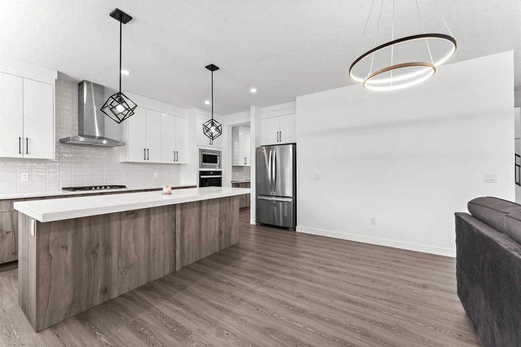OPEN HOUSE SAT DEC 20th. 1pm to 4pm. Welcome Home | Lakeside Community | Over 4300+SQFT | 6-Bedrooms | 5 Full-Bathrooms | Open Floor Plan | Dream Kitchen | Spice Kitchen | Triple car Garage | 2nd floor Laundry | Spacious Yard & Much More | This Extraordinary opportunity to own this newly built home in the new modern community of South Shore, with conveniently quick access to 16 AVE (HWY 1) & 17th AVE. This 2 storey home offers a noteworthy floor plan with extensive upgrades. The main floor features 9’ ceilings, a full bedroom room/Den/Office with a full bathroom, an open concept kitchen with floor to ceiling cabinetry with a Grand kitchen Island, Quartz countertops through out the home, Upgraded stainless steel appliances, Spice Kitchen & a pantry, a spacious formal living room & Family room with a Fire place & Dining over looking the north facing yard and Second floor boasts to Bonus room, Master bedroom with a large 5 pc ensuite & a Walk-in closet, 3 Additional bedrooms with an additional 4pc bathroom, while two additional bedrooms share a Jack and Jill bathroom, laundry room. Downstairs-(basement) you will find Legal Suite with its separate entrance along with a large Rec/Family room, private capacious kitchen, 2 good sized bedrooms, 4pc Bath. Book a showing today to view this lovely home to get the full experience of all it has to offer or visit the 3D Tour!!