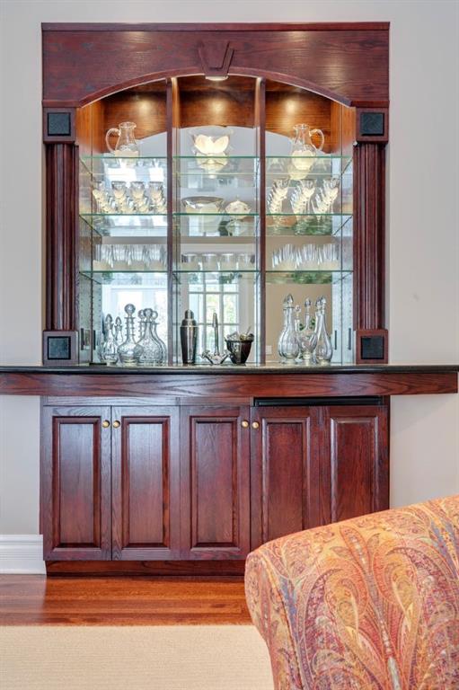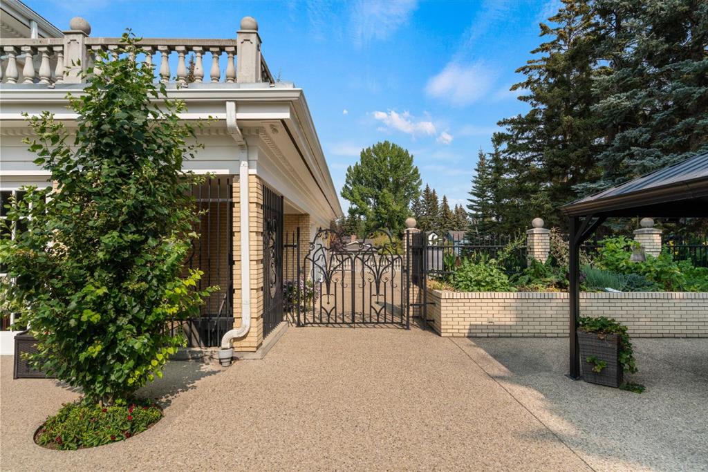 Timeless in design and uncompromising in craftsmanship, this bespoke neoclassical estate ranks among the city's most distinguished residences. Nestled in a fully treed, meticulously landscaped setting ensuring complete privacy, it delivers an unforgettable first impression. The brick façade features columns, concrete balustrades, and wrought-iron gates to assert its stately presence. A gated, heated driveway leads to a triple garage and an exceptional underground parkade accommodating eight more vehicles, complete with car wash and workshop. Inside, a dramatic curved staircase anchors the grand foyer, introducing the artistry throughout. The main floor excels in entertaining, ideal for galas, business dinners, or family celebrations with generous gathering spaces, a cloak room, two elegant powder rooms, expansive corridors, and multiple French doors opening to terraces and gardens. A refined formal living room with limestone-trimmed fireplace, display cabinet and graceful chandelier has ample room for a grand piano. The spacious dining room with fireplace and butler’s pantry is ready for formal dining. An inviting library boasts wood bookcases and a lounge for quiet reflection. The family room provides multiple sitting areas, a wet bar, and access to the south-facing circular sunroom overlooking the private grounds. Adjacent is a classic kitchen with commercial-grade appliances including a six-burner cooktop, double wall ovens, and warming drawers. A casual dining area suits morning coffee or weeknight meals while the walk-in pantry contains an extra freezer and water dispenser. Upstairs, the primary suite is a private sanctuary with a serene sitting room and fireplace, plus doors out to the south-facing rooftop patio and multiple walk-in closets. A marble clad ensuite indulges with dual vanities, multi-head shower, and generous tub. The second and third bedrooms each have ensuites, while the third-floor guest suite/office features balcony views of the reservoir and mountains, plus a three-piece bath. Downstairs, the lower level focuses on leisure: a home theatre with tiered seating, a snack bar with candy display, a Tuscan-inspired wine cellar with barrel-vaulted ceiling and wrought-iron gates, gym/recreation room, and steam room. Private staff quarters include a secondary kitchen, fifth bedroom/hobby room, laundry with double washer/dryers, and separate entry. Located in a prestigious, tightly held enclave backing protected parkland, this property ensures privacy and security. Created for the connoisseur of living well, this home seamlessly blends spaces for health, leisure and passion. Every detail, from the classical proportions to the enduring materials reflects a home crafted for how discerning families truly live: entertaining beautifully, living comfortably, and enjoying privacy without compromise. A residence that embodies grace, strength and refined living, an iconic estate in every sense.