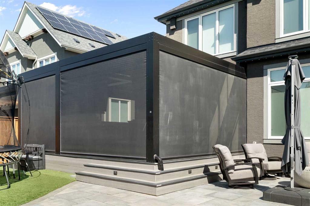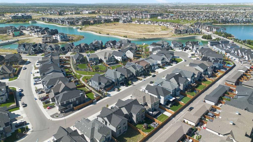 Welcome to a rare opportunity to own a truly ONE-OF-A-KIND luxury residence in Calgary’s premier lake community of Mahogany. Tucked away on a quiet cul-de-sac and backing directly onto green space with access to a semi-private dock, this exceptional home delivers an unparalleled blend of privacy, convenience, and resort-style living with quick in-and-out neighbourhood access. Set on a west-facing lot, the backyard is nothing short of spectacular — a private, resort-inspired oasis designed for both everyday enjoyment and unforgettable entertaining. A custom-built composite deck is crowned with a Suncoast retractable roof and screens, allowing you to control sunlight, shade, and privacy with ease. Outdoor living is elevated with a Hot Springs salt-water hot tub, a fully equipped outdoor kitchen featuring a BBQ and Blackstone grill, and a separate flagstone patio centered around a built-in round fire bowl. Low-maintenance artificial turf and generous gathering spaces complete a backyard that truly stands alone in design and functionality. Inside, the main level is anchored by a show-stopping chef’s kitchen with a massive granite island, premium Miele appliances, and a walk-in pantry with extensive custom cabinetry and shelving. The open-concept living and dining areas flow effortlessly, highlighted by a striking stone gas fireplace and expansive windows that flood the home with natural light. A custom mudroom with built-in benches and storage, along with a perfectly placed home office, complete the main floor with style and practicality. Upstairs, the vaulted-ceiling bonus room with faux wood beams creates instant visual impact and a welcoming family retreat. All three bedrooms are generously sized, complemented by convenient upper-level laundry. The primary suite is a sanctuary, featuring a large walk-in closet with built-ins and a spa-inspired ensuite showcasing dual vanities, a glass-enclosed shower, in-floor heat, and a luxurious soaker tub — your own private escape. The fully developed basement extends the home’s versatility with a recreation room complete with screen and projector, full wet bar, a 4th bedroom, and a full bathroom — ideal for entertaining or hosting guests. The attention to detail continues in the triple attached garage, equipped with a Reznor heater, ProSlat wall storage system, and an epoxy-finished floor. Additional upgrades include central AC, a full security system with upgraded cameras, Lutron lighting with full home automation, Hunter Douglas automated blinds, gemstone exterior lighting, irrigation, a front-yard bubbler rock, and a complete home sound system. Mahogany is Calgary’s premier lake community, where residents enjoy the city’s largest freshwater lake, sandy beaches, and a stunning 74-acre natural wetland. From sunrise paddleboarding to evening strolls along 22 km of scenic pathways, year-round recreation, and family-friendly amenities, the lifestyle here is second to none. This is more than a home — it’s a lifestyle!
