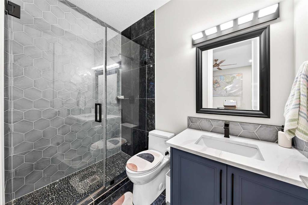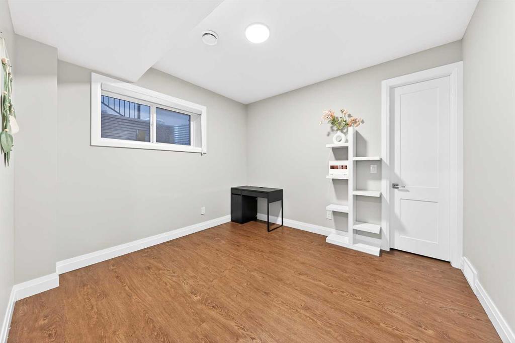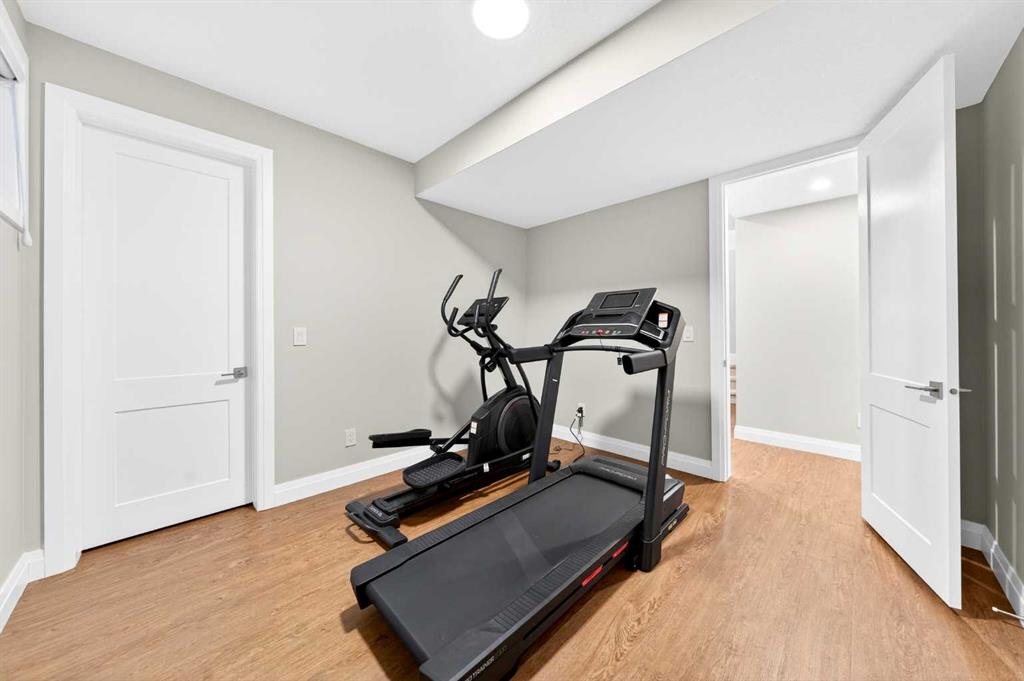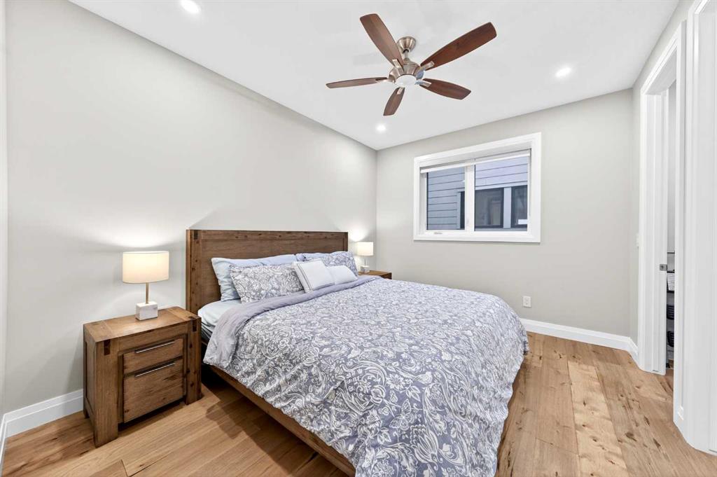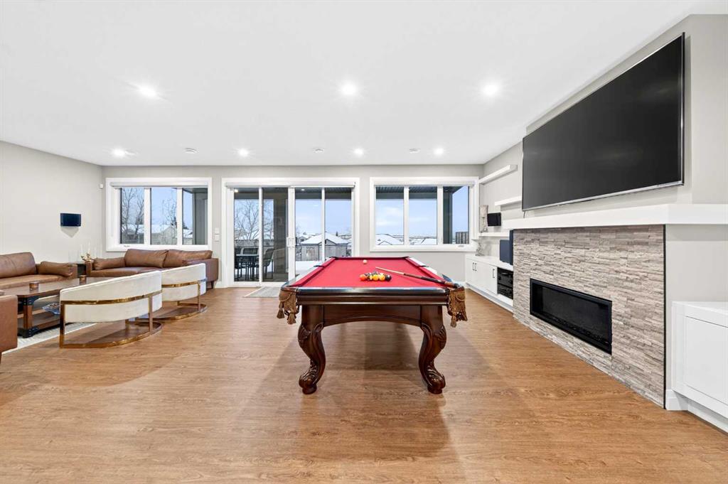 The fully finished walkout basement features 9-ft ceilings and luxury vinyl plank flooring throughout, creating a bright and upscale feel. It offers a large Recreation Room with a gas fireplace and a custom bar—perfect for entertaining—along with two additional bedrooms and a 3-piece bath for guests or family. Double sliding patio doors from the Recreation Room open to a full-size covered patio, seamlessly extending to a fully landscaped backyard with ample space for outdoor gatherings and a gate that provides direct access to the adjacent walking path.