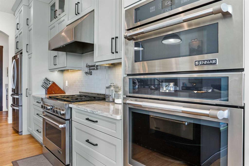 at home. The chef’s kitchen is a true showpiece, featuring DAUTER STONE GRANITE COUNTERTOPS, high-end JENN-AIR APPLIANCES, a massive