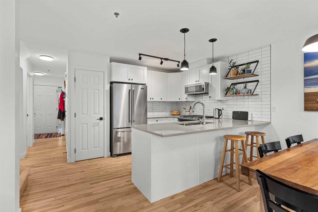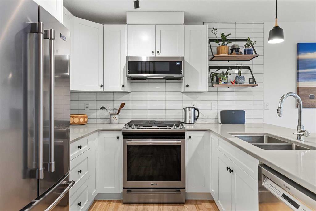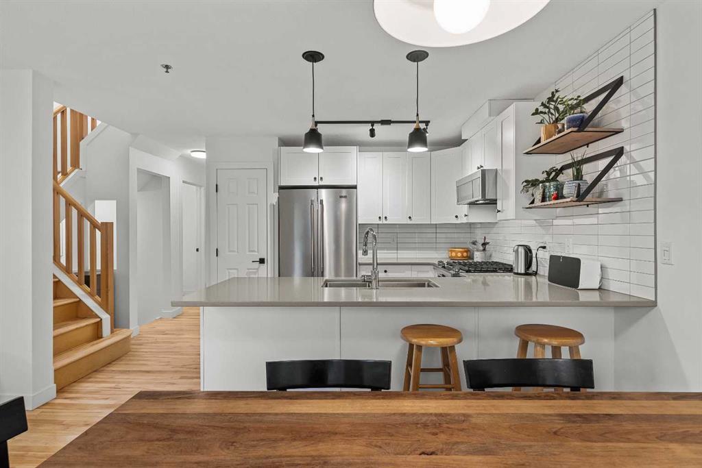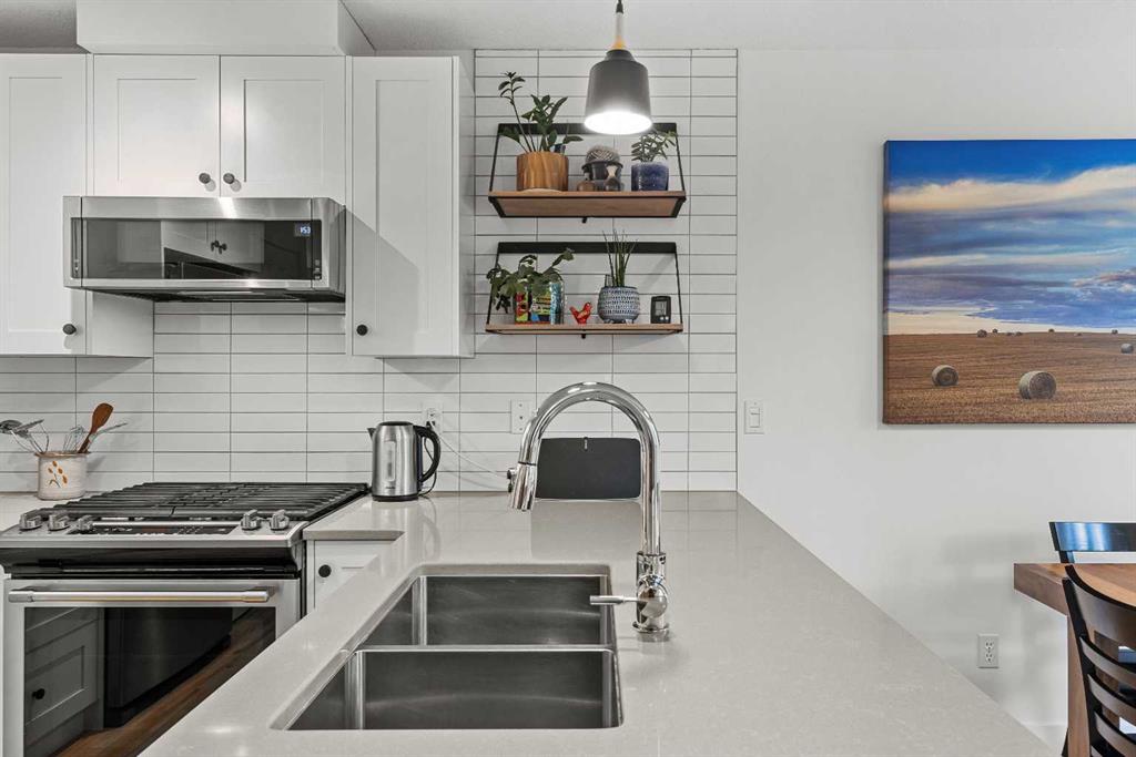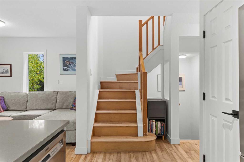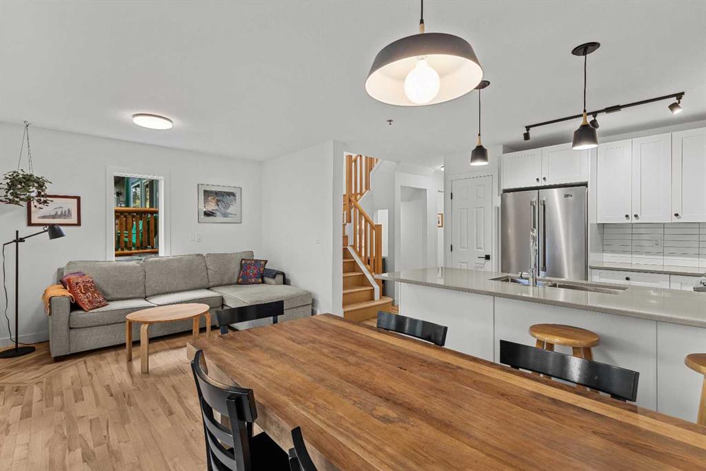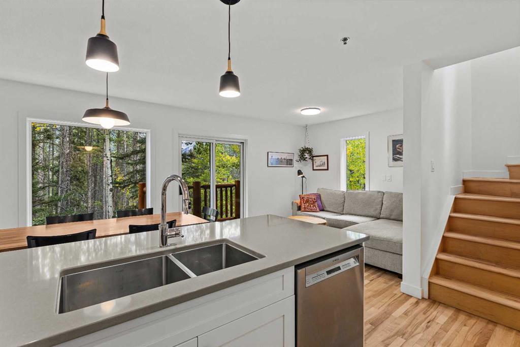 With a total of 1654 sqft developed space including a walk-out lower level, this stunningly presented 3 bedroom, 4 bathroom, end-unit townhouse in the sought-after neighborhood of Rundleview offers an incredible package. Stunningly presented 3 bedroom, 4 bathroom, end-unit townhouse in the sought-after neighborhood of Rundleview. You’ll love the fully renovated kitchen, solid maple hardwood flooring through the living level and bedrooms, and the huge walk-out additional living area on the lower level with brand new carpet. Numerous balconies and patio allow you to sit amongst the surrounding aspen and feel like you’re bathed in nature. This end unit benefits from additional windows and natural light – and of course that treed view that brings a sense of calm indoors. An enviable location backing on to protected Environment District lands and close to Quarry Lake, Nordic Centre and easy access to Kananaskis Country. Single attached garage, driveway parking, plus visitor parking onsite. Owners love these townhomes and there has not been a listing here for over 2 years – don’t wait to schedule your viewing! (Please note: Short term rentals are not permitted at this property).