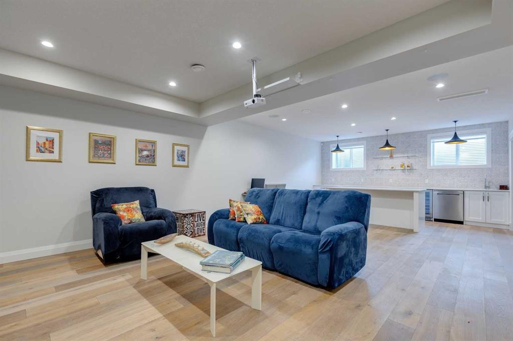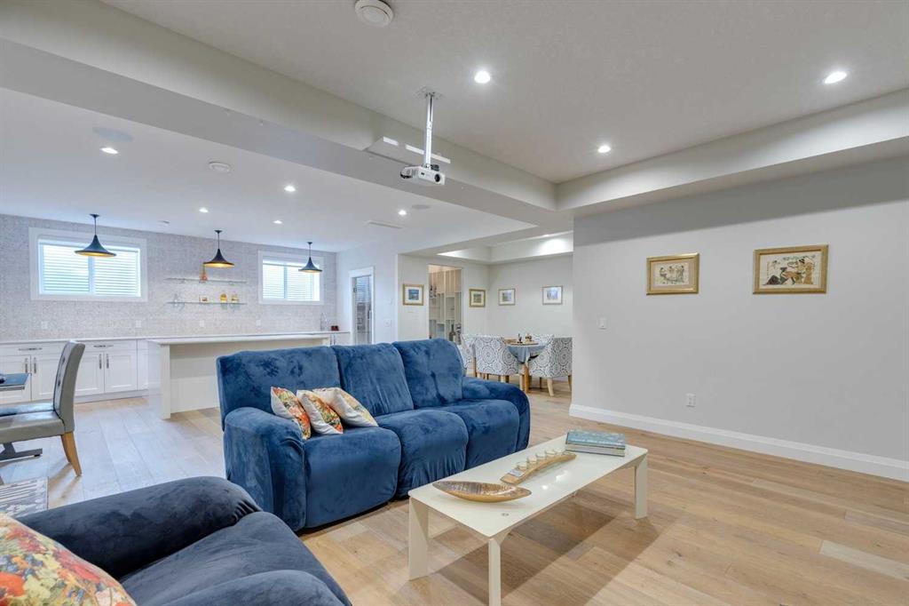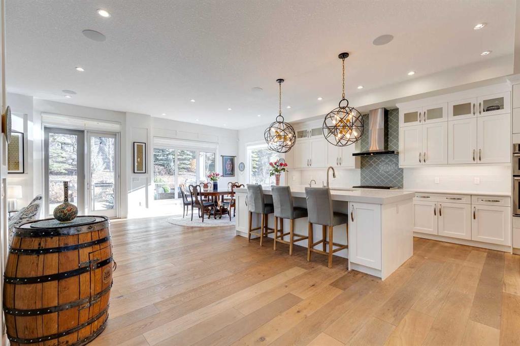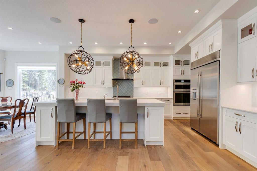Watermark at Bearspaw - 130 Hillside Terrace: Welcome to this fully developed estate property built by Prominent Homes in the coveted community of Watermark at Bearspaw. Located on a quiet street, this stunning home offers nearly 5,000 sqft of total living space with 5 bedrooms, 4.5 bathrooms, and a heated attached triple-car garage. The bright, open main floor features hardwood throughout and a spacious front entry. The gourmet central kitchen includes quartz countertops, a large island with seating for three, high-end JennAir stainless steel appliances - a gas cooktop, chimney hood fan, dual dishwashers, wall oven, microwave oven, and built-in refrigerator - plus a Silhouette beverage fridge. The separate spice kitchen offers additional prep space with built-in cabinets, a gas cooktop, and a hood fan. Designed for both everyday living and entertaining, the main floor has a generous breakfast nook with space for a large table, a great room with built-ins and a gas fireplace, and a front flex room with barn doors - ideal as an office or sitting room. A 2-pc powder room and well-organized mudroom with a bench, hooks, and plenty of storage complete the level. Upstairs, the southwest-facing primary suite features a large walk-in closet with custom built-ins and a luxurious 5-pc spa ensuite with heated floors, a tiled glass shower, a freestanding soaker tub, dual sinks, and a private water closet. Three additional bedrooms, each with walk-in closets, including one with a private 4-pc ensuite - share the upper level. You will also find a central bonus room with skylight, a 5-pc main bath with double sinks, and a convenient laundry room with sink, folding counter, and linen storage. The fully developed lower level is perfect for hosting, offering a wet bar and island, dishwasher, and beverage fridge, plus a wine room, spacious family room with built-ins, recreation area, a 4-pc main bathroom, and a fifth bedroom with a walk-in closet. Additional features of this home include an alarm system, 2 A/C units, 2 furnaces, speakers throughout the home, solar panels, 220 in the garage for EV charging, and an underground sprinkler system. Relax on the front veranda while the kids play, or escape to the beautifully landscaped backyard with a covered deck. Watermark at Bearspaw is an award-winning luxury estate community featuring a central plaza with a pavilion, BBQs, fire pit, NBA-sized basketball court, outdoor kitchen, and more. Residents enjoy paved pathways winding through ponds, streams, and parkland. Ideally located just minutes from Calgary’s city limits with quick access to Crowchild Trail, LRT/transit, schools, parks, recreation, and the mountains. This exceptional home is perfect for multi-generational or extended families. Call for more information!