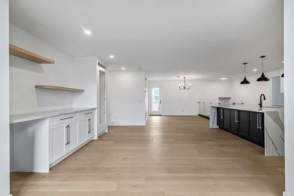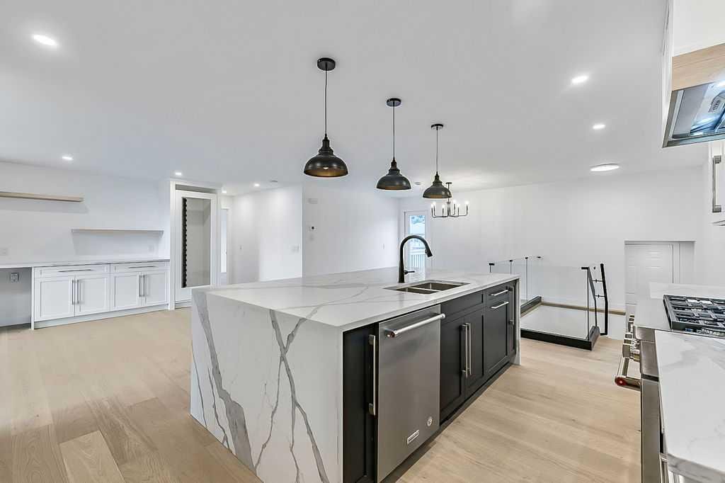 Welcome to an exclusive bungalow nestled in the prestigious community of Lake Bonavista. Boasting over 3400 SQ FT of living space and a front AND back double garage, this luxurious residence is within walking distance to the lake, local schools, shopping and Fish Creek Park nearby. As you enter, soaring vaulted ceilings greet you and run through the living room with gorgeous fireplace to the contemporary loft space. The custom kitchen boasts real wood cabinetry, dovetail drawers, premium quartz counters, a massive island and is flanked by a flex space and a butler pantry. A glass-enclosed wine feature and dinette cabinetry sit just off the dining room which opens out to a bbq area and backyard. The main bathroom exudes elegance, with a custom dual vanity, in-floor heated marble tile, and sits perfectly beside two bedrooms that boast a unique loft space that could be developed to multiple future uses. The primary suite offers a spacious layout, a large walk-in closet, and a luxurious ensuite with a freestanding soaker tub, marble tile, custom double vanity, and a dual shower framed by an exotic backlit illuminated quartz. The basement is an entertainer’s dream with a living room, wet bar, bathroom with walk-in shower, flex room, and two additional bedrooms. Meticulously renovated down to the studs, this home features upgraded insulation, new electrical and plumbing, smart switches, engineered hardwood, and all new doors, trim, and paint. No expense has been spared in creating this luxurious masterpiece, don't miss your chance to make it yours!