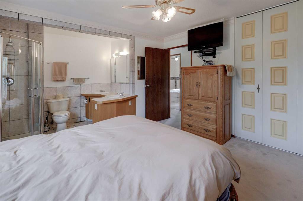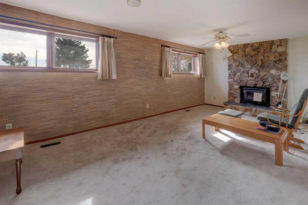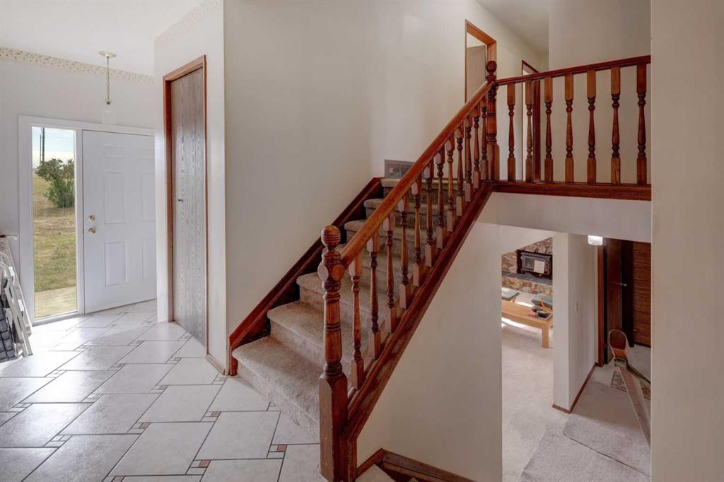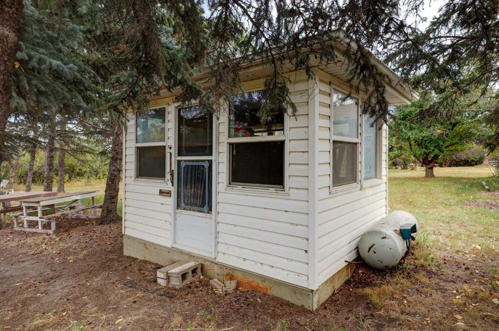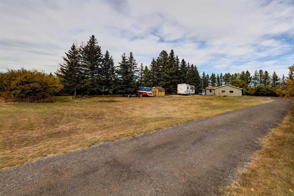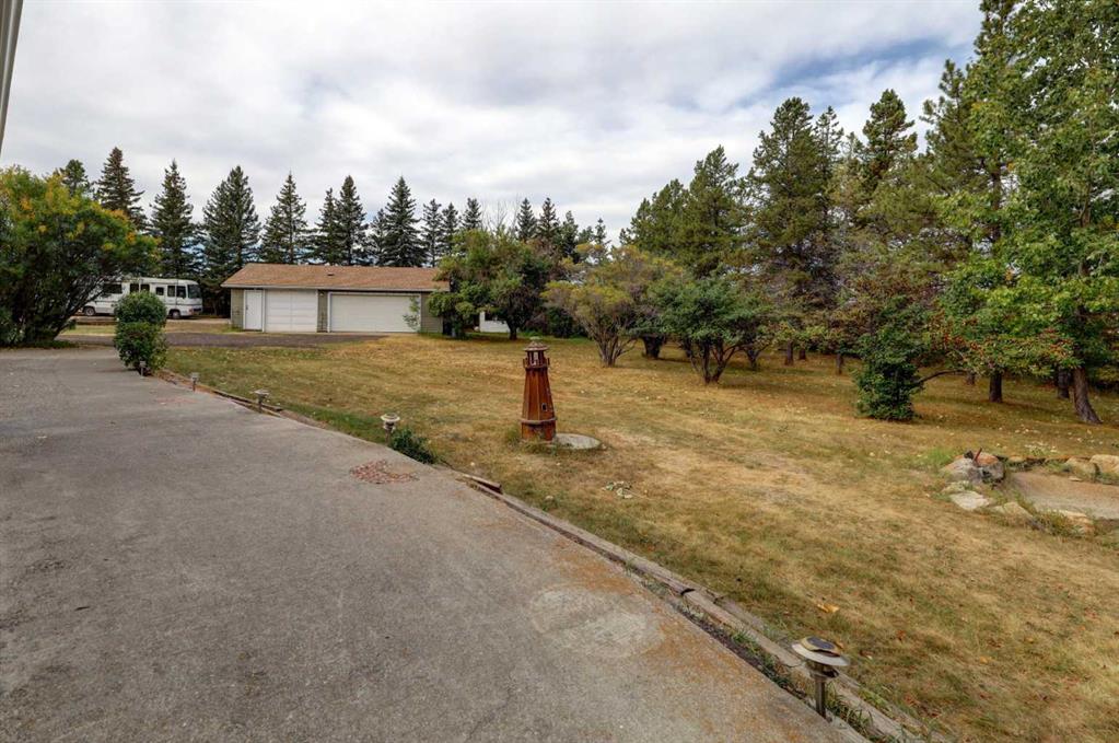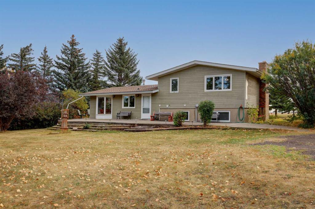 OPEN HOUSE SATURDAY NOVEMBER 1ST FROM 1-3PM. Experience the best of country living just 5 minutes from town! Tucked away on 4 private, beautifully treed acres, this charming 4-level split is the perfect retreat for those craving space, privacy, and a touch of nature. Step inside and you’re welcomed by a bright open-concept kitchen and dining area that flows into the living room, where large windows frame peaceful country views. Upstairs you’ll find 3 comfortable bedrooms and 2 full bathrooms, including a relaxing primary suite with its own 4-piece ensuite. The lower level offers cozy family living with a wood-burning stove, a 4th bedroom, laundry, and an additional bathroom. Head down one more level to the basement and you’ll discover a games room (yes—the pool table stays!), bar area, plus plenty of storage and a cold room for all your extras. Recent updates mean peace of mind: new roof (2023), newer composite siding, newer septic tank (approx. 5 years), hot water tank and some new doors/windows (2025). But the real treasure is outside—whether you’re tinkering in the heated triple garage and shop, relaxing by the waterfall pond, or enjoying evenings in the bunkhouse with its own propane stove and power. There’s room for animals with a paddock and shelter, plenty of sheds for storage, RV parking, and rows of fruit trees that add both privacy and charm. This isn’t just a property—it’s a lifestyle. A place where you can breathe, unwind, and enjoy the tranquility of acreage living, all while being just minutes from Airdrie.