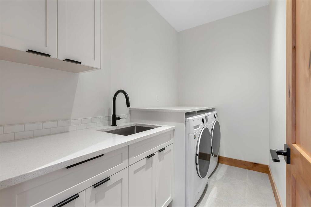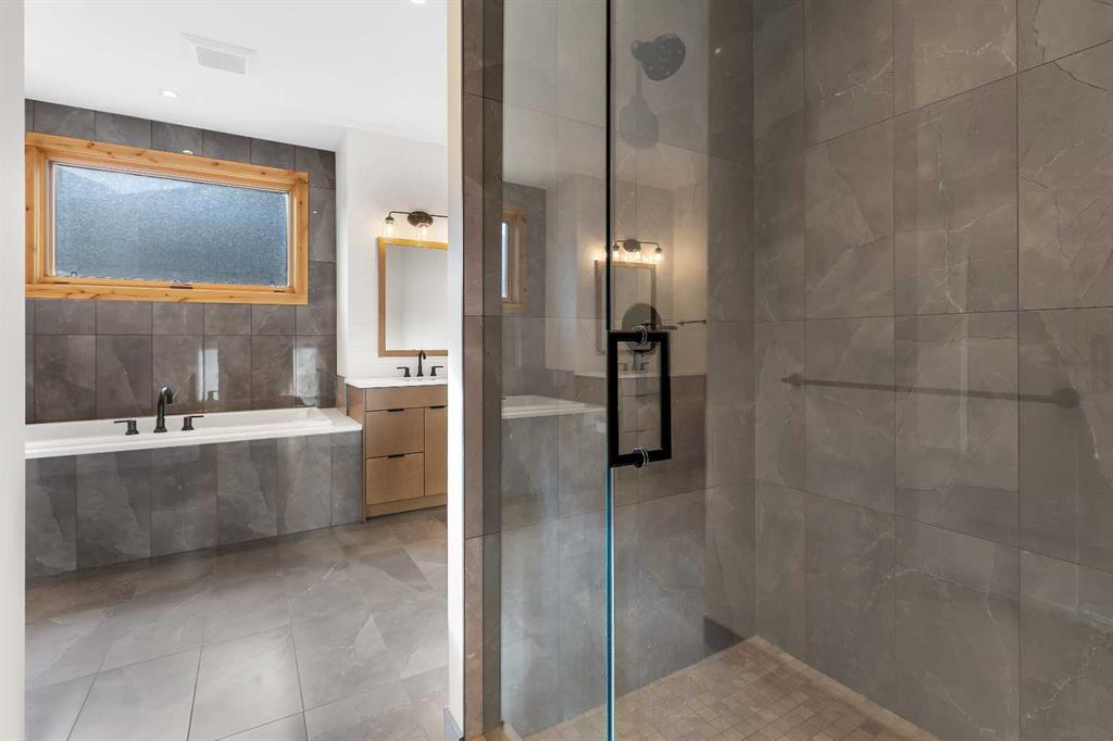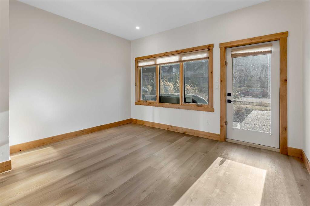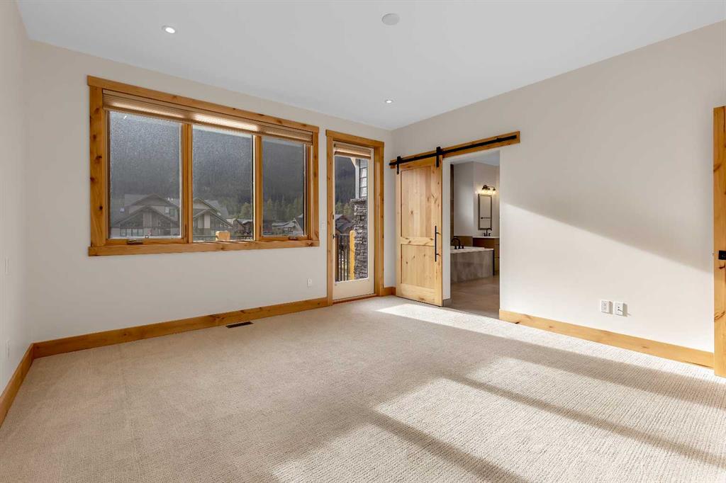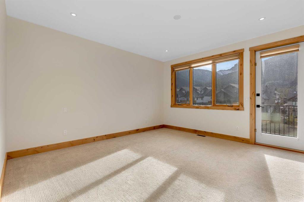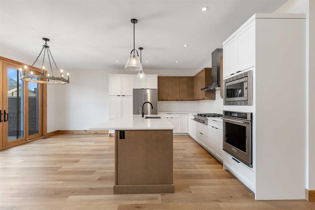 Step inside over 3,000 sq. ft. of total living space featuring an open-concept main living area with oversized windows that flood the interior with natural light and frame the mountain vistas. Thoughtfully planned for modern living, the home showcases high end finishes, clean lines, and functional design that elevates everyday living. The main floor welcomes you with a wide foyer featuring a barn-door-style closet crafted from premium materials, leading to a spacious mudroom and an oversized, fully insulated double garage with electrical rough-in for EV charging. This level also offers two generously sized bedrooms, one with its own private balcony and walk-in closet complete with a premium closet system, a functional 5-piece bathroom, and a laundry room with sink. Upstairs, vaulted ceilings and a stone fireplace greet you in the expansive living and dining area, flooded with natural light from huge windows and opening onto a full-size balcony with breathtaking mountain views. The gourmet kitchen is equipped with premium built-in appliances, dual stone cabinets, Silgranite sinks, and custom cabinetry. The upper-floor primary suite is a luxurious retreat, featuring its own balcony with sweeping mountain vistas, a 5-piece ensuite with dual sinks, an oversized tub, a standing shower, and a walk-in closet with custom wood cabinetry. An additional 2-piece bathroom and extra storage closet complete this level. The fully finished walkout basement is a legal 2-bedroom suite with a 4-piece bath, functional kitchen, dining, and living areas, plus abundant storage, all opening to a fully landscaped backyard — perfect for rental income, guests, or extended family. Every detail of this residence combines luxury, functionality, and the unparalleled Canmore mountain lifestyle. Ideally located just 10 minutes from all schools, elementary, junior high, and high school, as well as Canmore General Hospital, Three Sisters Park, Creek Trail Golf Course, soccer fields, and the Bow River Campground, this home offers unparalleled convenience alongside the breathtaking Bow Valley lifestyle.