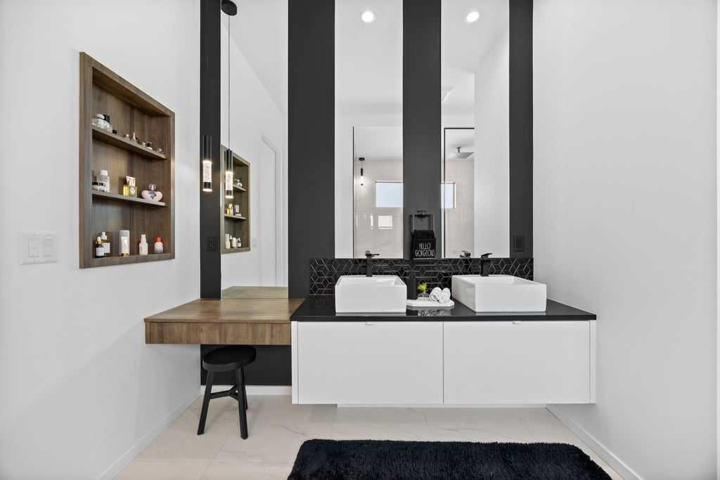Inside, every detail reflects thoughtful craftsmanship. The gourmet kitchen features sleek custom cabinetry, quartz countertops, and premium built-in appliances, all designed to inspire culinary creativity. High ceilings and oversized windows fill the home with natural light, creating an airy, inviting atmosphere.