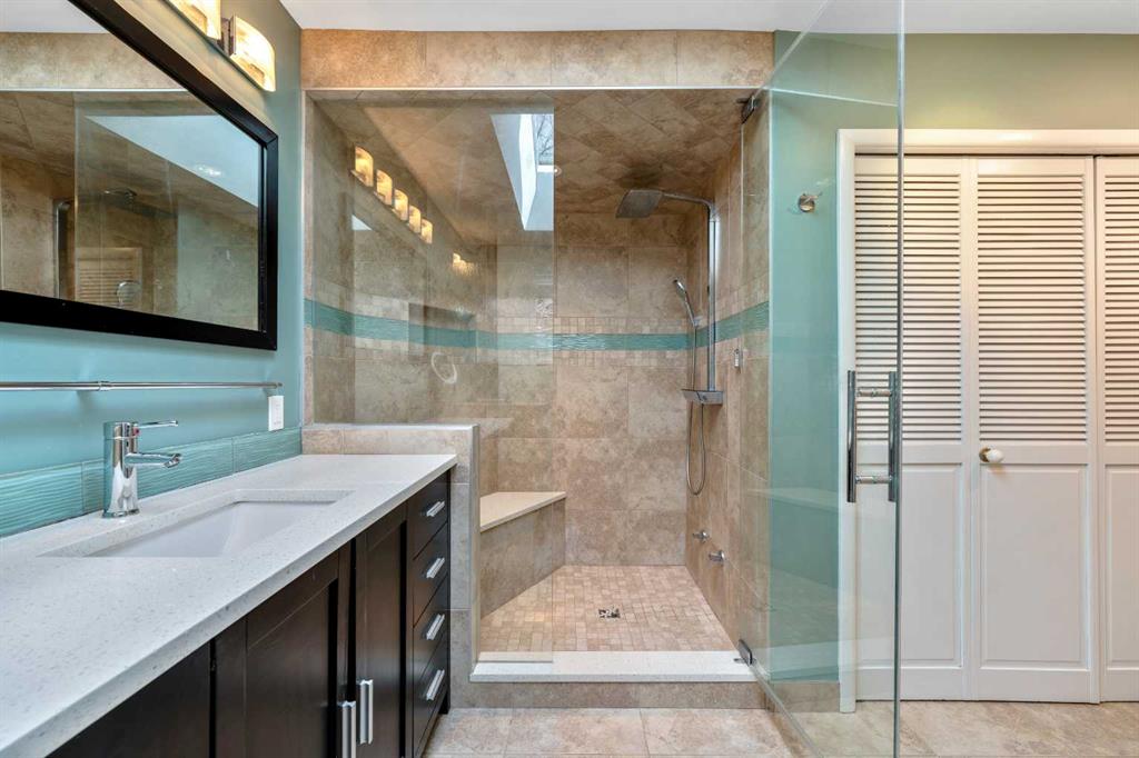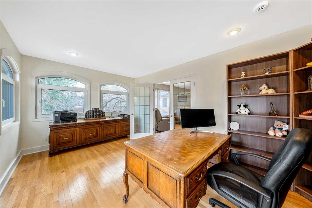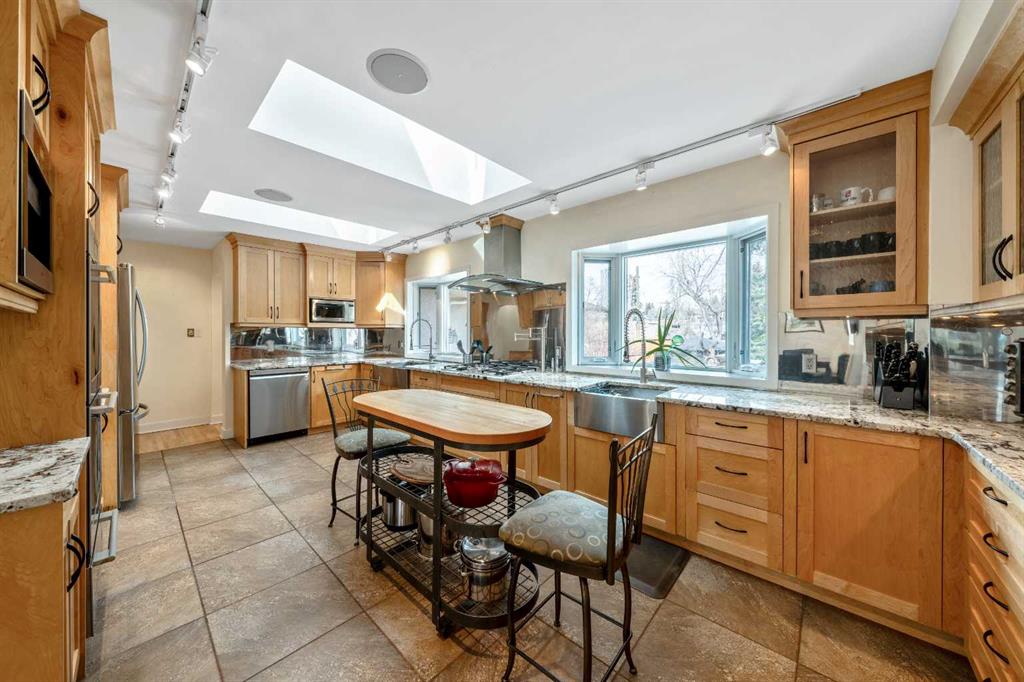 OPEN HOUSE Friday April 17 3pm to 5:30pm Saturday April 18 1pm-4pm Sunday April 19th 1pm-4pm 1338 HAMILTON ST NW A Hidden Gem that you’ve been waiting for! Updated and beautiful 1858 sq ft bungalow with a double attached garage (20’8”x24’3”) on an oversized 53 x 132 sq ft lot with gorgeous mature trees and landscape. Your own private oasis in the desirable inner-city community of St. Andrews Heights, to both the Foothills & Children’s Hospitals, University of Calgary, the Bow River Path System, and more! Beautiful hardwood floors throughout the main floor. Light & bright, newer big windows & skylights throughout give you lots of natural light. The living room features a modern gas fireplace. Impressive kitchen with in-floor heated tile floors, loads of maple cabinetry, granite countertops, and stainless-steel appliances including a Miele Gas Cook-Top, Two Miele Wall Ovens & Warming Drawer and a Miele Coffee Station. Huge primary bedroom with garden doors its own private yard space, with a large walk-through closet to a renovated ensuite bath with heated tile floors, quartz countertops, Toto bidet toilet and a big steam shower. The second bedroom is directly across from the renovated main bath with heated tile floors, Toto bidet toilet & a deep spa air tub. The other wing of the home gives you a huge bonus room, rare to find in the inner-city. French doors to the office that has tons of natural light with new triple pane windows, boasting custom built-ins and has access out to the huge Roof Top Patio giving you a unique outdoor living space and lets you look down on the beautiful yard. The lower level gives you the third bedroom with murphy bed and third renovated full bath plus a huge rec room with flex room. Laundry, storage, mudroom and gym area with sustainable climate positive Marmoleum flooring. Mudroom access to your garage or lower level walkout access directly to your backyard oasis of beautiful organic gardens! Mature trees, shrubs, flowers, water fountain, boasting not only huge composite deck off the home but a fourth patio space with pergola at the back of the lot giving you a different outdoor living space. All this in sought after St Andrews! One of the only communities where you can walk to two hospitals, and a University! A vibrant community with big natural parks, playgrounds, tennis courts, baseball diamond, soccer field, St Andrews famous sledding hill, off-leash area, walking and bike paths. Short walk to the river and close to all the incredible amenities of University District and Market Mall. Quick commute to downtown and easy access out to the Mountains. A fantastic property! View the 3D tour (purple house symbol) Welcome home.
