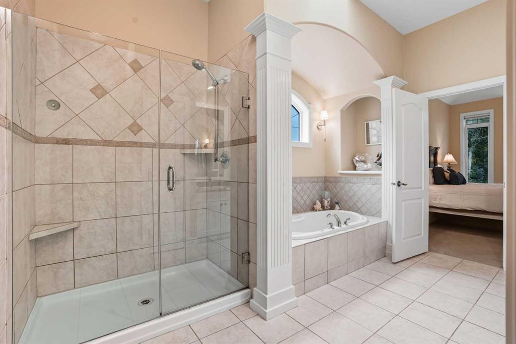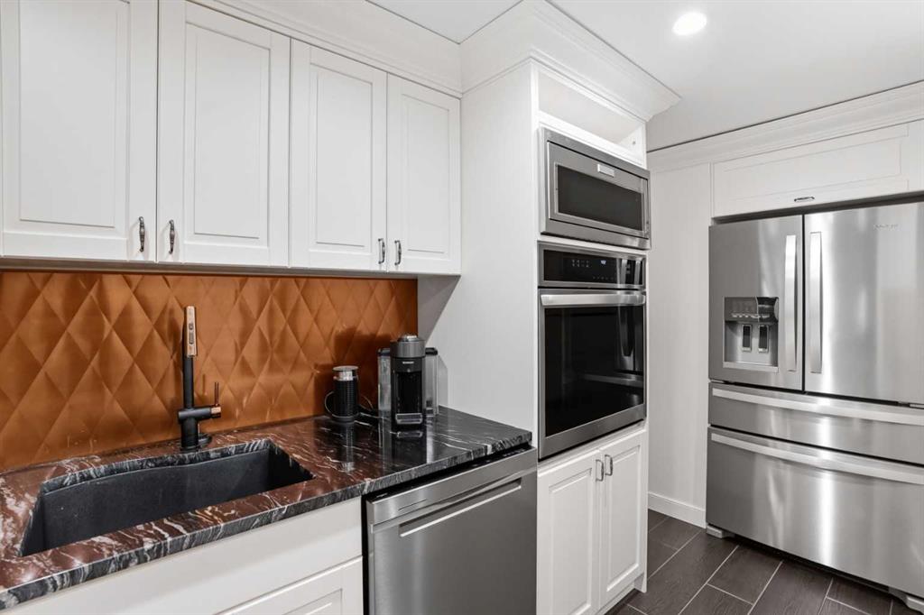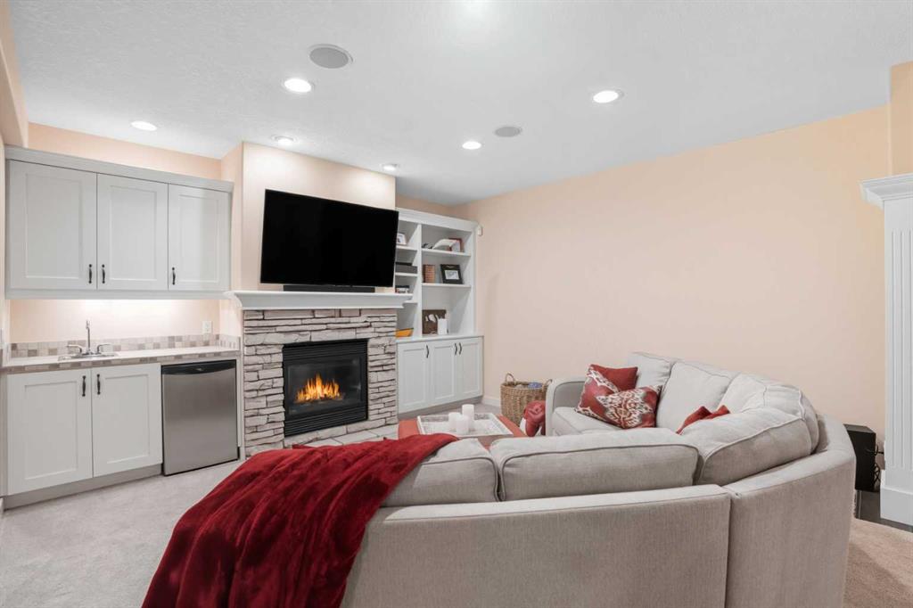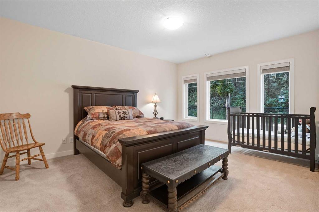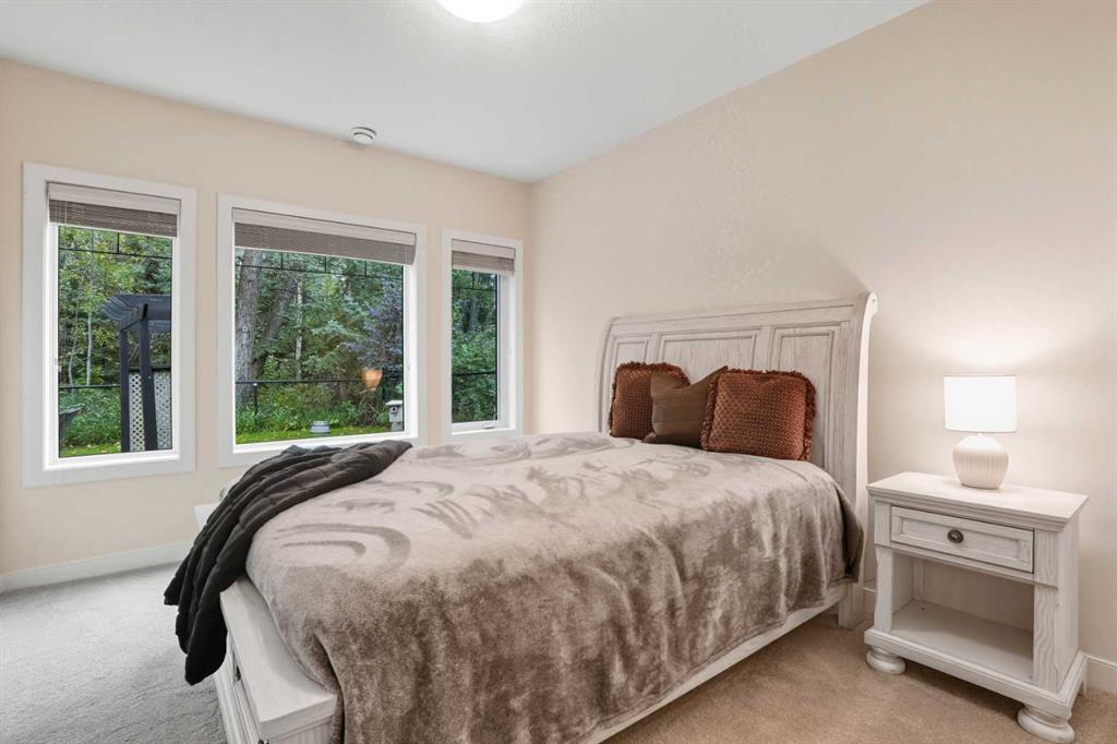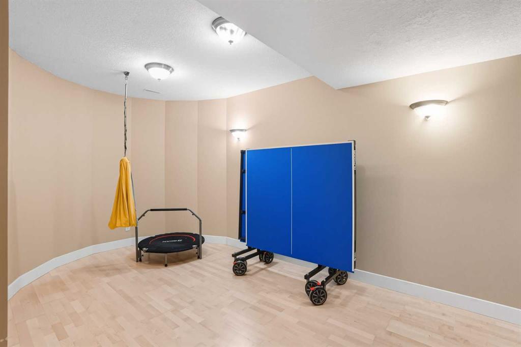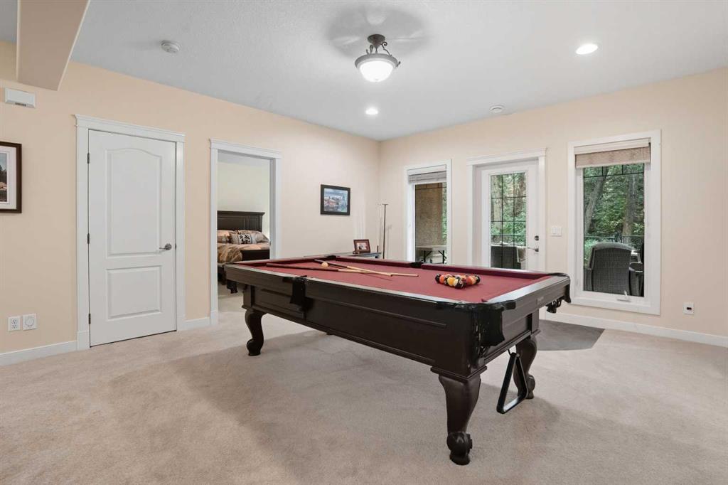 Downstairs, the walkout level extends the living experience with 9’ ceilings, cozy in-floor heat, and a sense of comfort that invites you to linger. A spacious family room flows naturally into a private theatre, with a massive entertainment space. For family or guests, a full second kitchen—complete with oven, dishwasher, refrigerator—offers self-contained convenience. Two generous bedrooms and a large exercise bonus room ensure plenty of space for everyone.